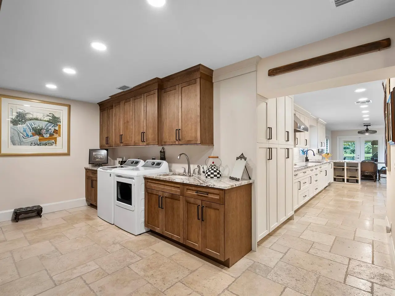 Welcome to this stunning fully renovated and expanded 3-bedroom, 3.5-bath home with an office (easily convertible into a 4th bedroom) and a 3.5-car garage, ideally located on a peaceful .45-acre lot within the prestigious gated community of Piper's Landing Yacht & Country Club in Palm City.This home offers 3,753 sq ft of luxurious living space, completely reimagined with the highest quality materials and craftsmanship.Inside, you'll immediately notice the bright open layout, raised ceilings, and seamless flow between the living, dining, and kitchen areas. The gourmet kitchen features granite countertops, custom cabinetry, Thermador appliances, a walk-in pantry, and an extended island perfect for entertaining.