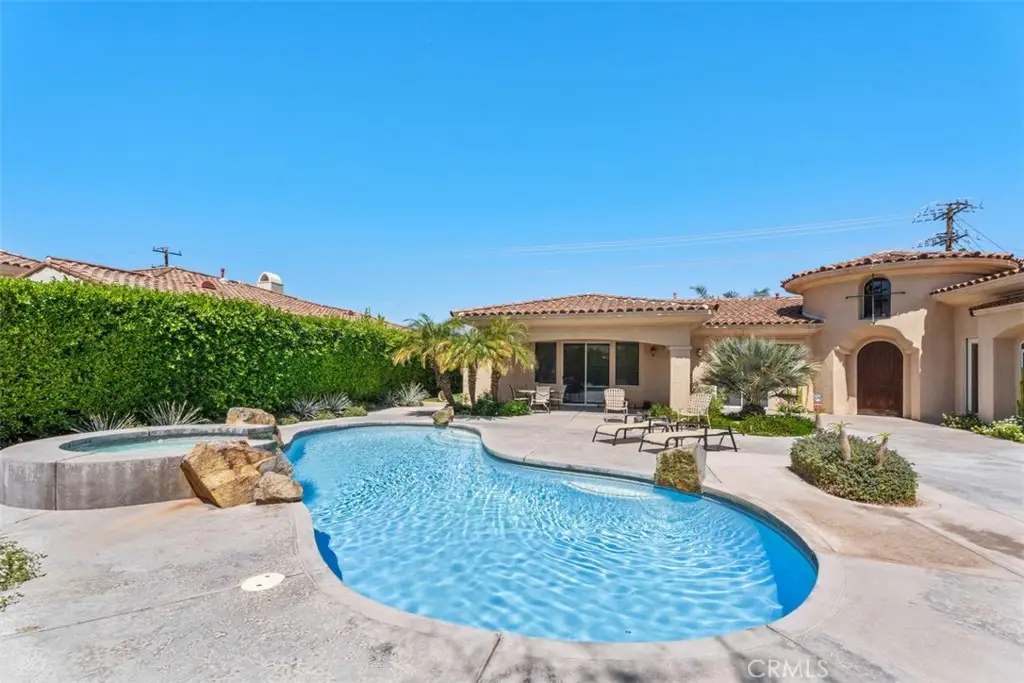 Stunning Single-Story Pool Home with Panoramic Mountain Views in the exclusive and private enclave of The Colony at El Mirador. This spacious and beautifully designed single-story residence offers 3 bedrooms plus a den (optional 4th bedroom) and a 3-car attached garage, blending luxury and comfort in every detail. As you enter the property, you'll be captivated by the sparkling pool with a cascading waterfall spa, creating a tranquil and inviting retreat. Inside, the open-concept floor plan features stone-like tile flooring throughout most of the home, high-volume ceilings, and recessed lighting that enhance the light and airy ambiance. The gourmet kitchen is a chef's delight, boasting a large island with a 5-burner gas cooktop, abundant cabinetry, a breakfast bar, and a charming kitchen nook that opens to the side yard--perfect for morning coffee or al fresco dining. The family room offers a cozy fireplace and ceiling fan, while the formal dining room opens to a beautifully landscaped backyard with a covered patio and BBQ area, ideal for entertaining. The living room is truly spectacular, highlighted by a second fireplace and expansive windows. The den (or 4th bedroom) features direct access to the pool, making it a perfect office, guest suite, or relaxation space. Two secondary bedrooms each feature en-suite bathrooms, plus there's a stylish powder room for guests. The primary suite is a true retreat, offering a ceiling fan, huge walk-in closet with built-ins, and a luxurious bathroom complete with a soaking tub, walk-in shower, and double vanity. Wonderful home for entertaining or just relaxing.