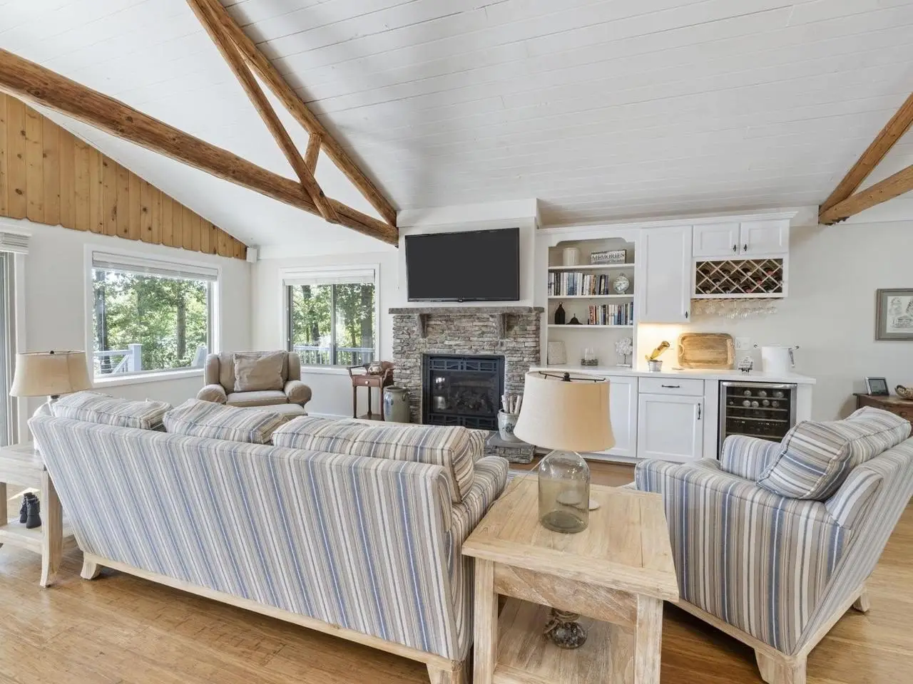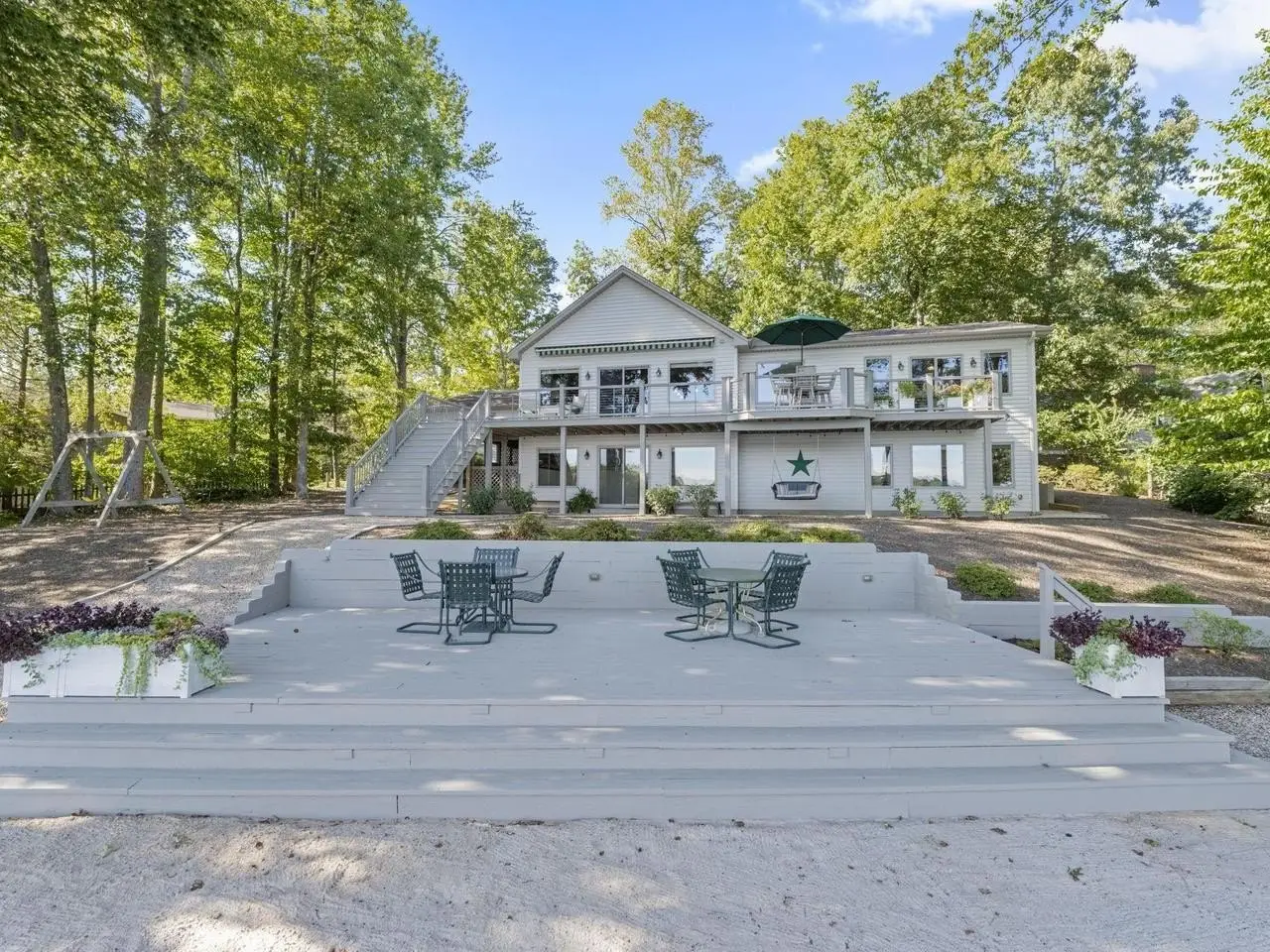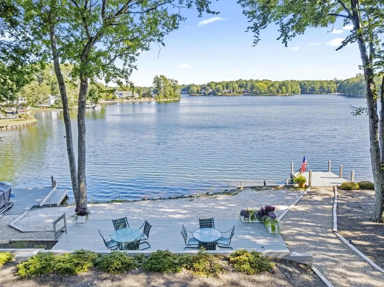 Lakefront Elegance with Docks, Beach, and Views