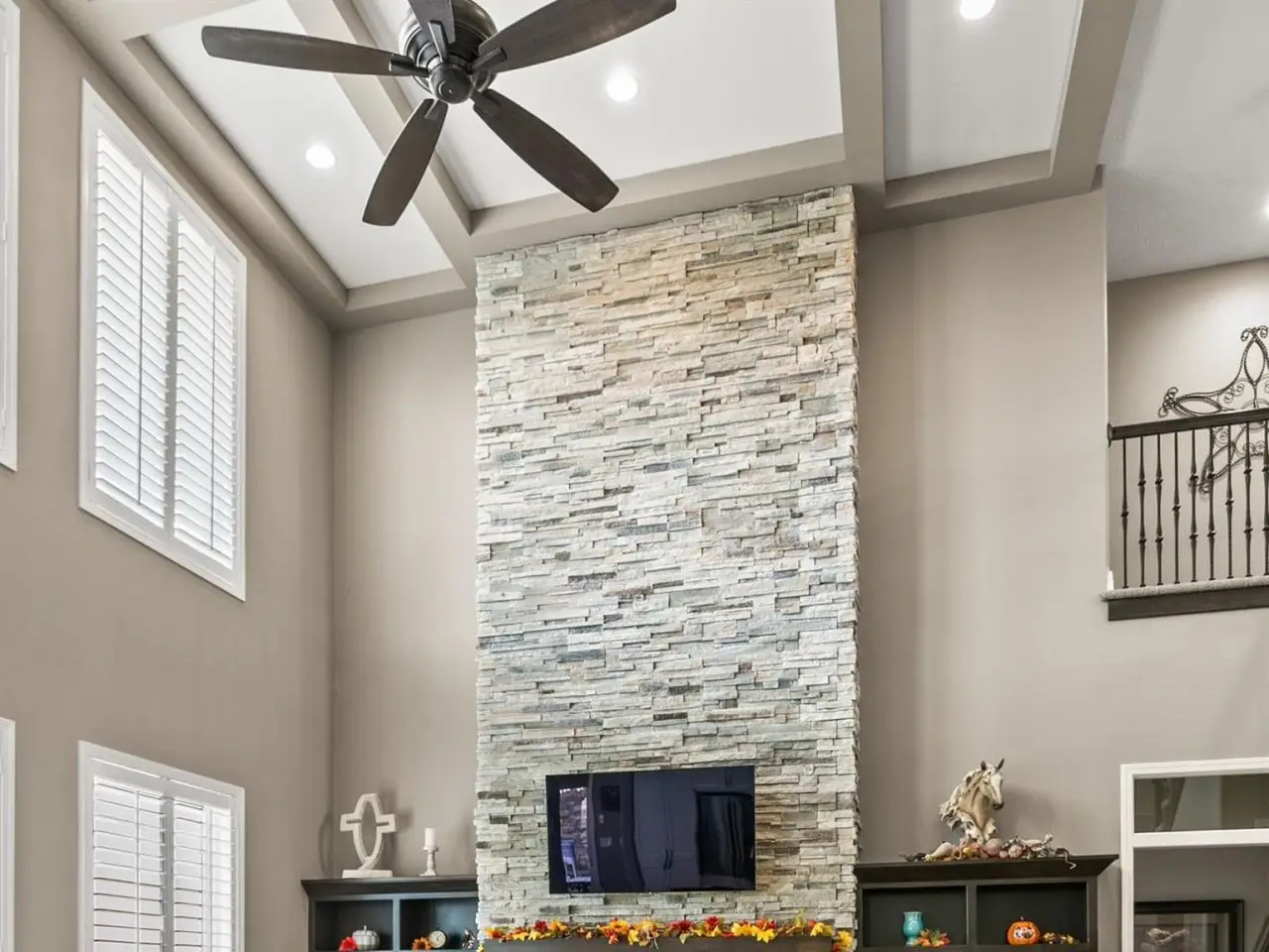Home for the Holidays at Ashbury Farms! This meticulous custom-built 1.5-story home showcases designer finishes and attention to every detail. The grand great room features a soaring 20' coffered ceiling and a stunning stone fireplace. The gourmet kitchen includes a spacious island, wine fridge, inlayed coffered ceiling, and a large walk-in pantry. The main-floor primary suite offers exceptional comfort and style, while plantation shutters and custom cabinetry elevate the home throughout and an office. Upstairs features spacious bedrooms and a loft. The lower level includes an exercise room and plenty of space to relax or entertain. Enjoy the covered patio with fireplace and custom firepit on the private, professionally landscaped fenced corner lot with lighting and an expanded, sealed driveway. Move in and celebrate the holidays in style!