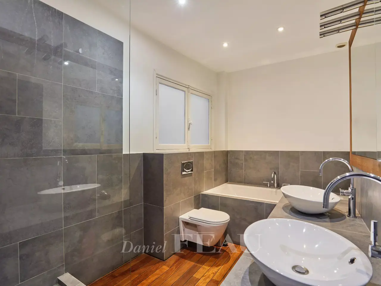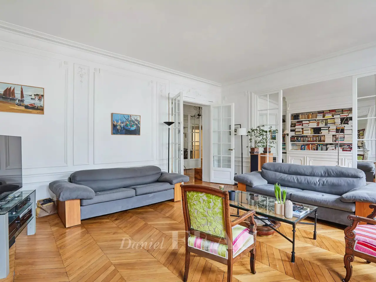 Jules Sandeau/Henri Martin neighbourhood. This 221 sqm apartment occupies the whole 2nd floor of a fine early 20th century Haussmannian building. An entrance hall leads to a living/reception room, a drawing room, an adjacent kitchen with dining facilities, a master suite with a bathroom and dressing room, and four further bedrooms sharing a bathroom and shower room. With an 18 sqm staff studio apartment, two cellars, and a storage room. Janson de Sailly catchment area.