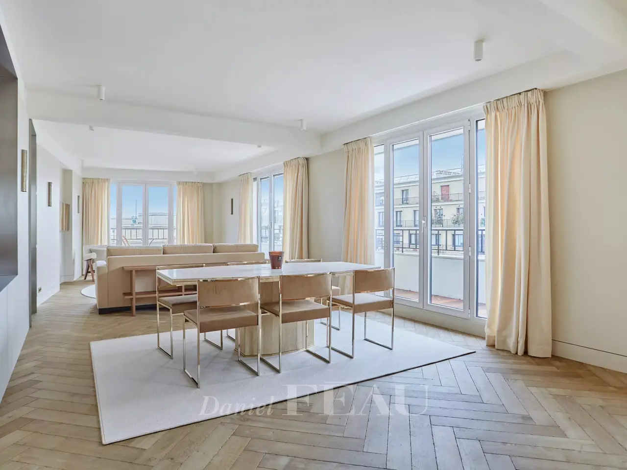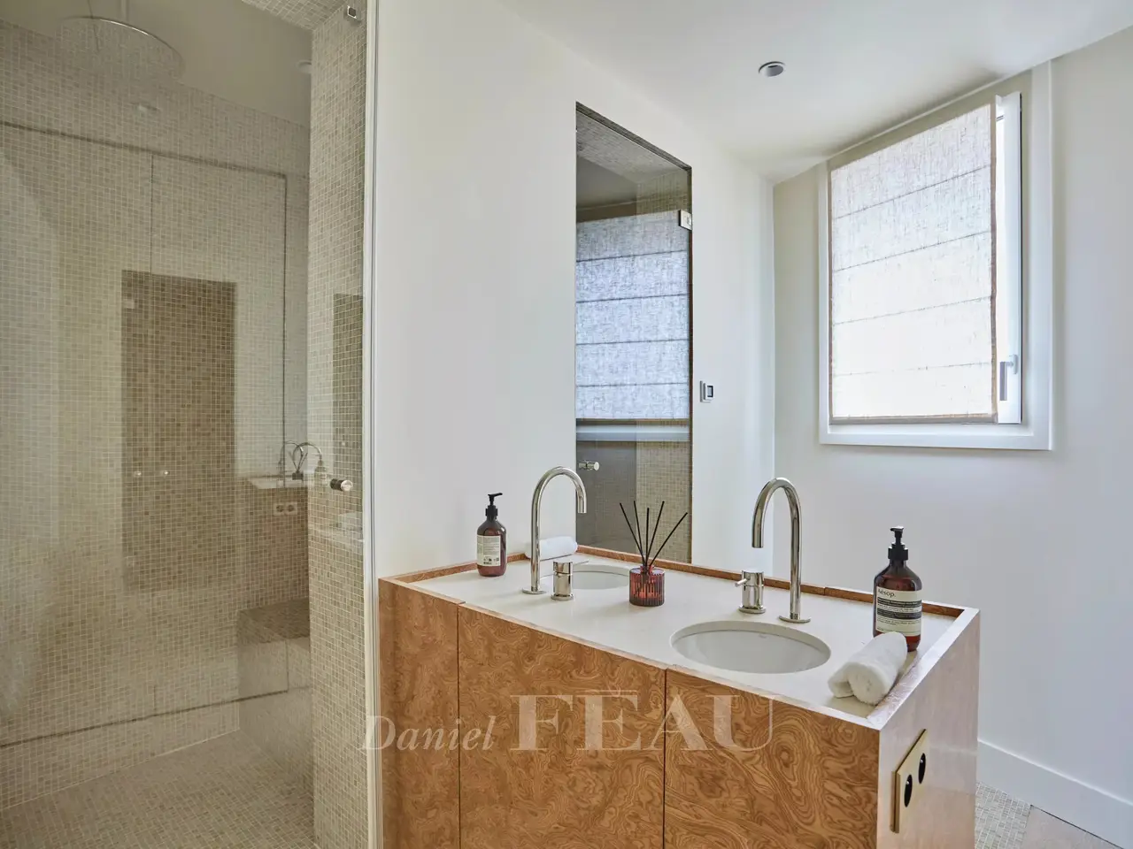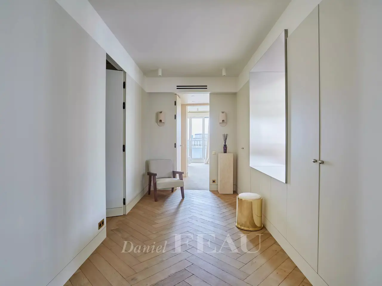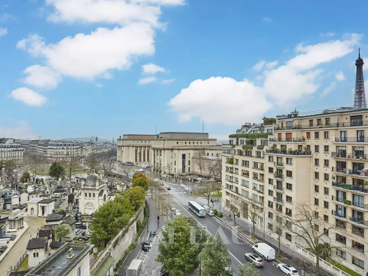 This exceptional 123 sqm apartment is on the 7th floor of a relatively recent building located a stone’s throw from Place du Trocadéro. Commanding open views, it includes a spacious living/reception room/kitchen/diing room opening onto a continuous balcony, two suites with shower rooms and dressing rooms, and a guest wc. Air-conditioning. Sold fully furnished. With a cellar and a parking space.