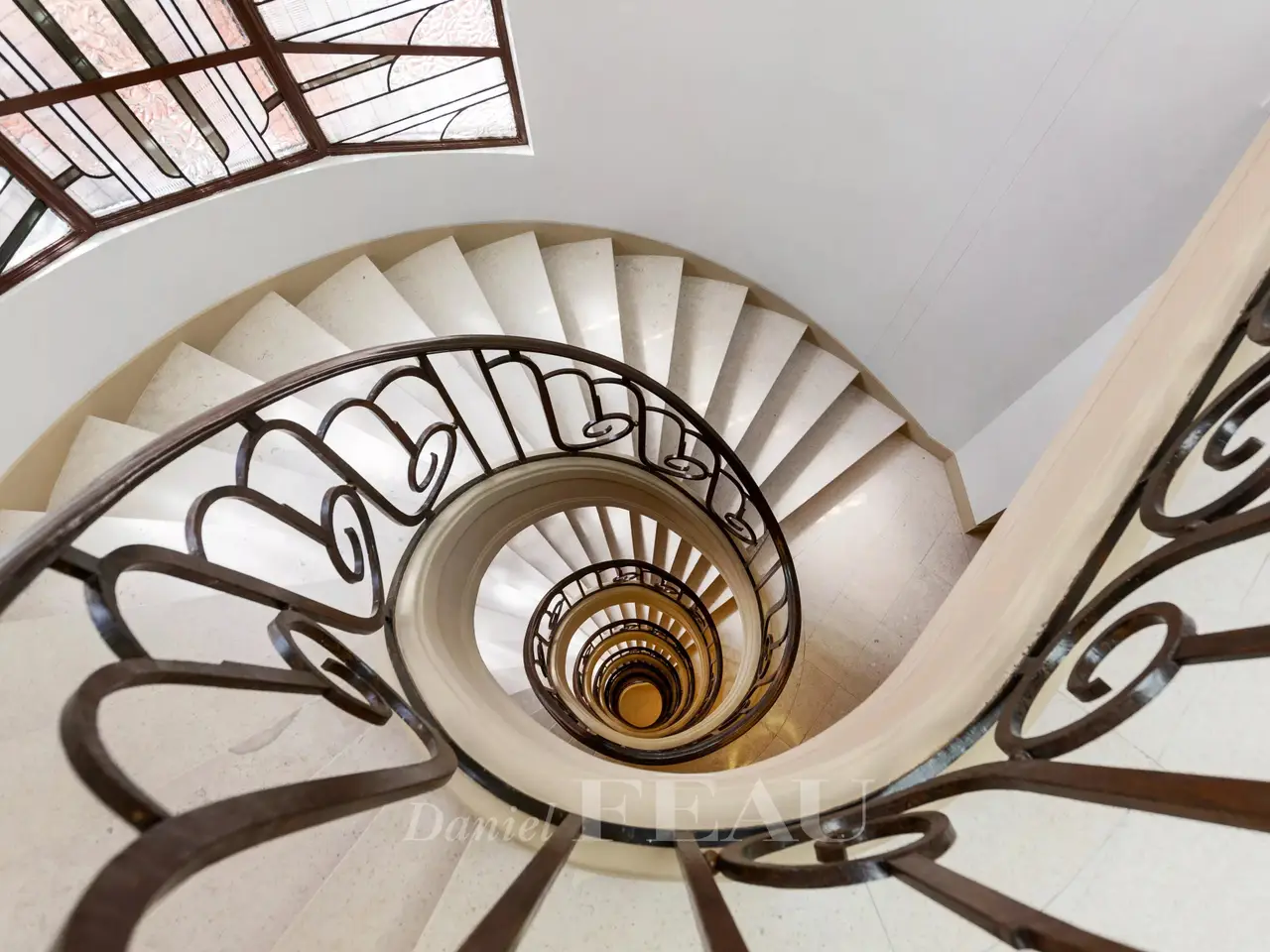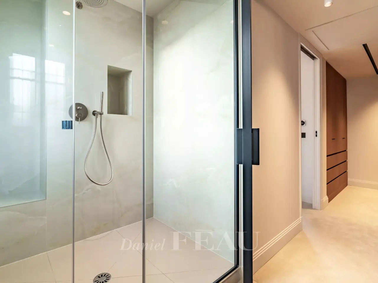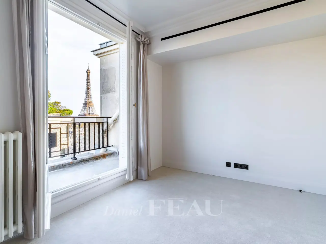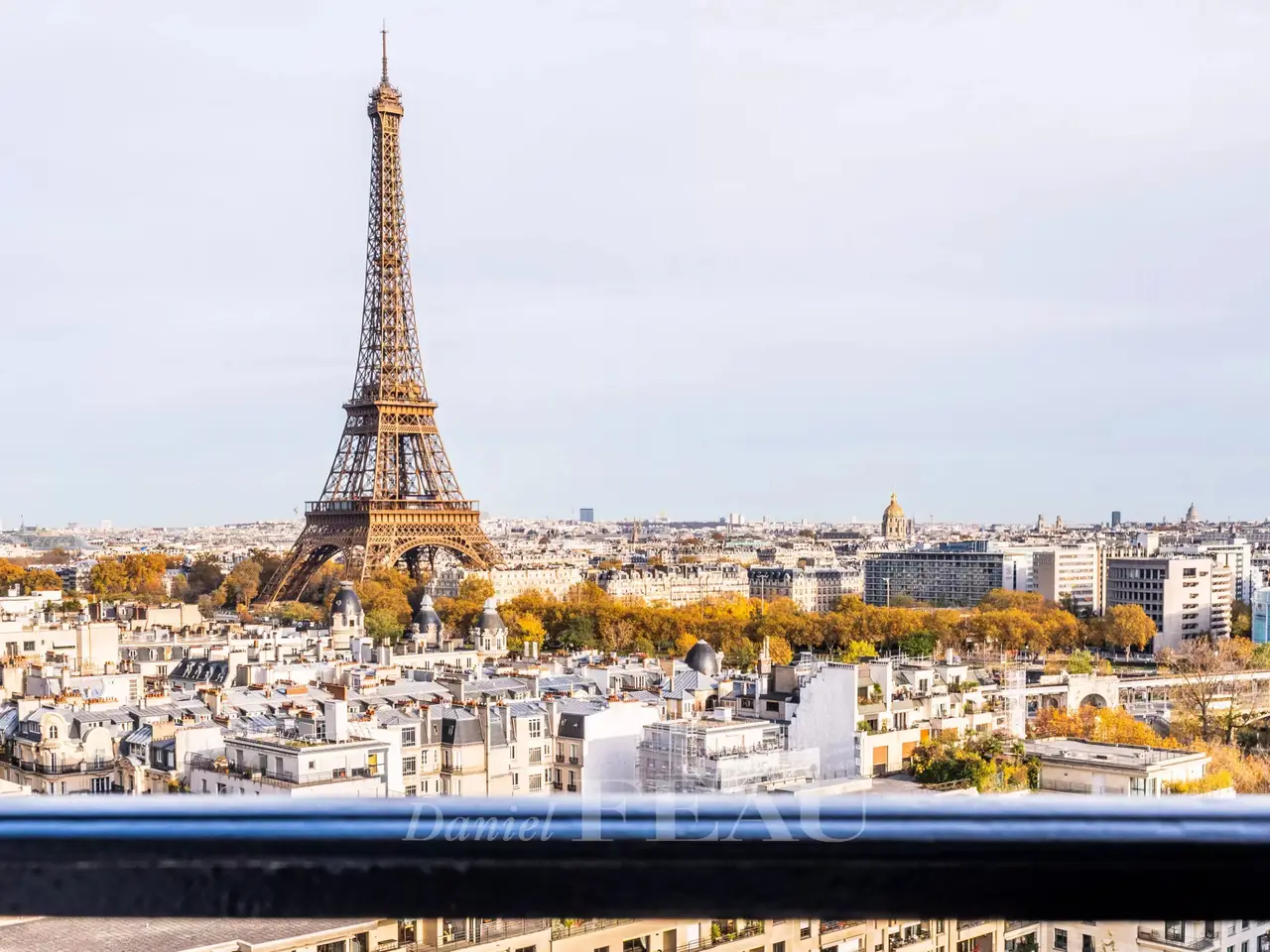 This exceptional apartment on the 7th and top floor of a luxurious Art Deco building with a lift commands a picture-postcard view of the Eiffel Tower. Renovated throughout and opening onto balconies, it includes a bright living/reception room with a fitted and equipped open-plan kitchen, a master suite with a dressing room; a shower room and a wc, two bedrooms (one with a bathroom and wc), and a separate wc. Air conditioning. A cellar may be acquired at extra cost. The co-ownership benefits from a conciergerie and a fitness room, as well as a guest bedroom available for rental.