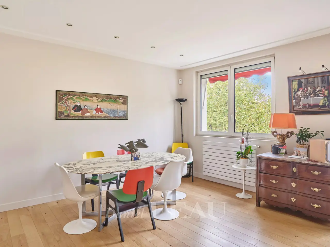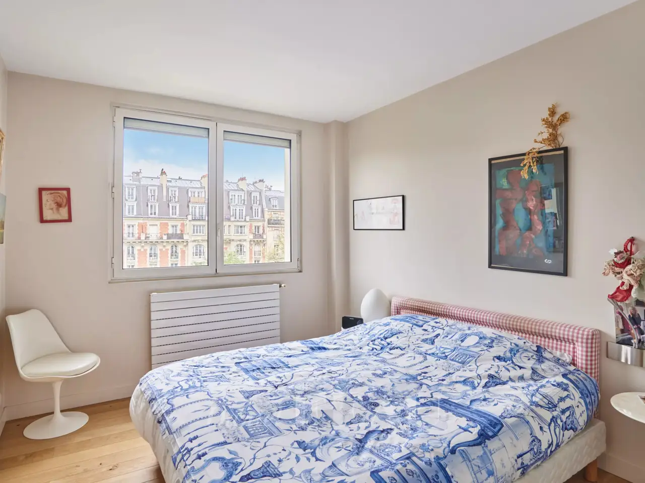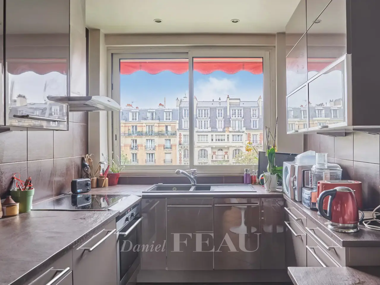 Quai Louis Blériot. This bright dual-aspect apartment on the 5th floor of a luxurious mid 20th century building with a lift enjoys an open view of the Seine. In very good condition, it offers 89 sqm of living space including a 30 sqm living/reception room opening onto a continuous balcony, a separate equipped kitchen, two 12 sqm bedrooms, a shower room and a separate wc. Ample fitted storage space. Cellar. Parking is possible in the courtyard. In a convenient location near the shops and transport networks. Jean-Baptiste Say catchment area.