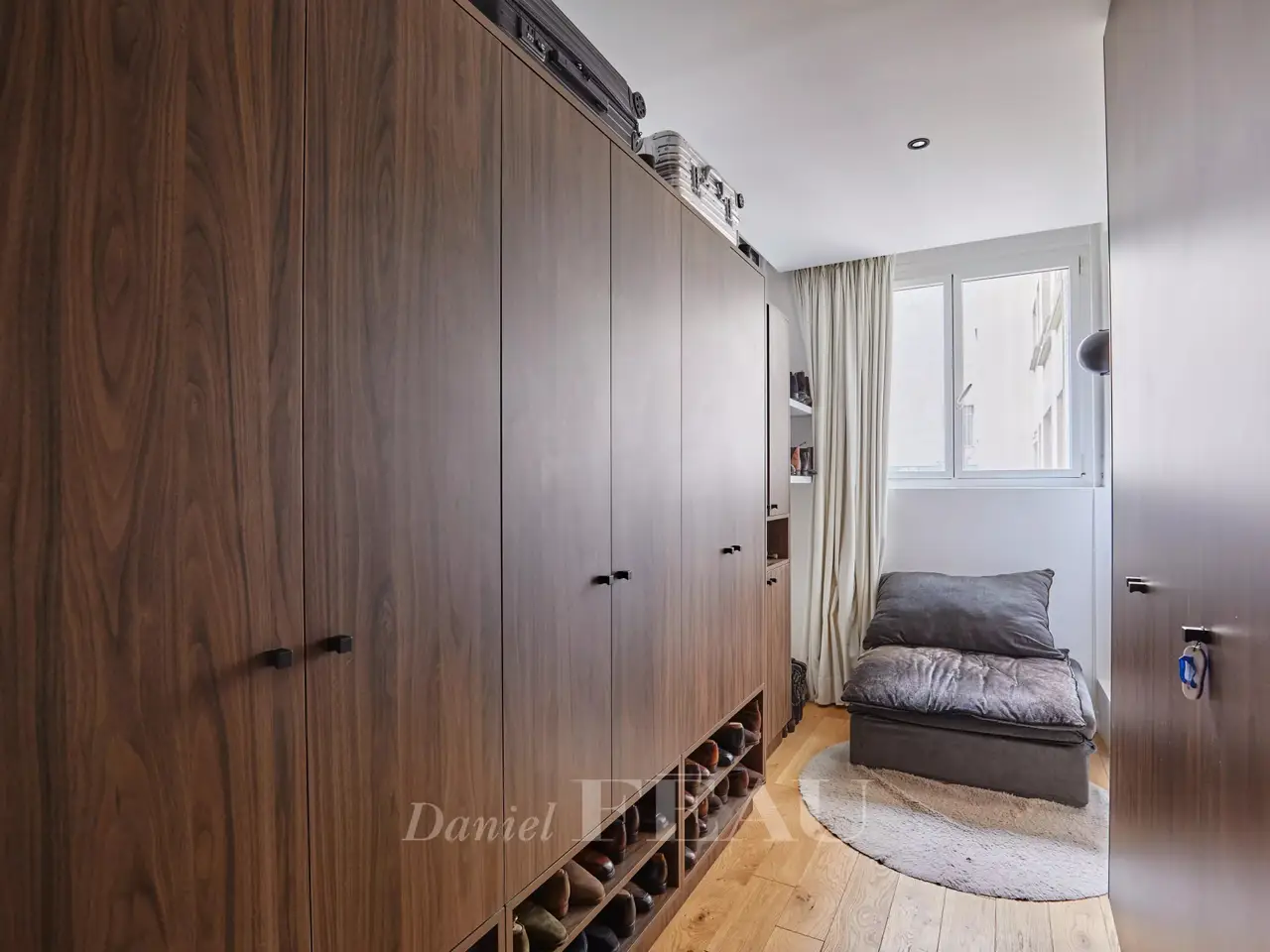 Avenue Foch/Raymond Poincaré. This near 101 sqm apartment on the second floor of a luxurious mid 20th century building overlooks prestigious Avenue Foch. It includes a spacious double living/reception room, a separate equipped kitchen, two bedrooms including a suite with a bathroom and a dressing room, and a bathroom. Air conditioning. With a cellar. A parking space in the building may be acquired at extra cost.