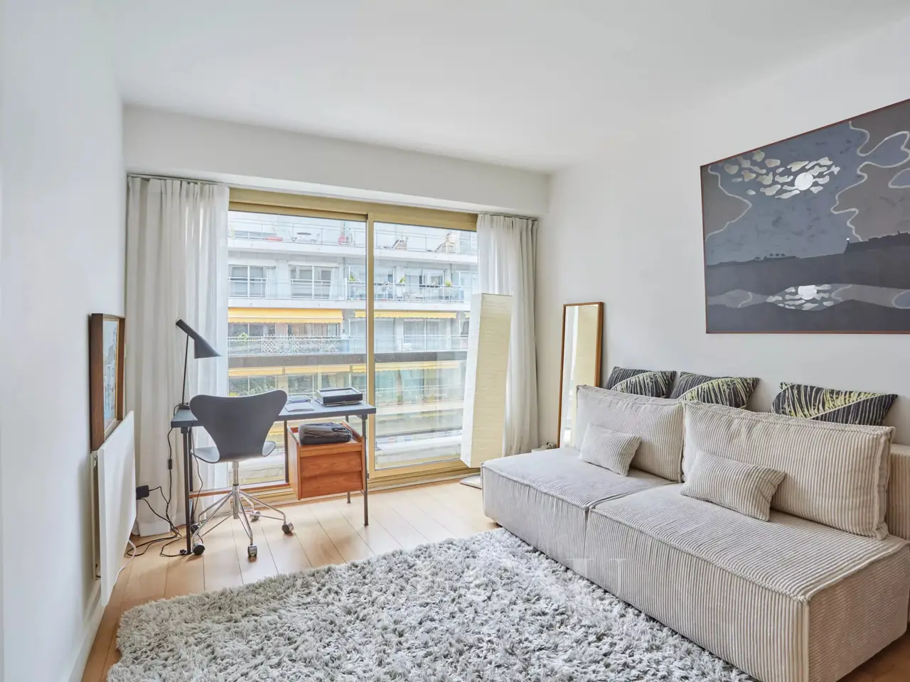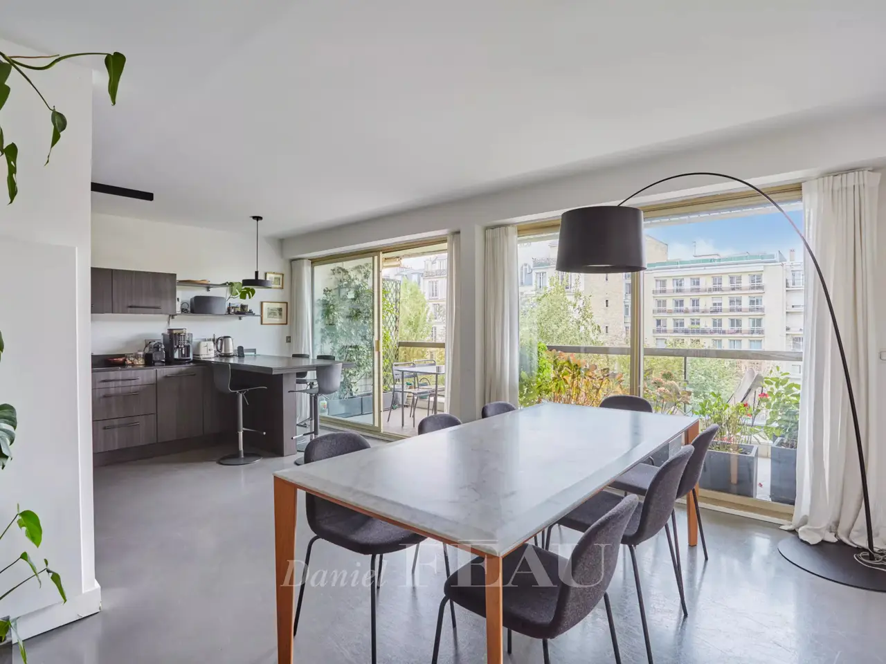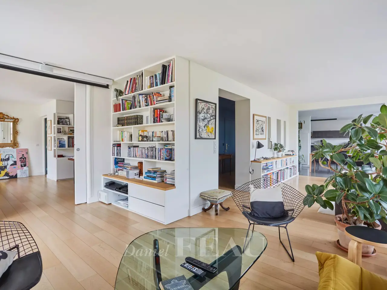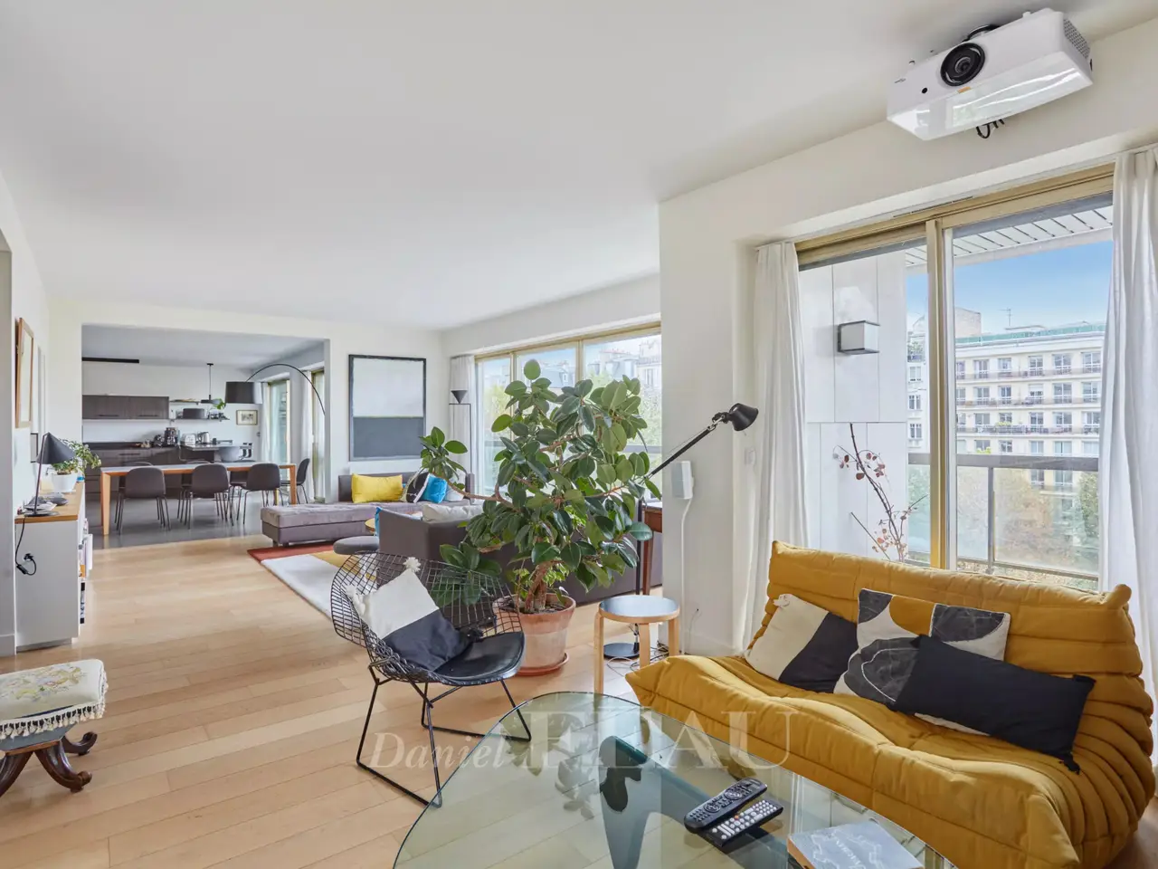 Ranelagh/Mozart neighbourhood. This 185 sqm apartment is on the 4th floor of a relatively recent building located near Avenue Mozart, the shops and Molière High School. South-facing and overlooking a garden, it includes a double living/reception room, a dining room, a kitchen with dining facilities opening onto a 31 sqm terrace, a study, a master suite with a bathroom, a dressing room and a wc, two further bedrooms sharing a shower room, and a guest wc. With a cellar. A double lock-up garage in the building may be acquired at extra cost.
