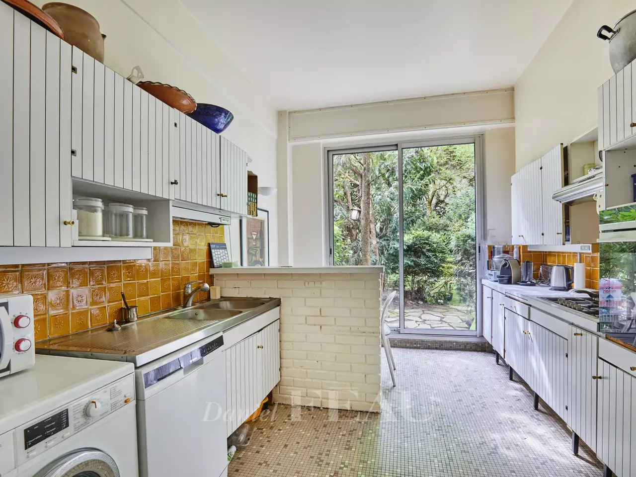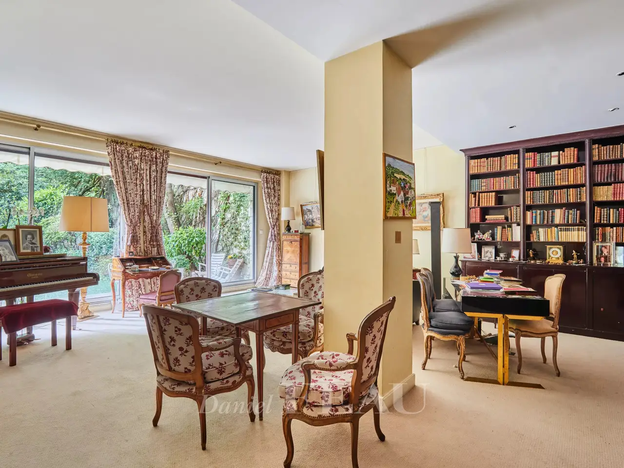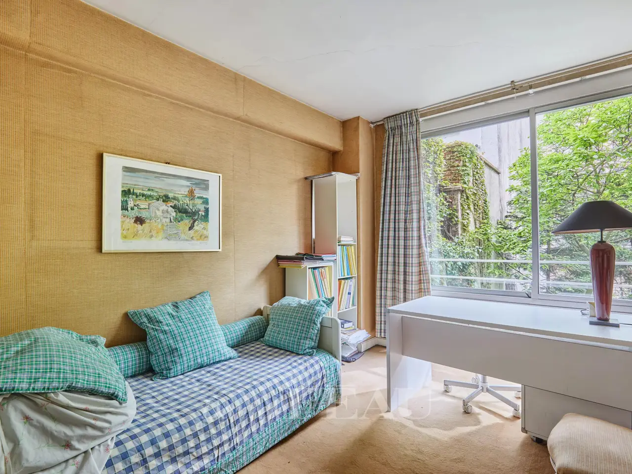 This split-level apartment with the feel of a private house is on the ground floor of a mid 20th century residence with elegant common areas located near the shops, the schools and the metro station in the heart of the capital’s Passy neighbourhood. It includes a spacious south-facing living/reception room opening onto a leafy near 200 sqm garden, a kitchen, a dining room opening onto a second near 100 sqm garden, a bedroom and a bathroom. Upstairs are a master suite with a bathroom and dressing room, three further bedrooms and two bathrooms. With a parking space and a cellar.