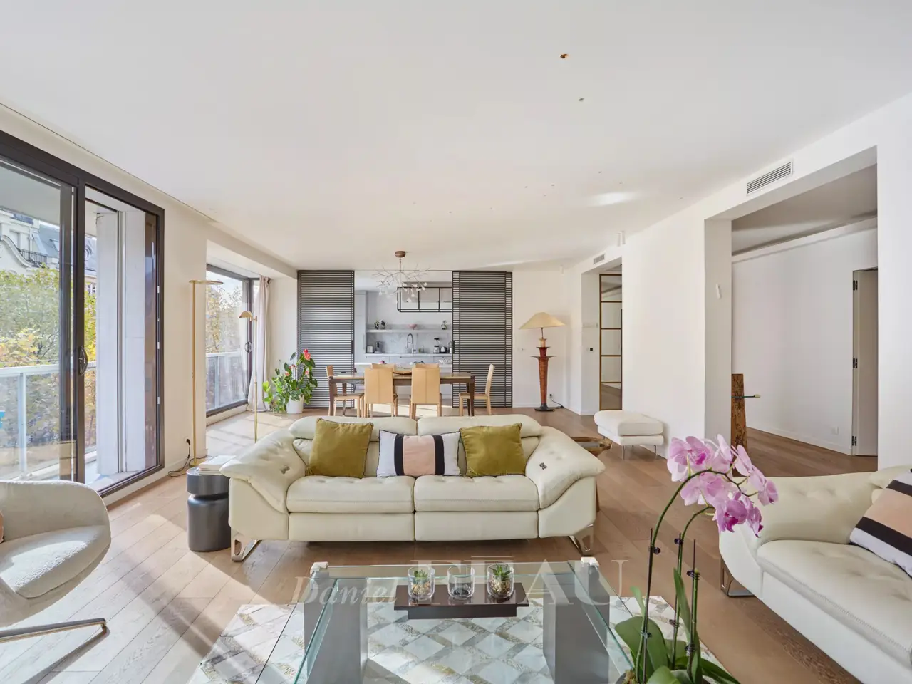 Avenue Victor Hugo, facing Square Lamartine and near the shops, the schools and the transport networks. This elegant dual-aspect apartment bathed in sunshine is on the 5th floor of a luxurious and recently refaced mid 20th century building with a caretaker and two lifts. Meticulously renovated, beautifully appointed and benefiting from an excellent floor plan, it offers 191 sqm of living space including an entrance hall with a cloakroom and guest wc, a 55.35 sqm double living/reception room and a 21 sqm kitchen with dining facilities opening onto two south-east facing balconies, a spacious master suite with a walk-in wardrobe, a bath/shower room and wc, two further bedrooms, a shower room/wc, and a utility room. Ample fitted storage space. With a cellar. The apartment is air-conditioned and equipped with home automation. A basement parking space may be acquired at extra cost. Janson de Sailly catchment area.