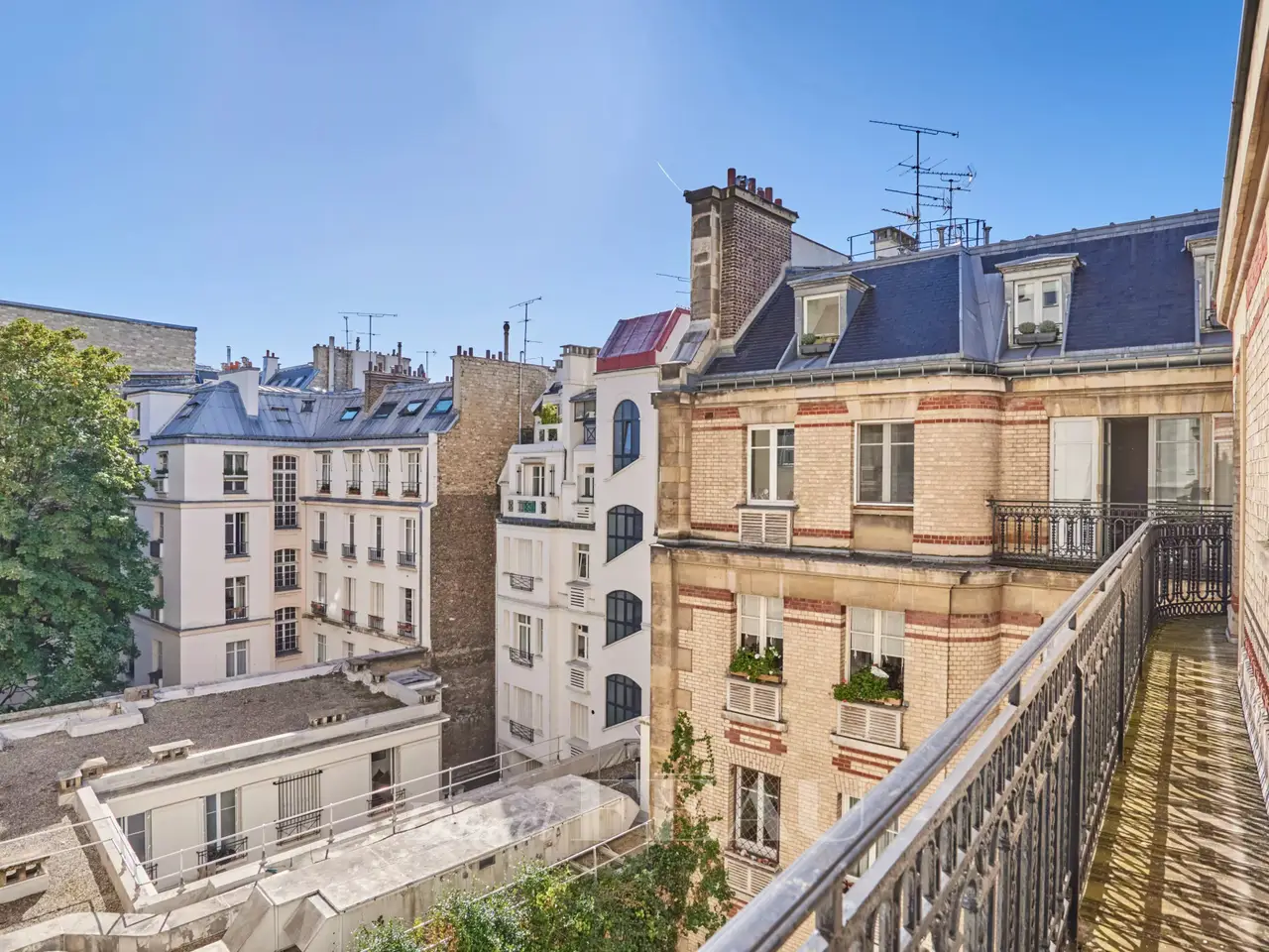 Sole Agent. Place Vicor Hugo/Rue Picot. This fully south-facing apartment offering open views is on the 5th floor of a fine turn-of-the-century building. 125.24 sqm of living space as defined by the Carrez Law includes a 59.41 sqm living/reception room, a separate kitchen and two bedrooms. A third would be possible. Two parking spaces may be acquired at extra cost.