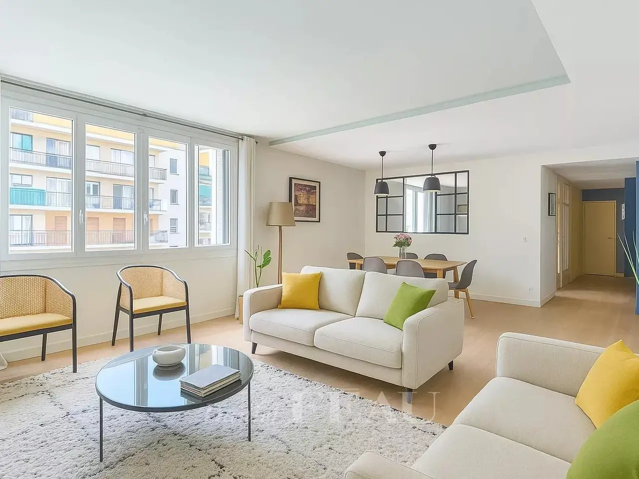 Sole Agent. Rue Philibert Delorme. This dual-aspect apartment offering 122 sqm of living space is on the 2nd floor of a mid 20th century co-ownership surrounded by leafy greenery and with a caretaker. It includes an entry with fitted storage space and a study area, a double living/reception room, a kitchen with dining facilities, three bedrooms (one with a shower room), a bathroom and a separate wc. With a cellar. A parking space in the building is available for rental. An ideal family apartment near Promenade Pereire and Saint-Ursule college.