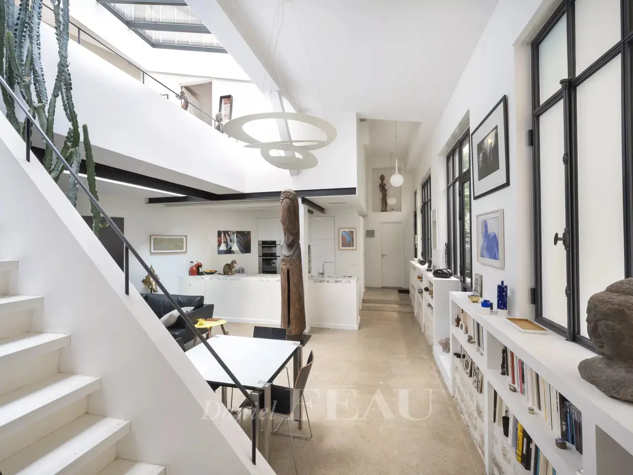 Like a townhouse, this former workshop with a terrace has been fully renovated by an architect. It offers a total floor area of 117 m² and 107 m² under the Carrez law. The property comprises a living area with a lounge and an open-plan kitchen opening onto a 25 m² terrace, two bedrooms, an office, a shower room, and separate toilets. In perfect condition, this unique property impresses with its high-end finishes and absolute tranquility. It benefits from a pleasant brightness thanks to its skylight and numerous openings to the outside. A cellar and a bike storage room complete this property.