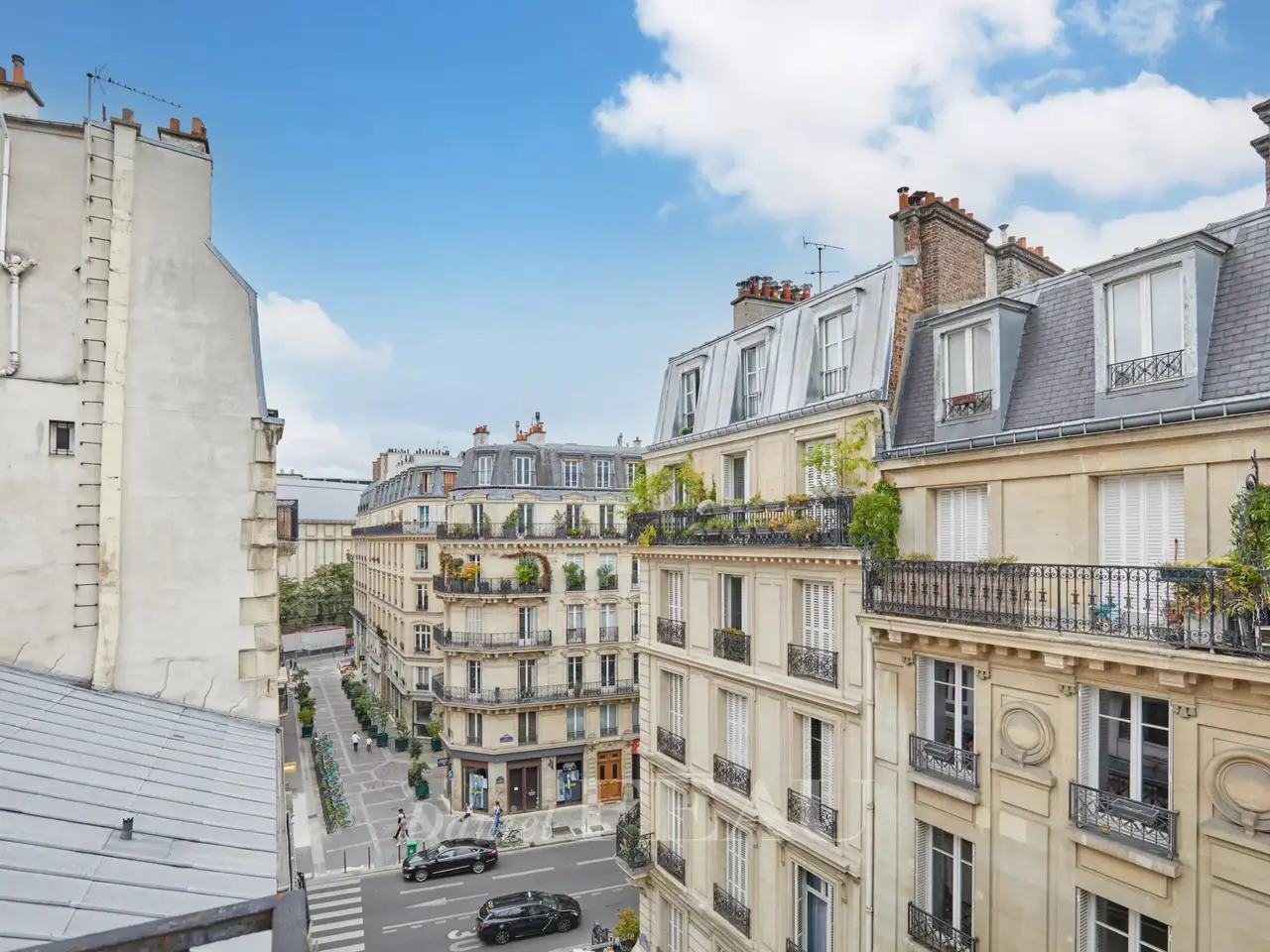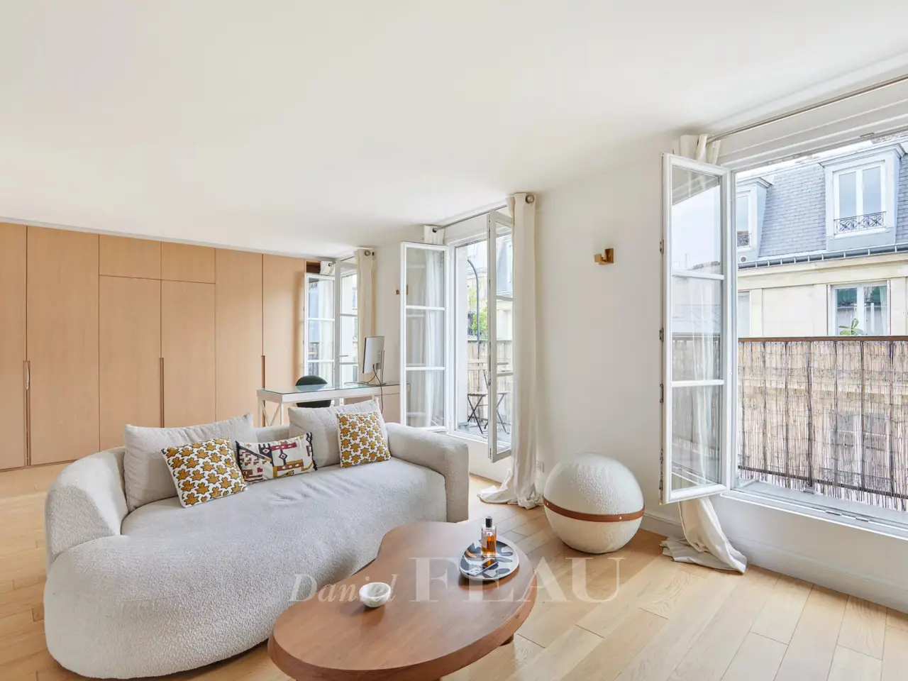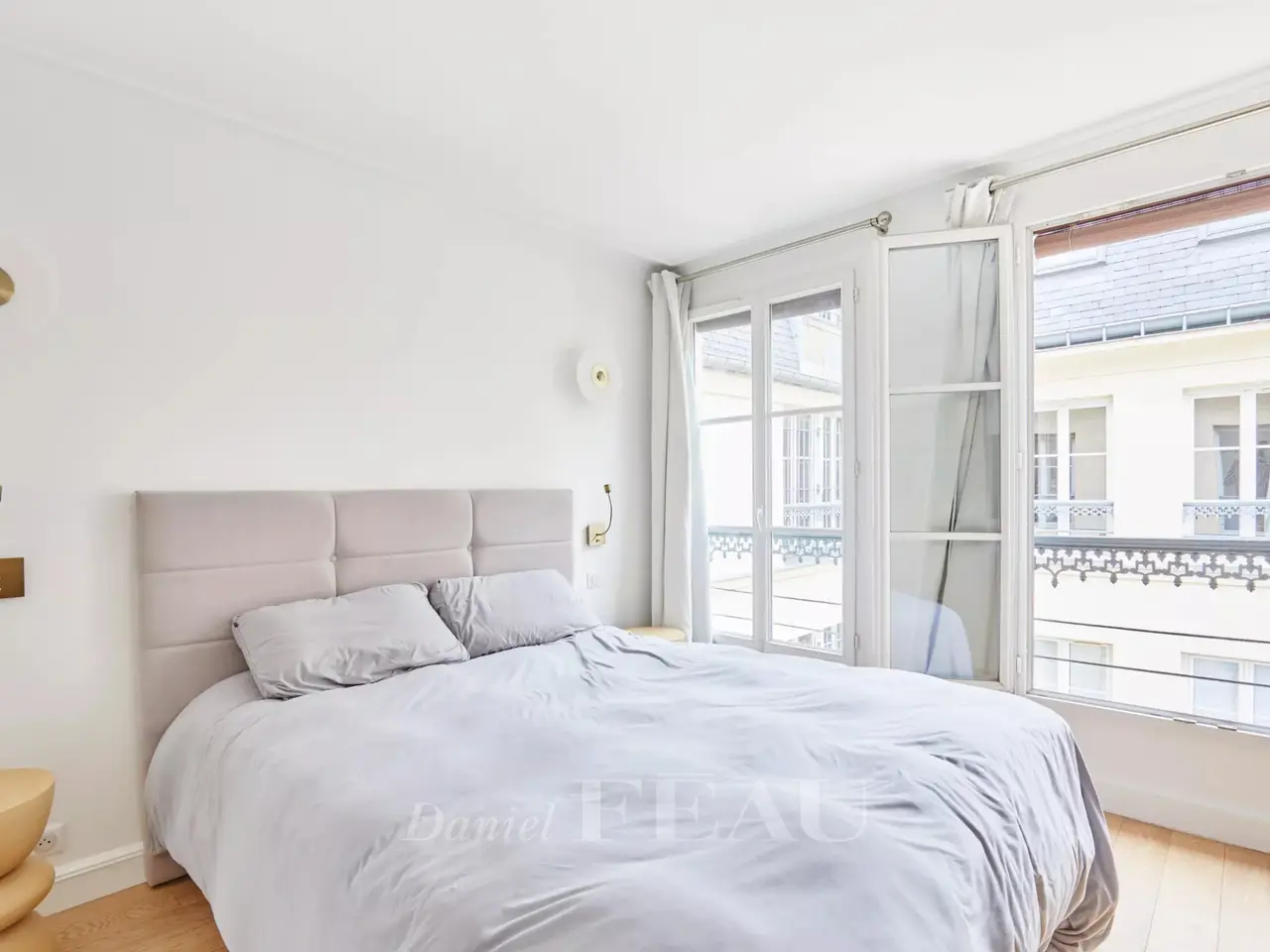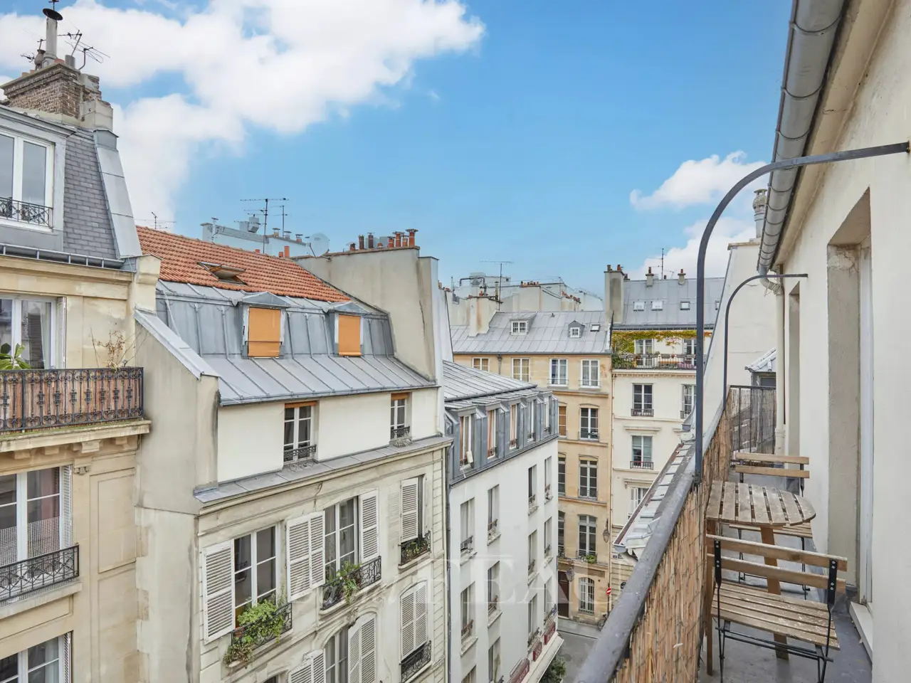 Etienne Marcel/Montorgeuil neighbourhood. This bright and peaceful 62 sqm apartment is on the 5th floor of a fine early 20th century building with a lift and very well-maintained common areas. Air conditioned, it includes a spacious living/reception room with three wide floor-to-ceiling windows opening onto a continuous balcony, a dining room with an open-plan kitchen, a bedroom overlooking a courtyard, a shower room and a wc. A second bedroom would be possible. With a cellar.