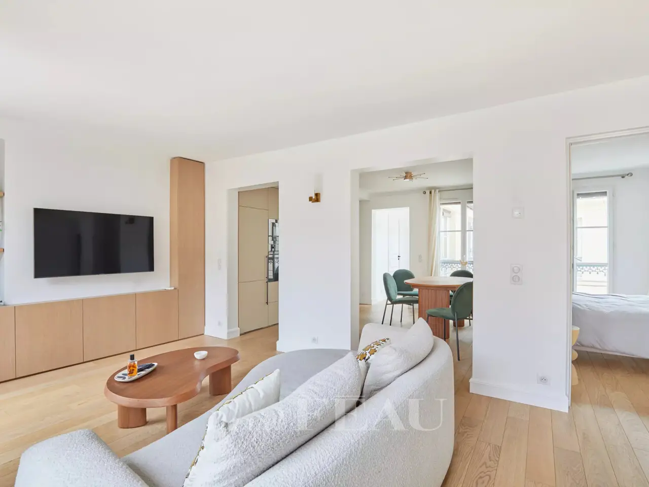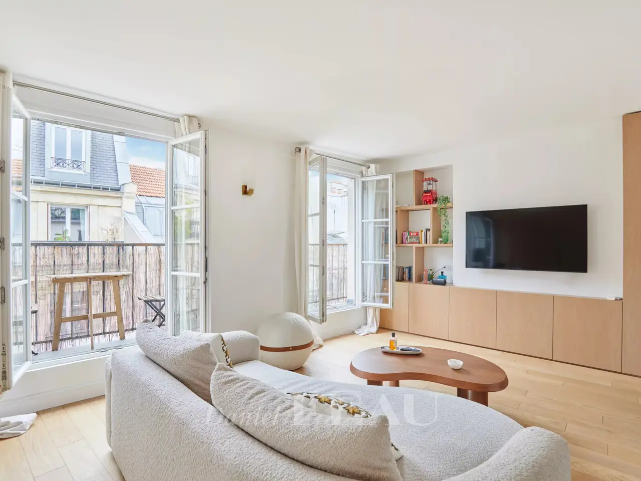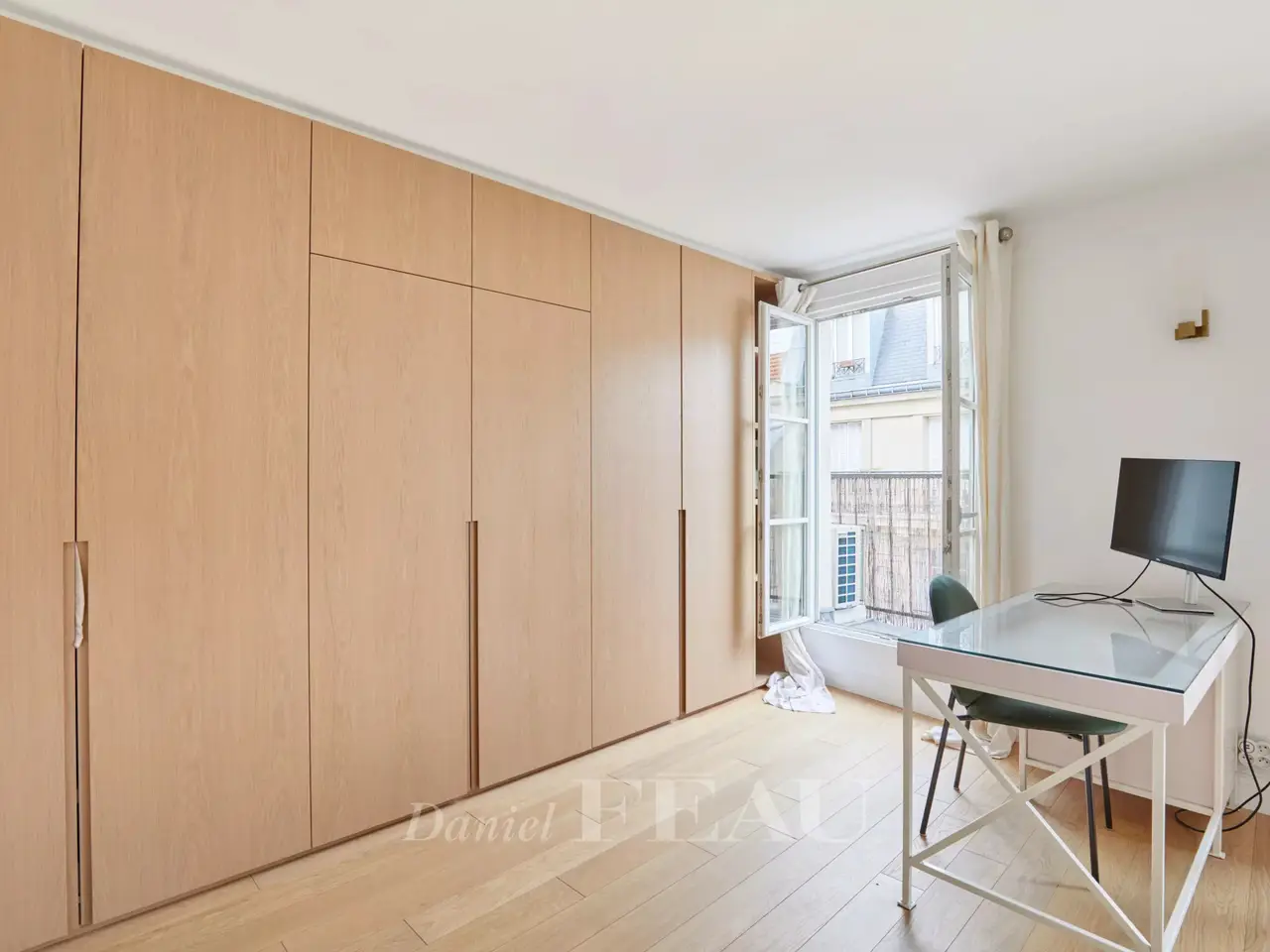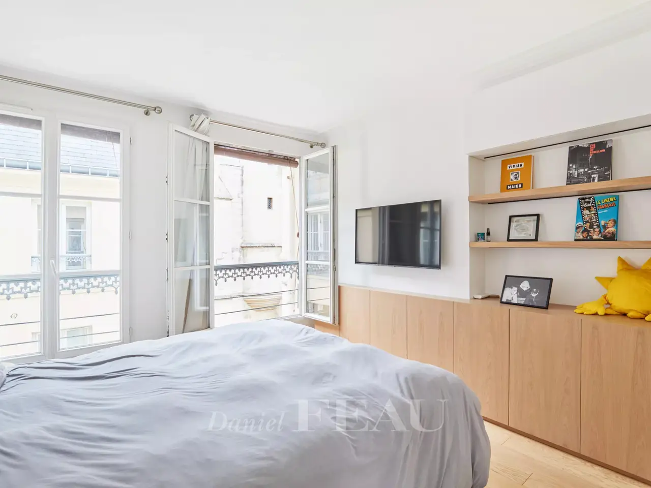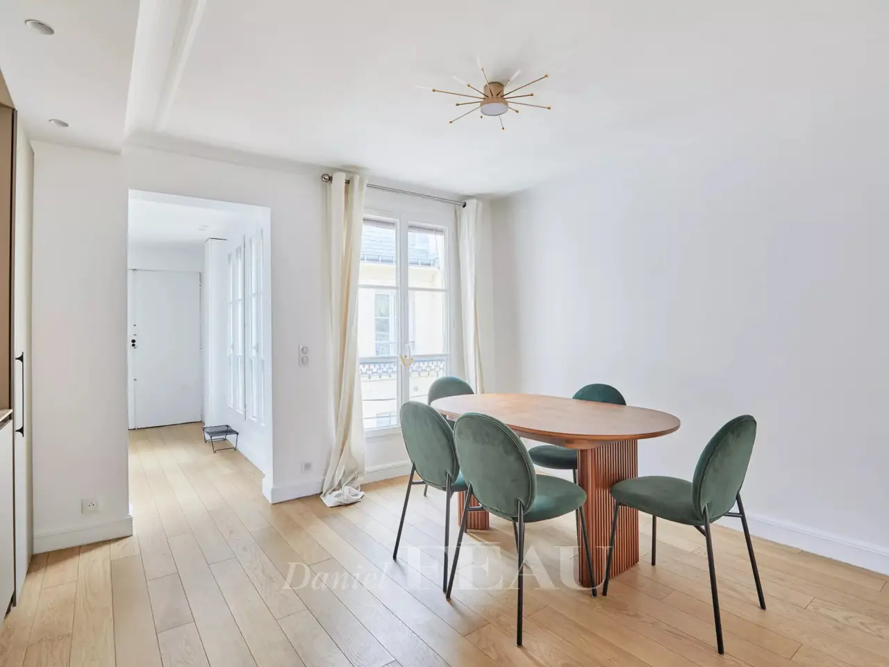 Etienne Marcel/Montorgeuil neighbourhood. This bright and peaceful 62 sqm apartment is on the 5th floor of a fine early 20th century building with a lift and very well-maintained common areas. Air conditioned, it includes a spacious living/reception room with three wide floor-to-ceiling windows opening onto a continuous balcony, a dining room with an open-plan kitchen, a bedroom overlooking a courtyard, a shower room and a wc. A second bedroom would be possible. With a cellar.
