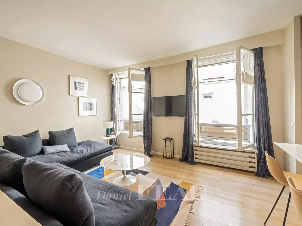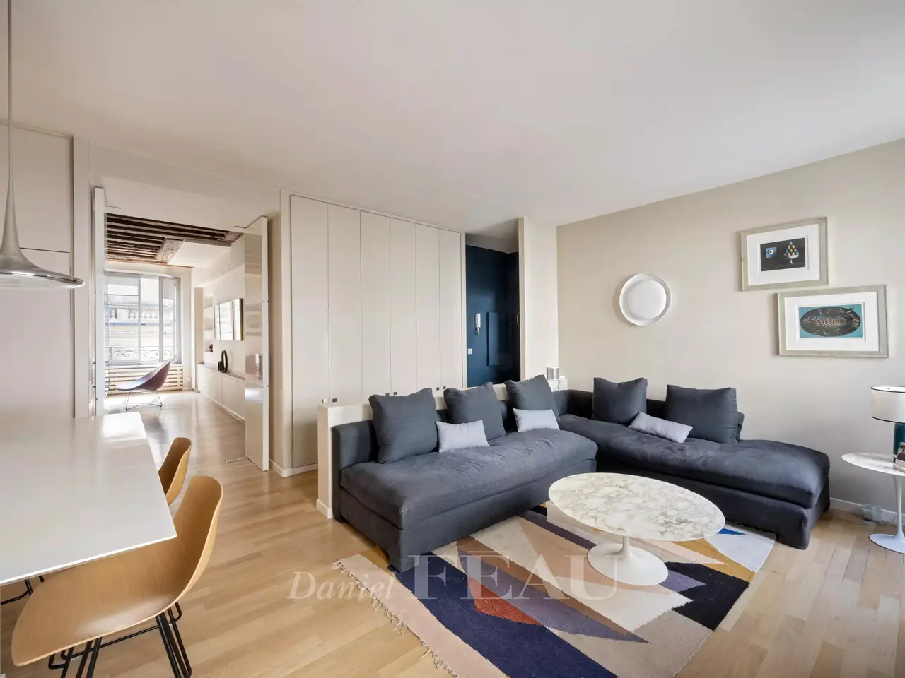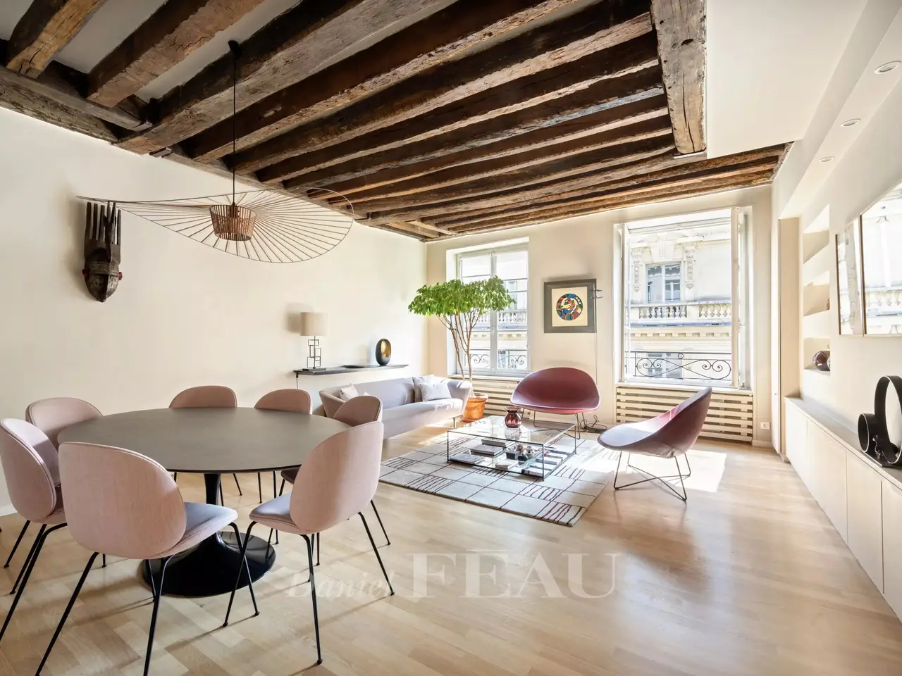 This air-conditioned dual-aspect apartment is on the 4th floor of a fine period building located a stone’s throw from Place des Victoires, Palais Royal and the Bourse. Tastefully renovated throughout, it offers 101 sqm of living space as defined by the Carrez Law including a spacious living/reception room and dining room featuring exposed beams, a second living room, a kitchen, two bedrooms and two shower rooms.