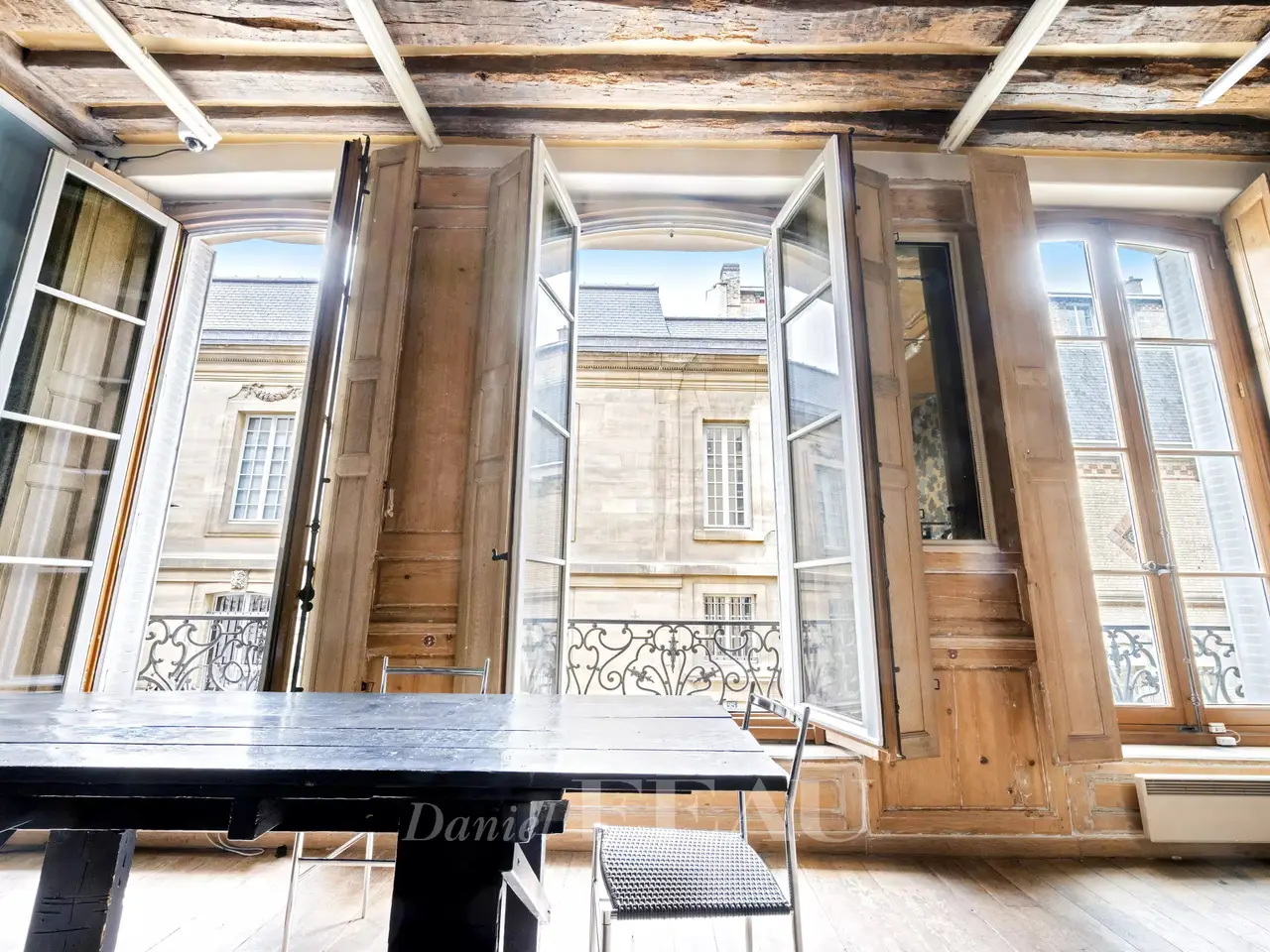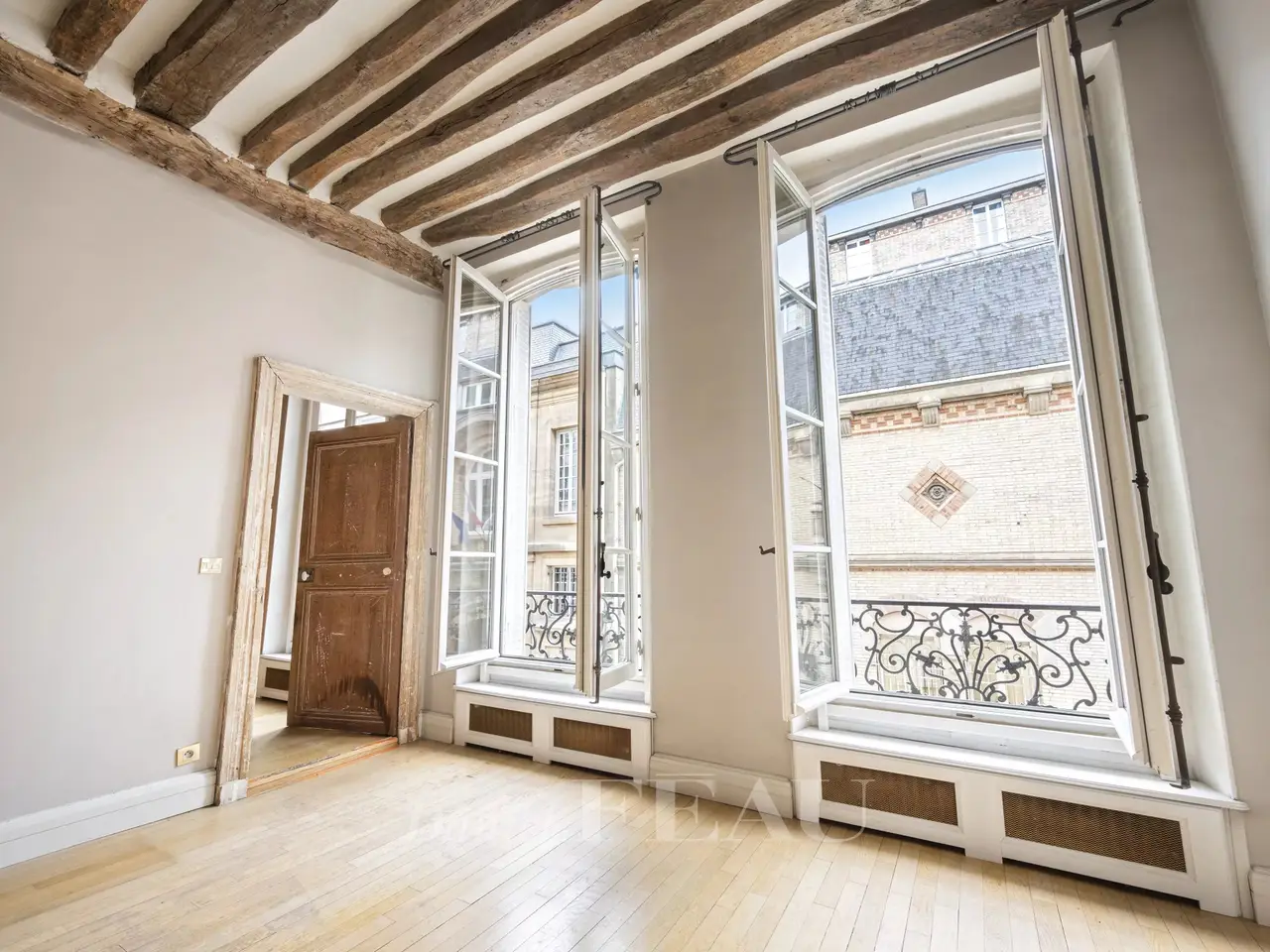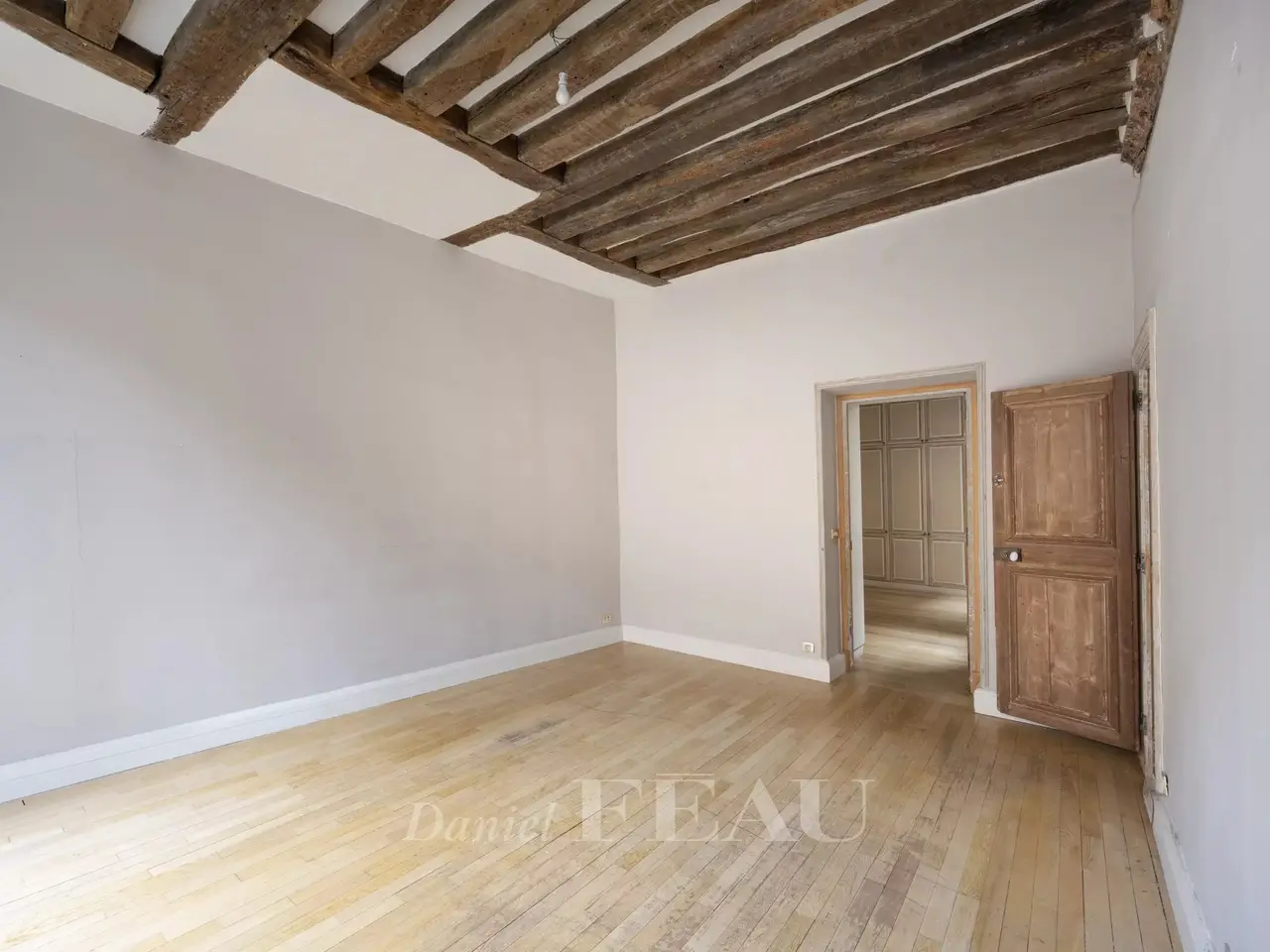 Between Place des Vosges and the Picasso Museum, a classic apartment with very spacious rooms. Located on the first floor of a beautiful freestone building with an elevator, it faces the Carnavalet Museum. This 125m² apartment requires some updating. Sunny and quiet. A cellar is included.