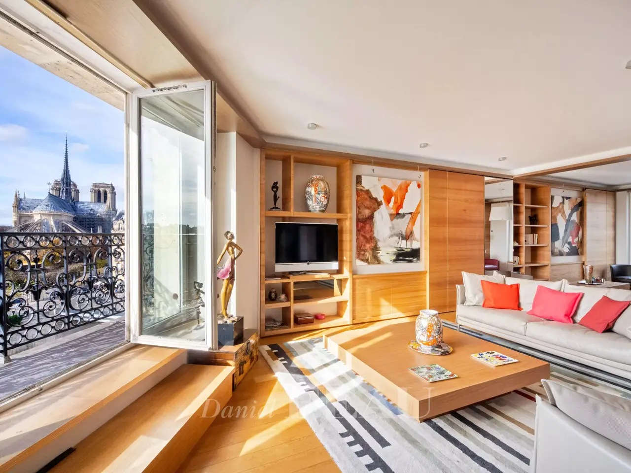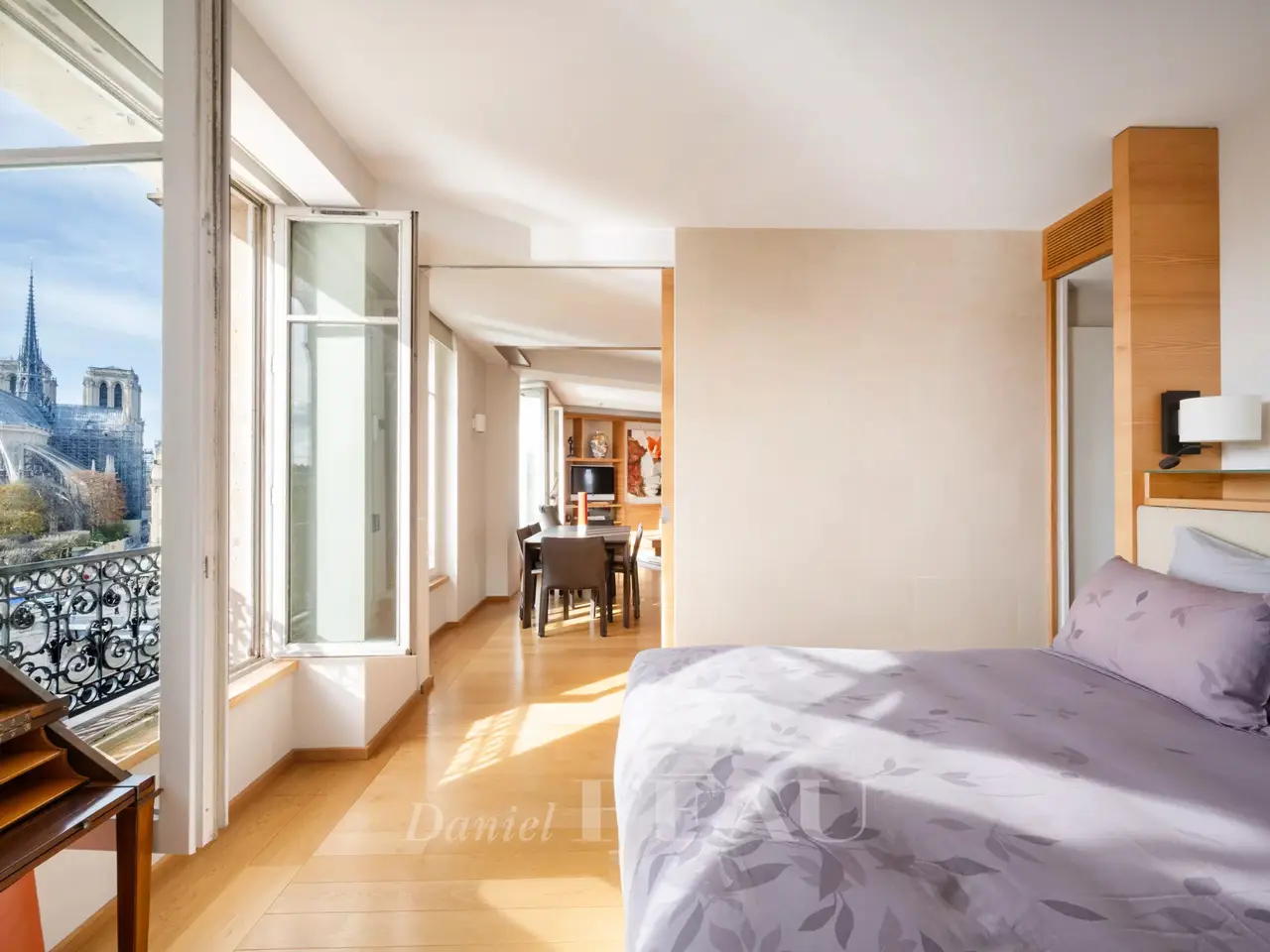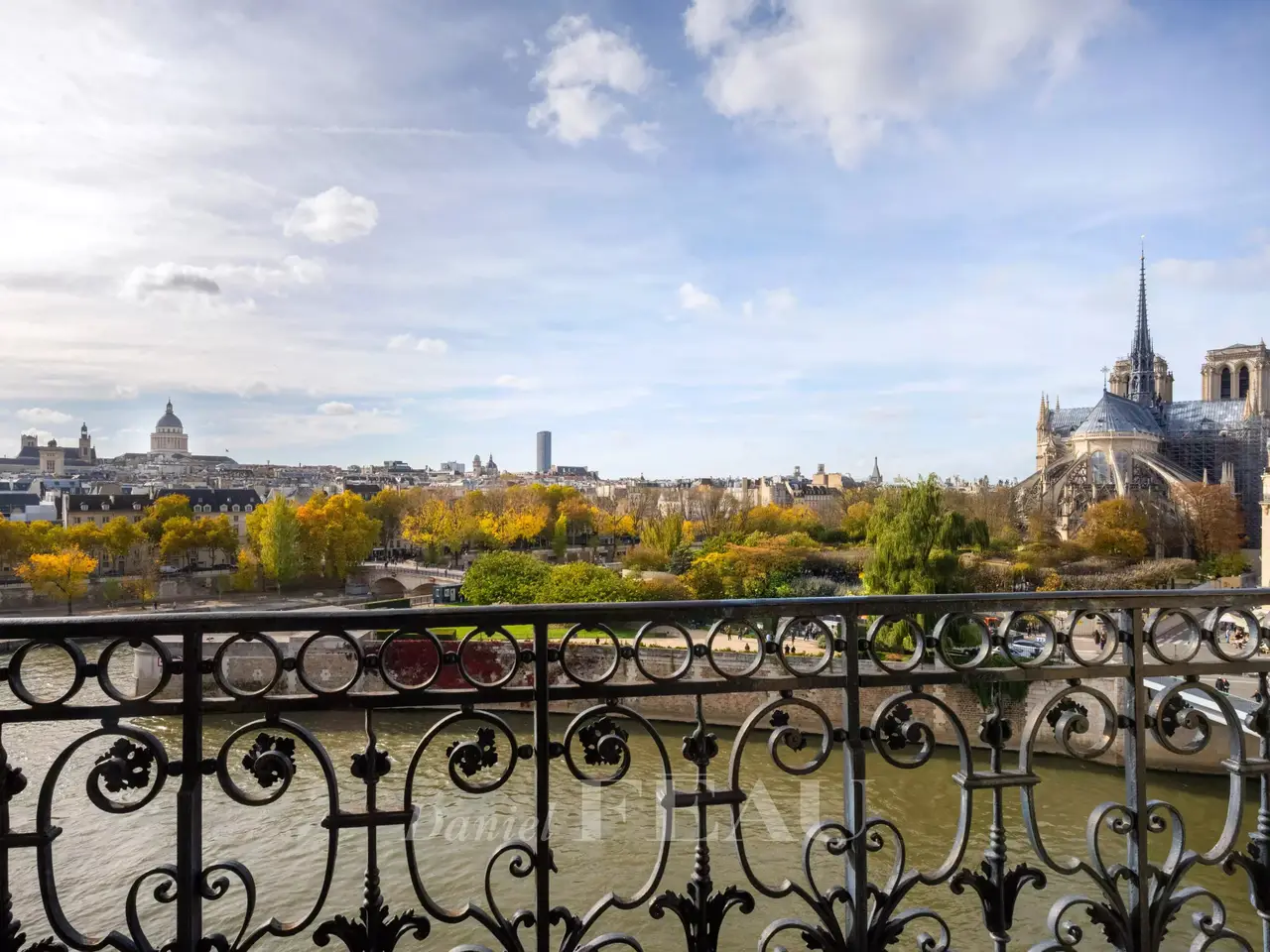 Located on the prestigious Quai d’Orléans, this exceptional apartment enjoys a south-facing exposure and breathtaking views of the Seine and Parisian landmarks. Nestled in the heart of Île Saint-Louis, one of the capital’s most sought-after addresses, this rare property offers a living area of 190 m² (Loi Carrez). Occupying the fifth floor of an elegant stone building with an elevator, the apartment features a spacious entrance, a large, light-filled reception room with a balcony, two kitchens, four bedrooms, and three bathrooms. The proportions, natural light, and charm of the period details give this residence a unique character. A magical, sun-drenched address for lovers of authenticity and exceptional views. The building offers the services of a concierge and includes a cellar.