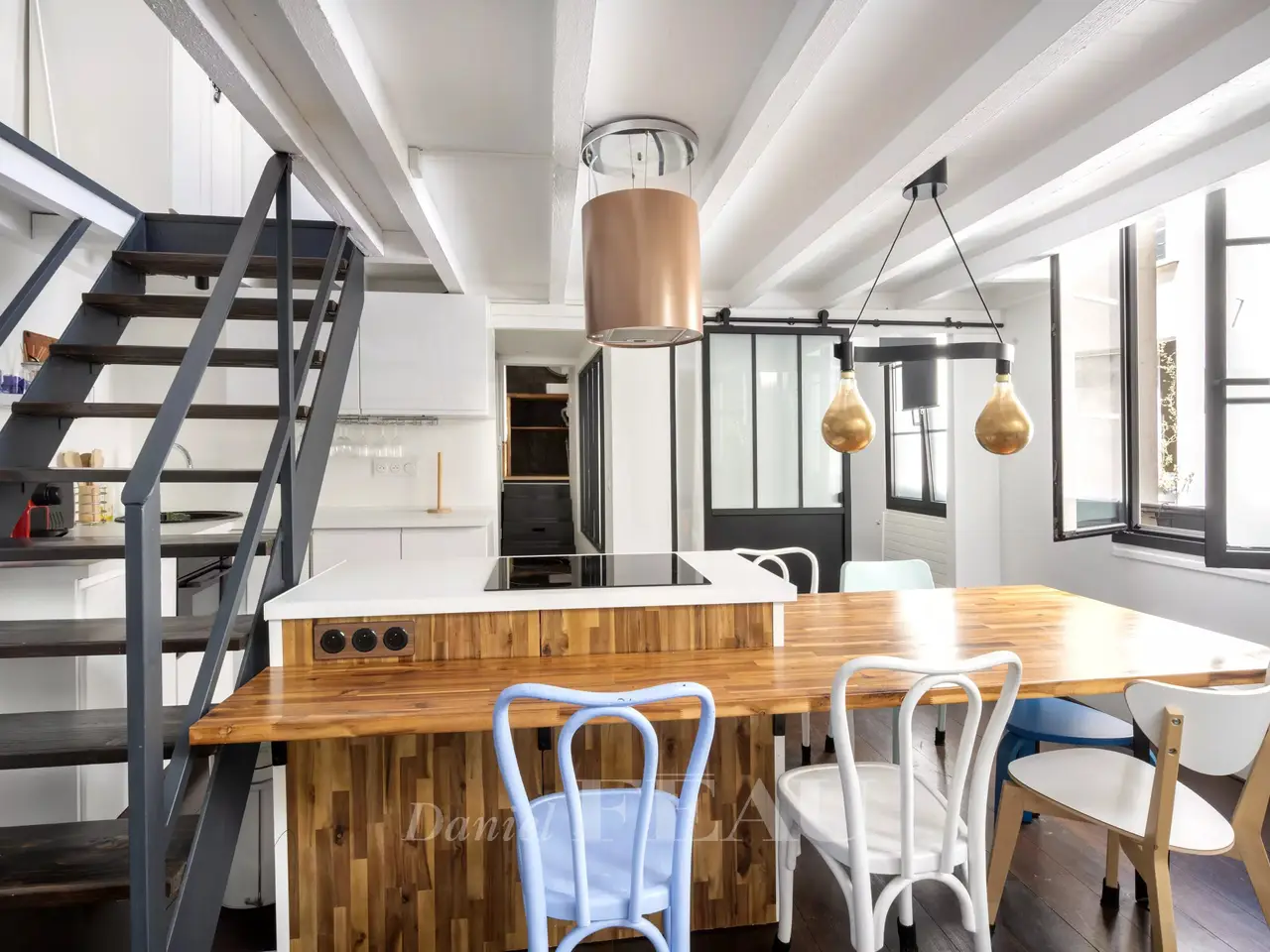 Located in one of the most iconic districts of the capital, on the highly sought-after Rue des Archives, this exceptionally quiet and light-filled apartment is nestled on the second and top floor. It offers 70 sqm of Carrez law surface (92 sqm total floor space). The entrance opens onto an elegant living area of approximately 45 sqm, featuring beautiful ceiling height. The semi-open, fully fitted and equipped kitchen blends seamlessly into the space. The main level also includes a bedroom, a refined, modern shower room, separate toilet, and extensive custom-made storage. Upstairs, a second bedroom with built-in wardrobes opens onto a study or reading nook. A cellar in the basement completes this rare property.