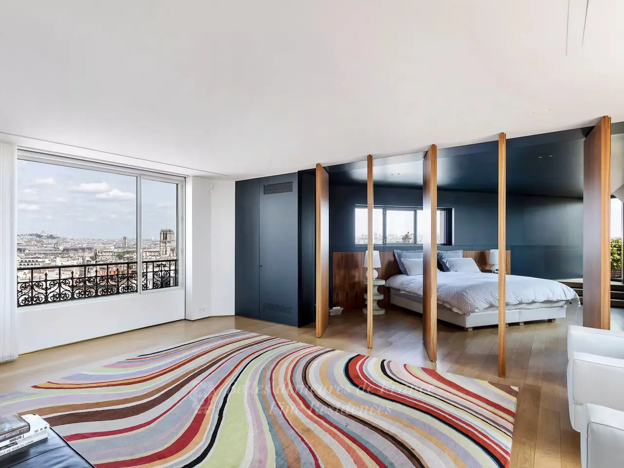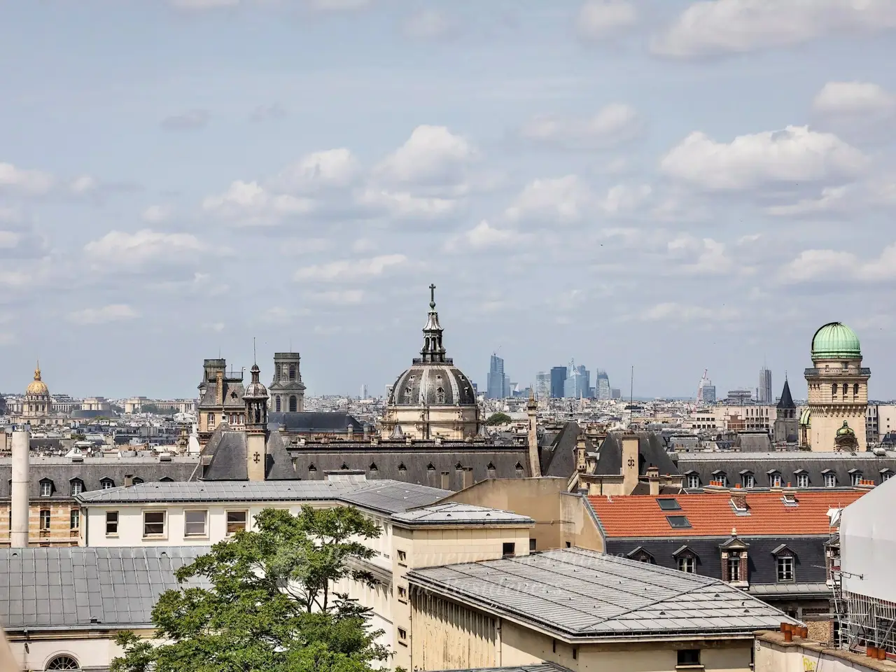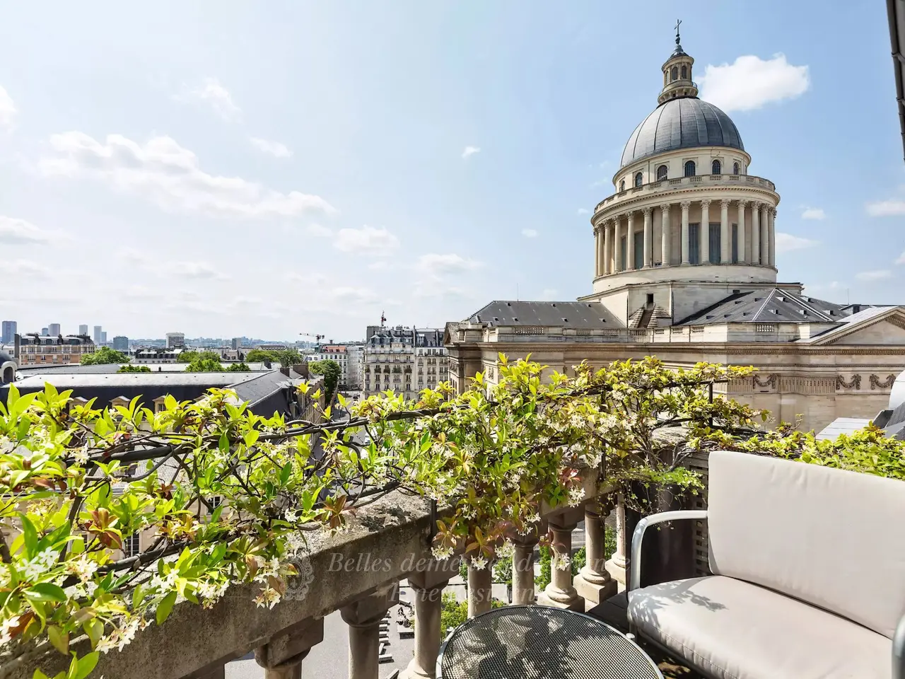 This magnificent 230 sqm apartment on the top floors of a luxurious late 1920s building includes a particularly sunny living/reception room opening onto balconies and commanding stunning views of Place du Pantheon and the church, a kitchen with dining facilities, two bedrooms with bathrooms, and a study. The upper floor boasts breathtaking views of the capital and its landmarks, and comprises a master bedroom opening onto two terraces, and a study/home cinema. A parking space nearby is available for purchase or rental. Henri IV catchment area.