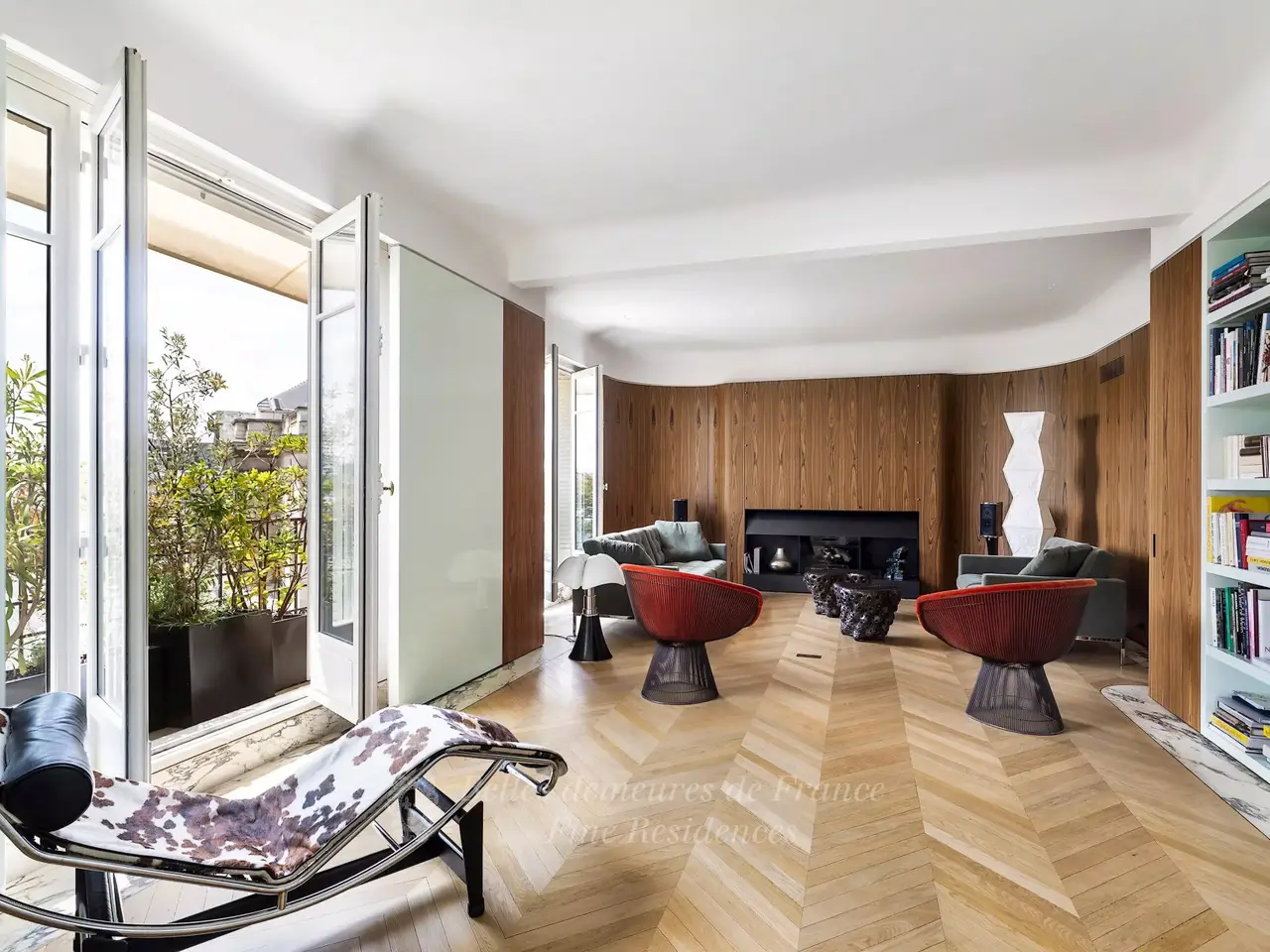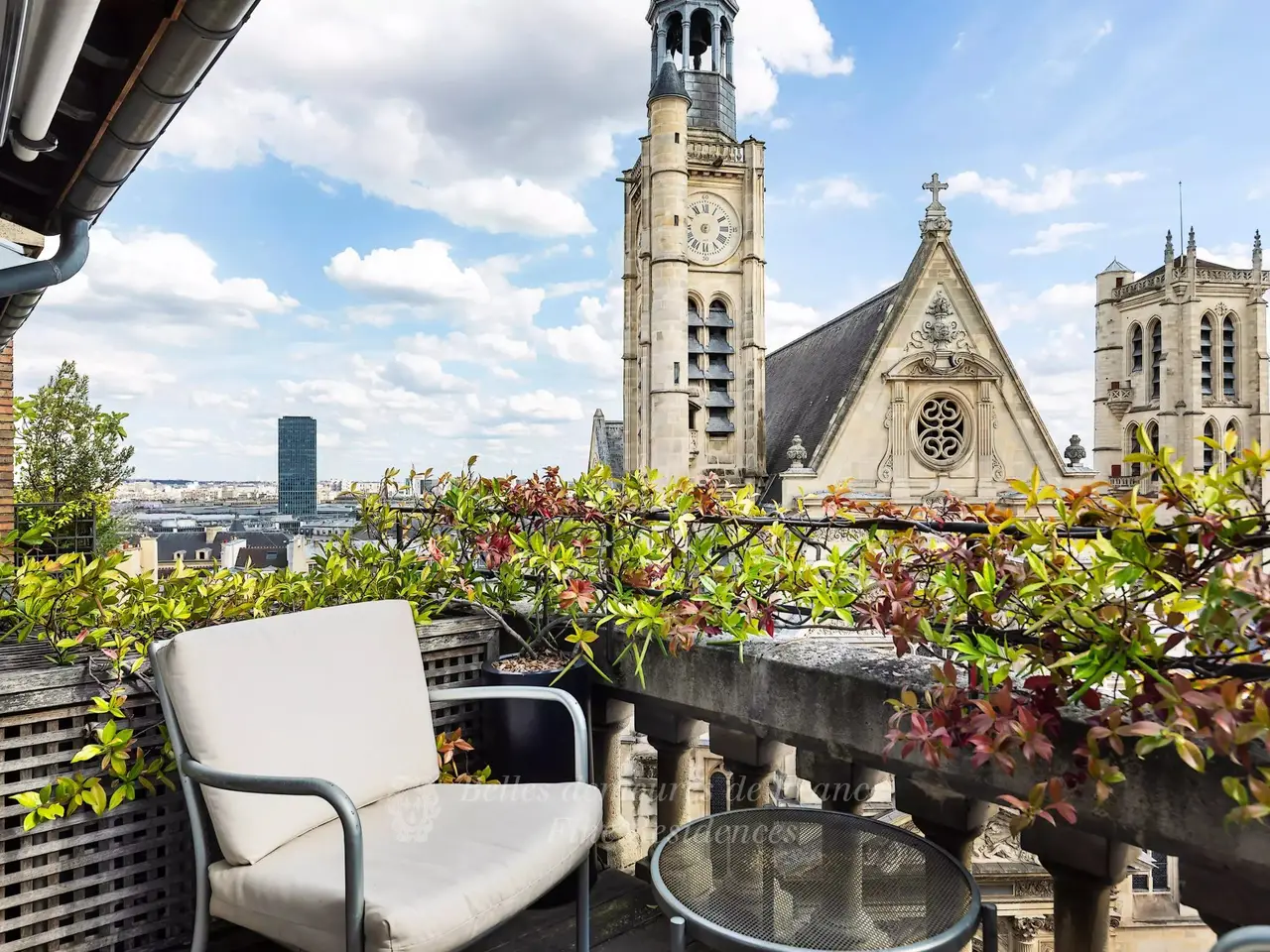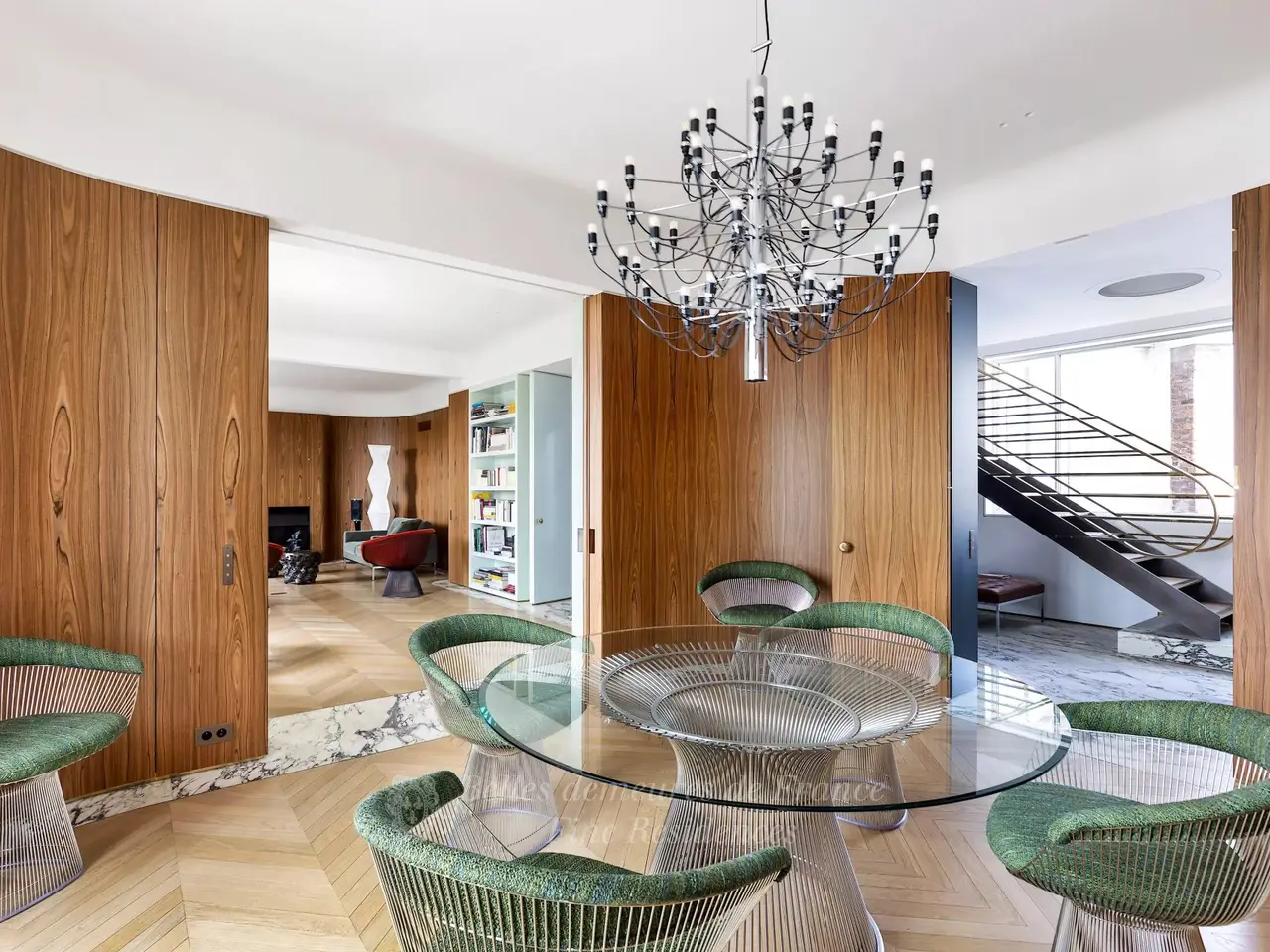 This magnificent 230 sqm apartment on the top floors of a luxurious late 1920s building includes a particularly sunny living/reception room opening onto balconies and commanding stunning views of Place du Pantheon and the church, a kitchen with dining facilities, two bedrooms with bathrooms, and a study. The upper floor boasts breathtaking views of the capital and its landmarks, and comprises a master bedroom opening onto two terraces, and a study/home cinema. A parking space nearby is available for purchase or rental. Henri IV catchment area.