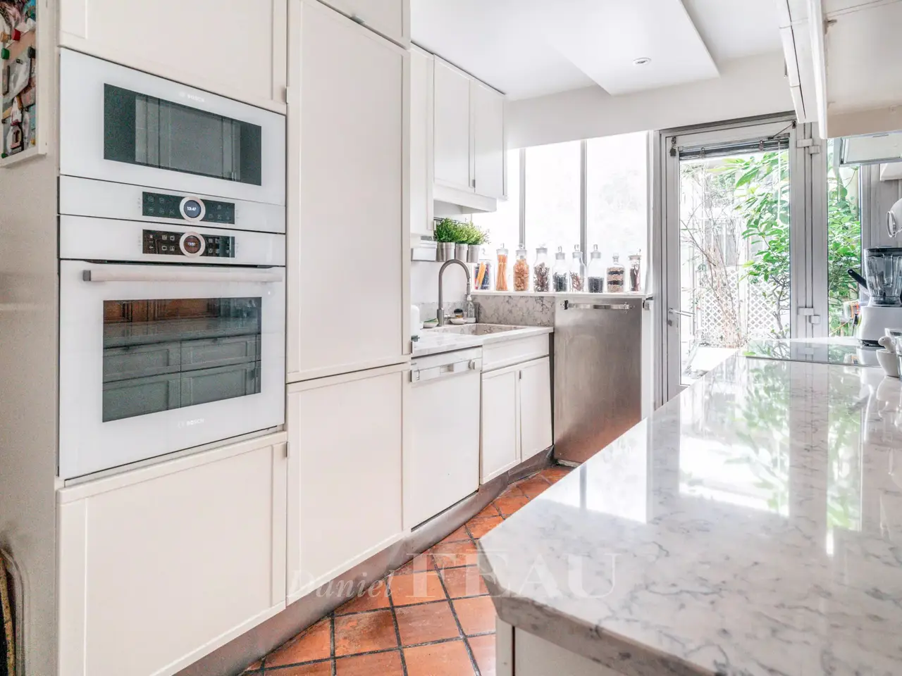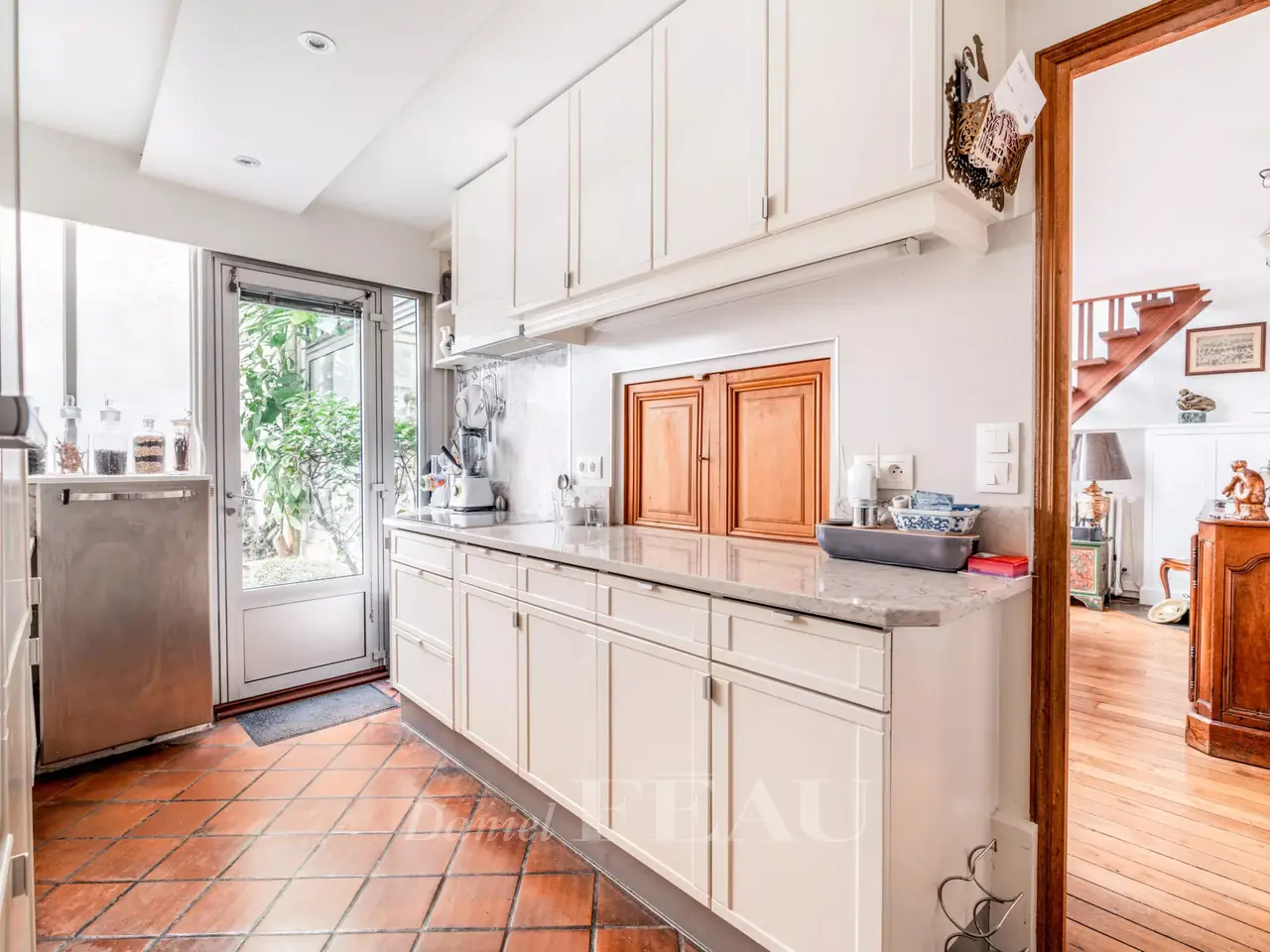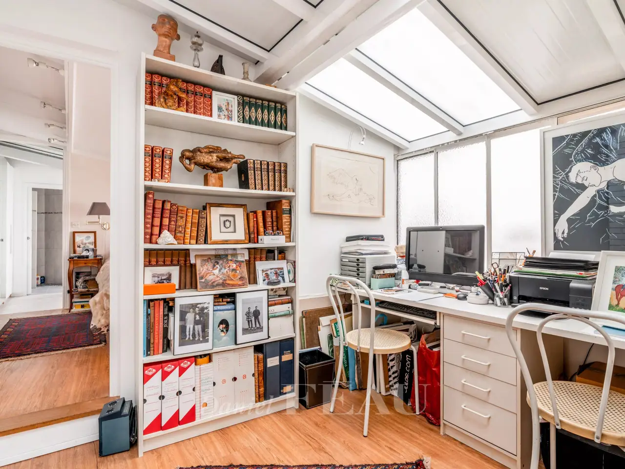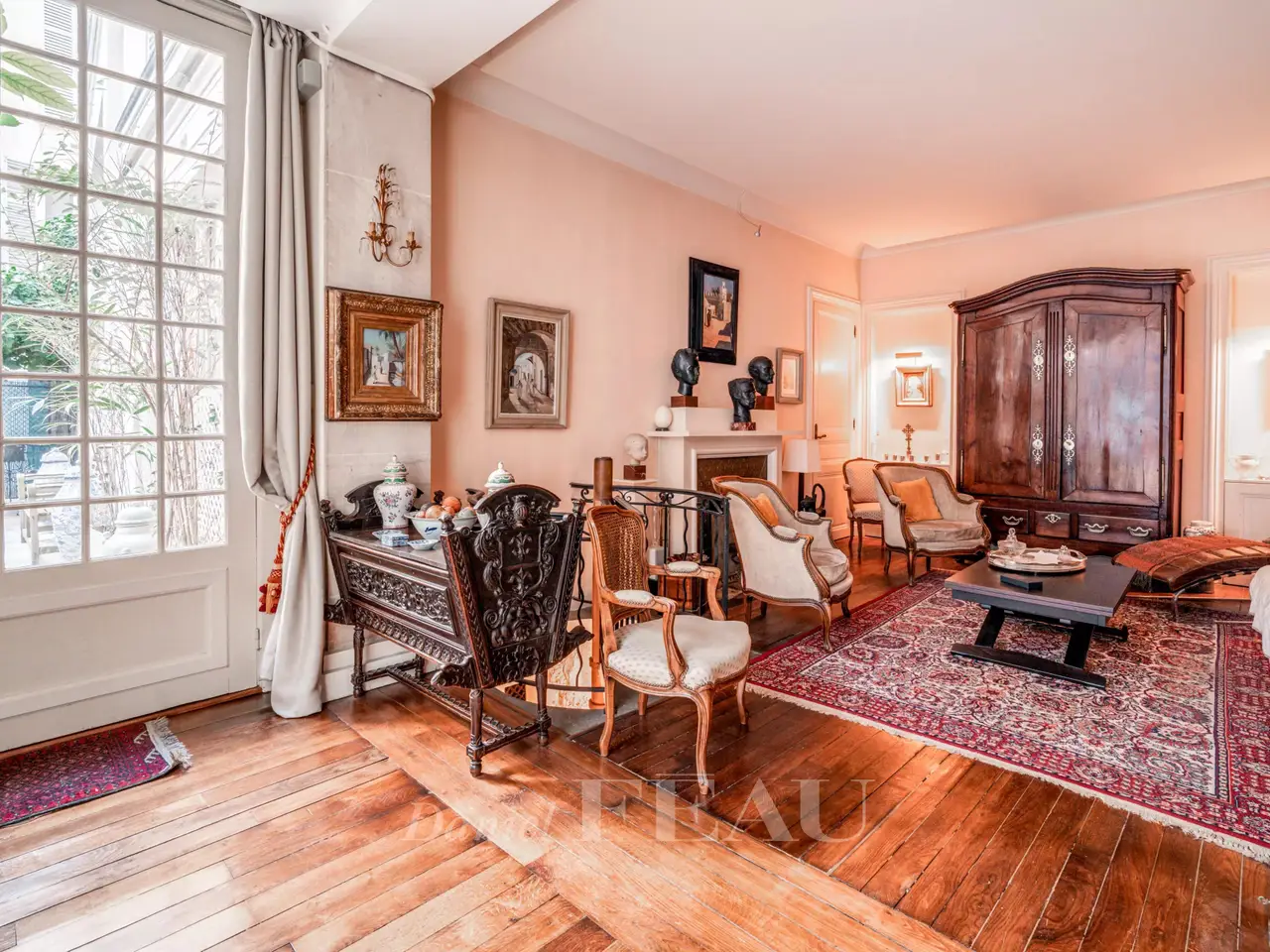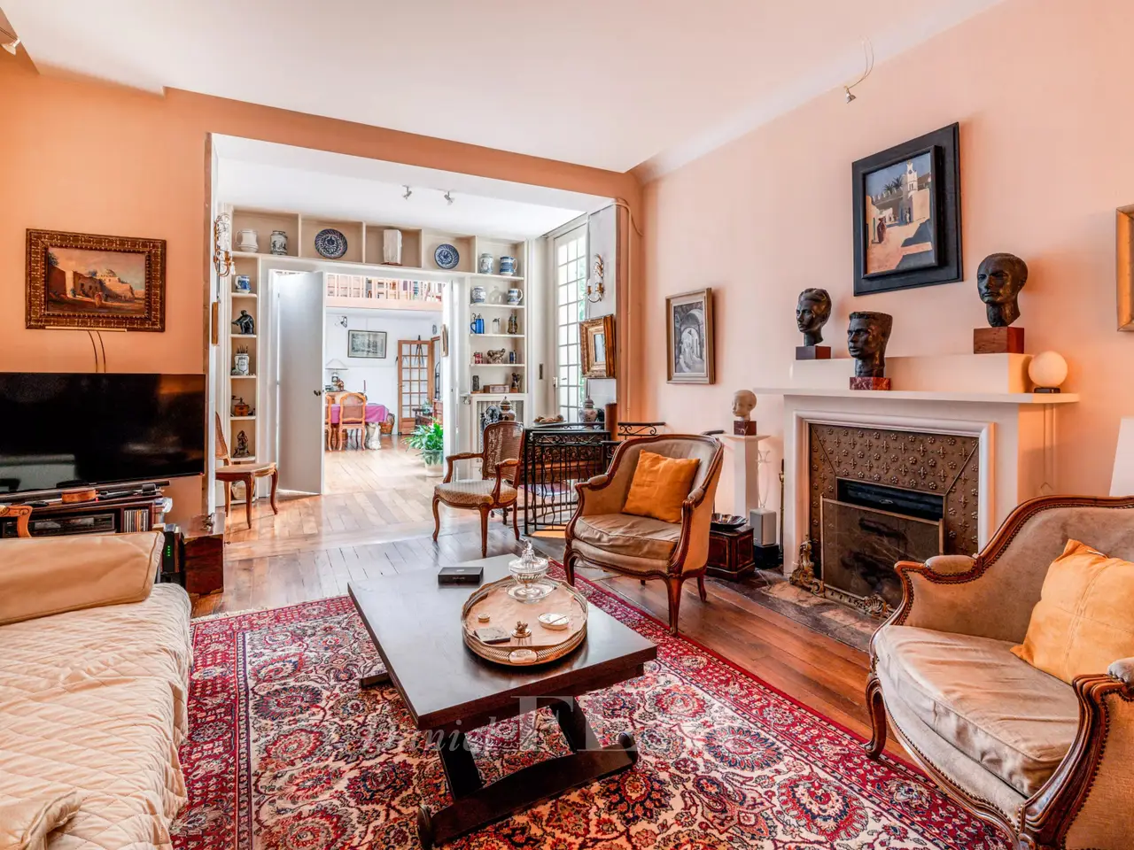 This former artist’s studio is on the garden level and ground floor of a fine late 19th century building set at the bottom of a courtyard located a stone’s throw from Luxembourg Gardens. With the feel of a bright and peaceful private house and benefiting from exclusive use of a 60 sqm courtyard, it offers 160 sqm of floor space and 134.50 sqm of living space as defined by the Carrez Law including a drawing room, an extensively glazed living/reception room featuring a soaring ceiling, a kitchen, four bedrooms (one benefiting from independent access and with a kitchenette, a shower room and a wc), and a bathroom with a wc. The basement comprises a utility room, a bathroom and a wc. A lock-up garage and a parking space may also be acquired 50.000 euros.