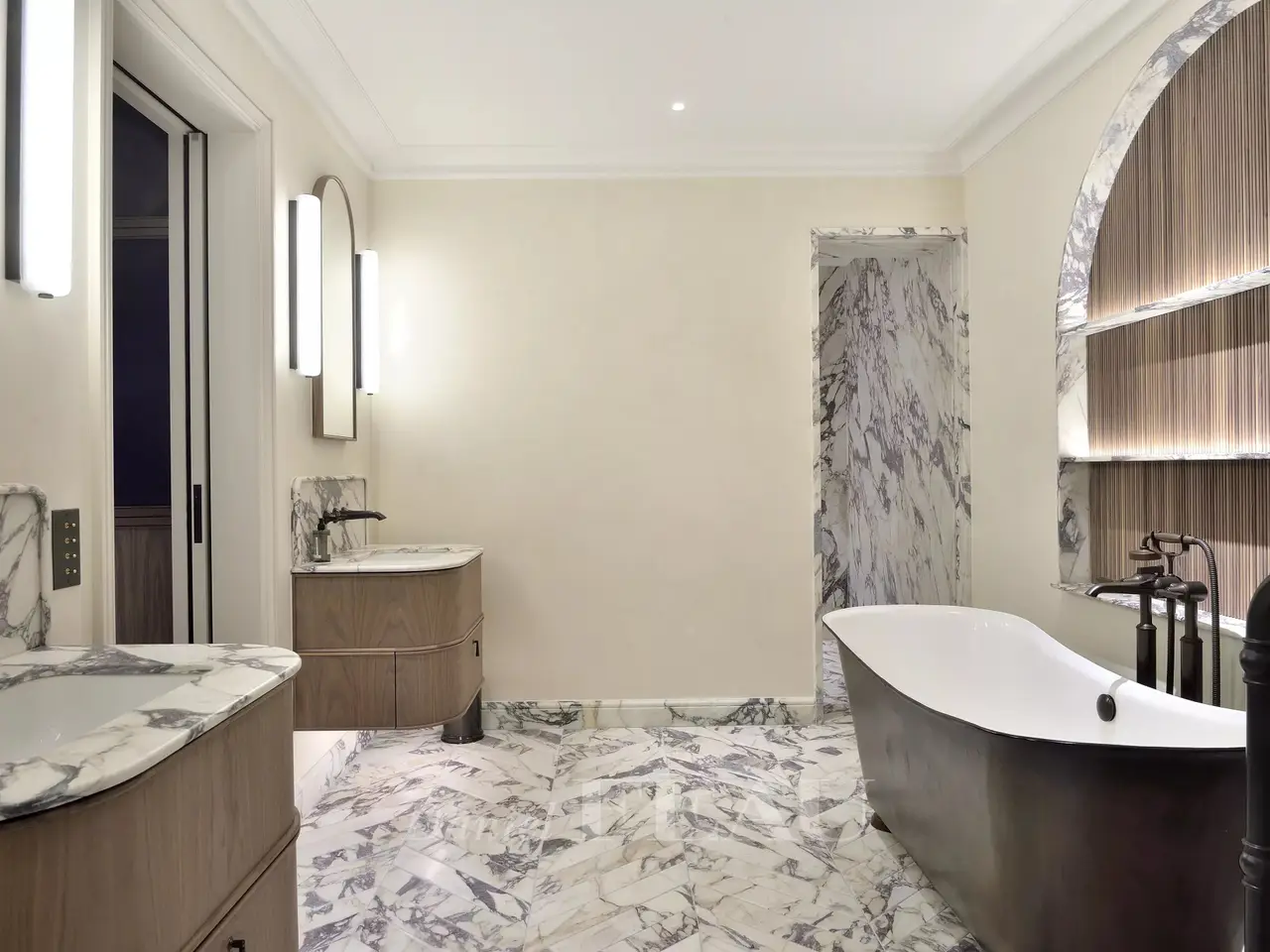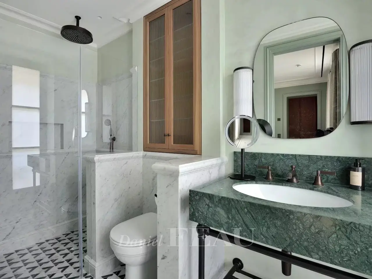 This entirely renovated apartment occupying the whole 3rd floor of a fine early 20th century building with a lift located in the heart of iconic Saint-Germain des Prés. 150 sqm of living space as defined by the Carrez Law includes a double living/reception room with a fireplace, a kitchen with dining facilities, a master bedroom with a bathroom/wc and a dressing room, a second bedroom with a shower room/wc, a utility room and a separate wc. With a cellar.