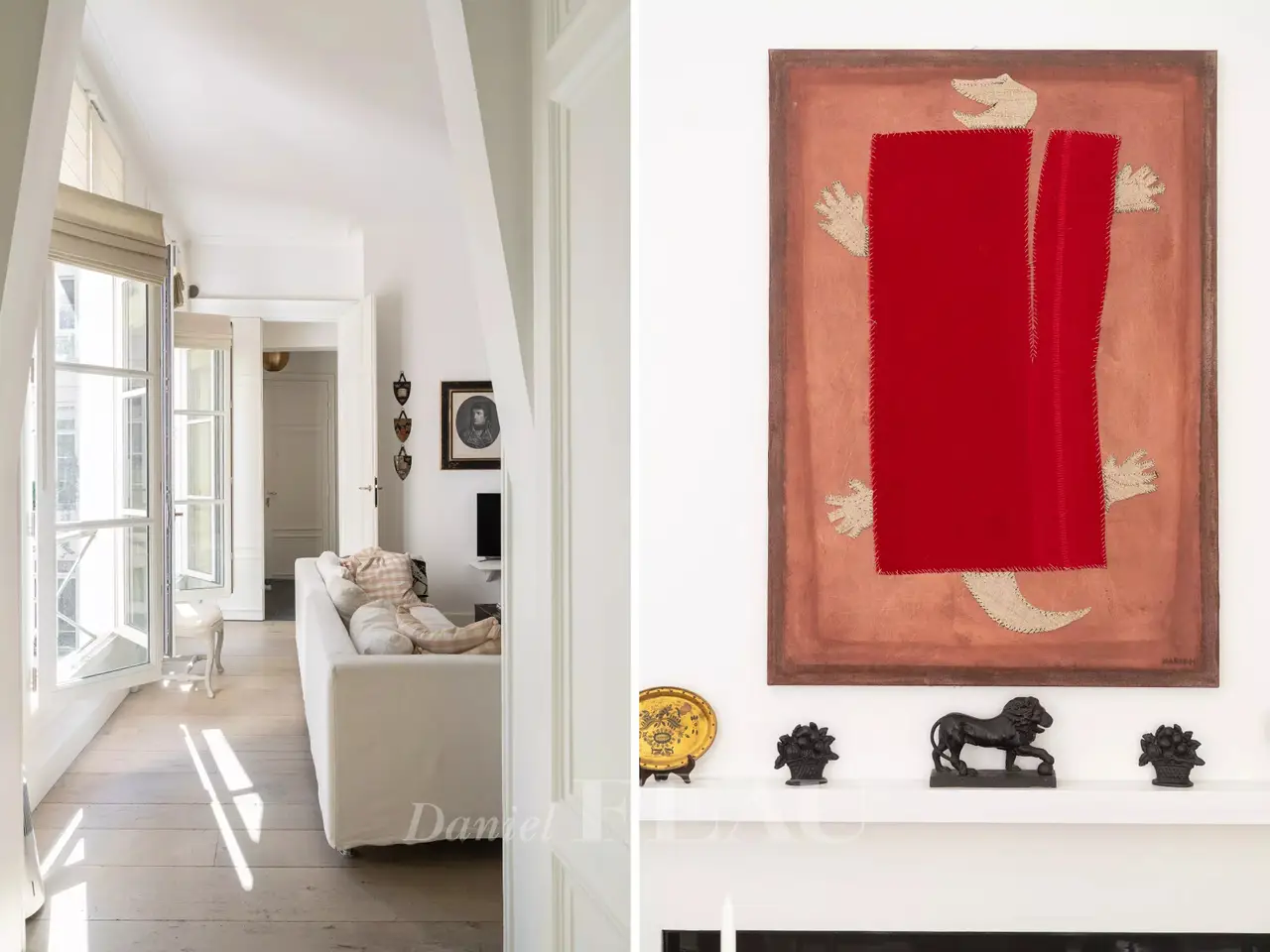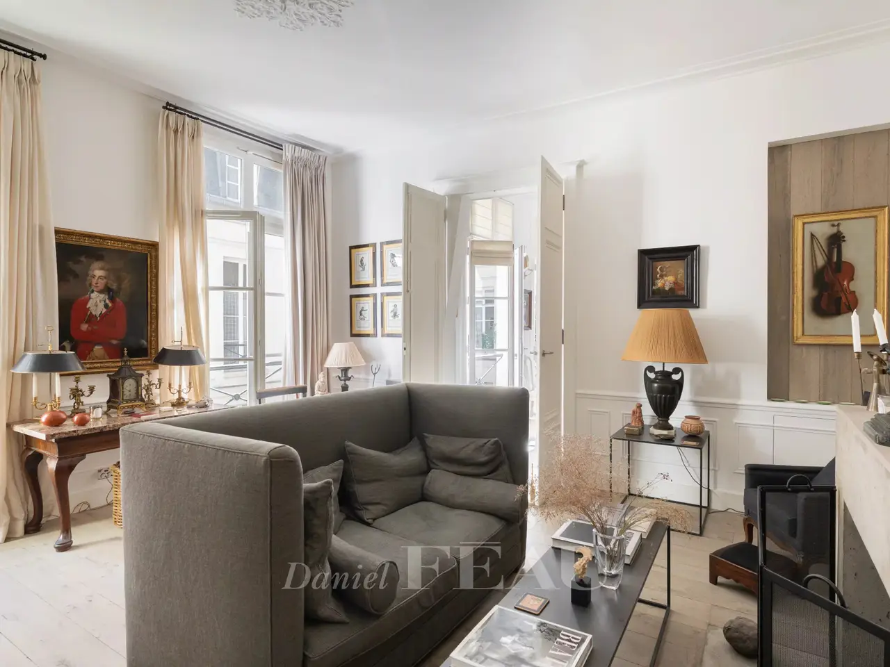 Rue Jacob, in the heart of iconic Saint-Germain-des-Prés. This apartment on the 2nd floor of a fine mid 19th century building offers 112 sqm of living space as defined by the Carrez Law as well as a self-contained 19 sqm studio apartment which could be joined to the main apartment. Featuring 3.45 metre high ceilings and bathed in sunshine thanks to eight windows overlooking a courtyard, it includes two living/reception rooms with fireplaces, a dining room and kitchen, two bedrooms, two bathrooms and a utility room. A flexible floor plan would allow for the creation of a spacious master suite with a bathroom and dressing room. Air conditioning. With two storage rooms and a cellar. A courtyard parking space may be acquired at extra cost.