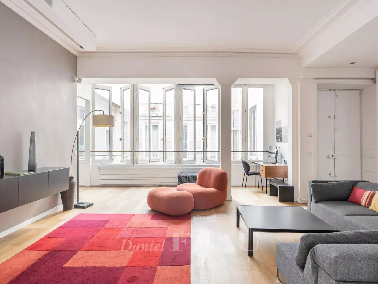Rue Monsieur le Prince. This elegant near 145 sqm dual-aspect apartment on the second floor of a fine mid 18th century building with a lift features 3.20 metre high ceilings. Beautifully appointed and allying period charm with contemporary comfort and style, it includes a double living/reception room, a contemporary semi open-plan kitchen, a master suite with a bath/shower room and wc, a second suite with a shower room and wc, a possible space bedroom, and a study or dressing room. With a 14 sqm cellar. Possible premises for a self-employed professional.
