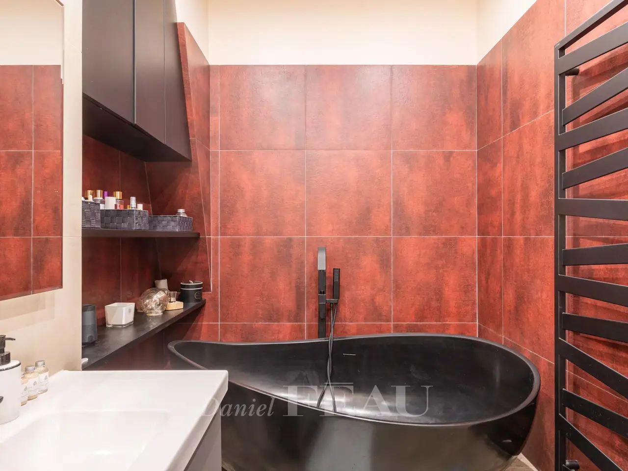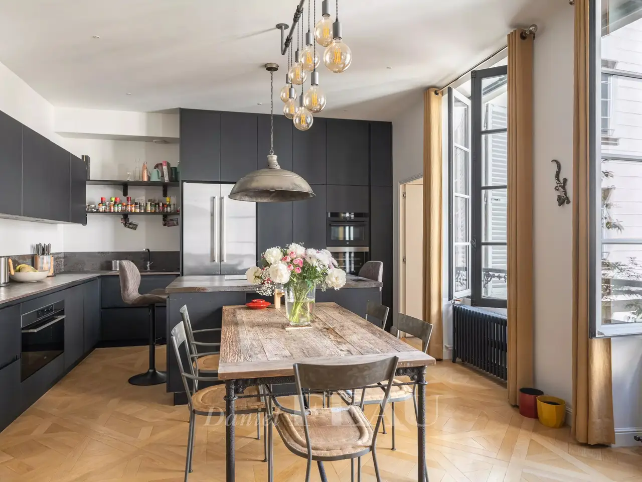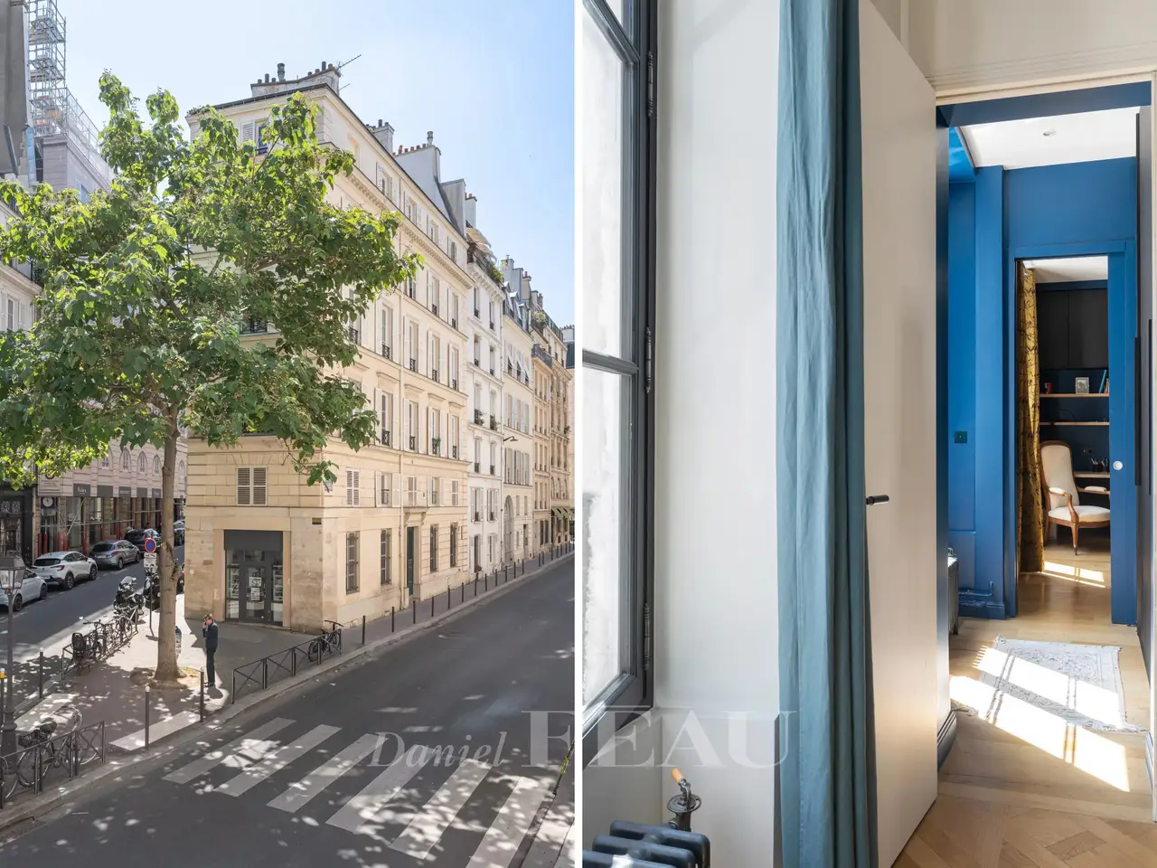 Rue de Condé. This bright and peaceful 170 sqm apartment featuring 3.10 metre high ceilings is on the first floor of a perfectly maintained late 19th century building. Benefiting from a refined contemporary decoration, it includes a dual-aspect living/reception room enjoying open views of the street and a courtyard, a spacious fully equipped kitchen with dining facilities, a TV lounge, four bedrooms each with a bath or shower room, and a utility room. With a 5 sqm maid’s bedroom with mains plumbing on the 5th floor (lift access), and a large cellar.