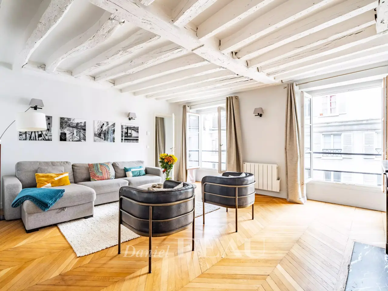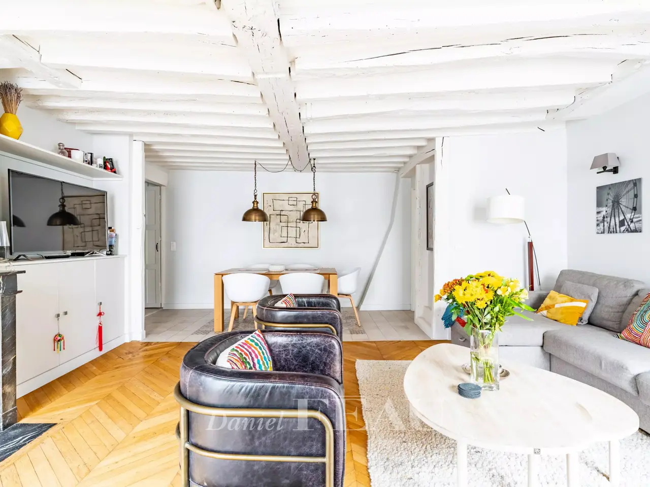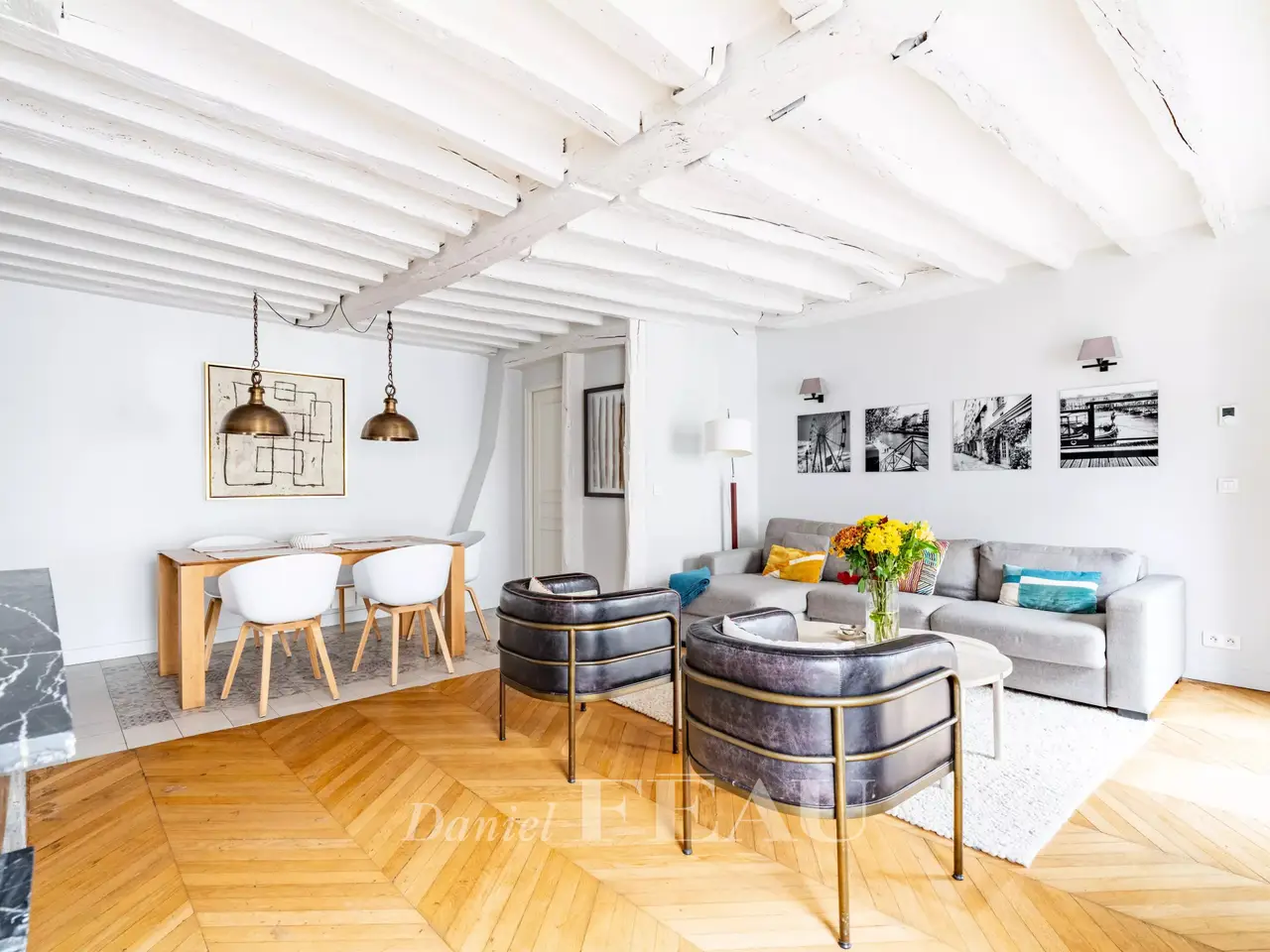 PRue du Bac. This charming apartment featuring parquet flooring, exposed beams and fireplaces is on the 3rd floor of a fine 18th century building. Overlooking a peaceful courtyard, it offers 94.79 sqm of living space as defined by the Carrez Law including a living/reception room, a partially open-plan kitchen, a suite with a bathroom and wc, a second bedroom with a shower room/wc, a separate wc and a utility area. With a top-floor maid’s bedroom and a cellar. The building is not equipped with a lift.