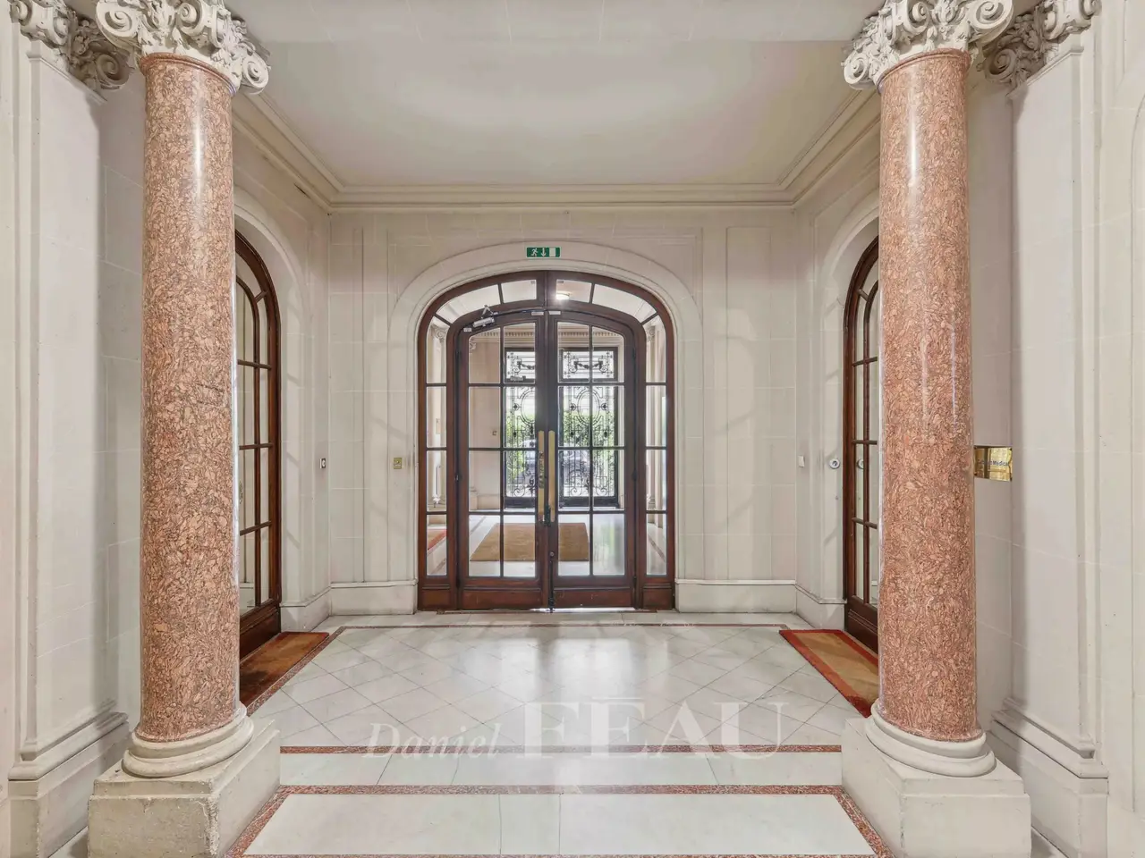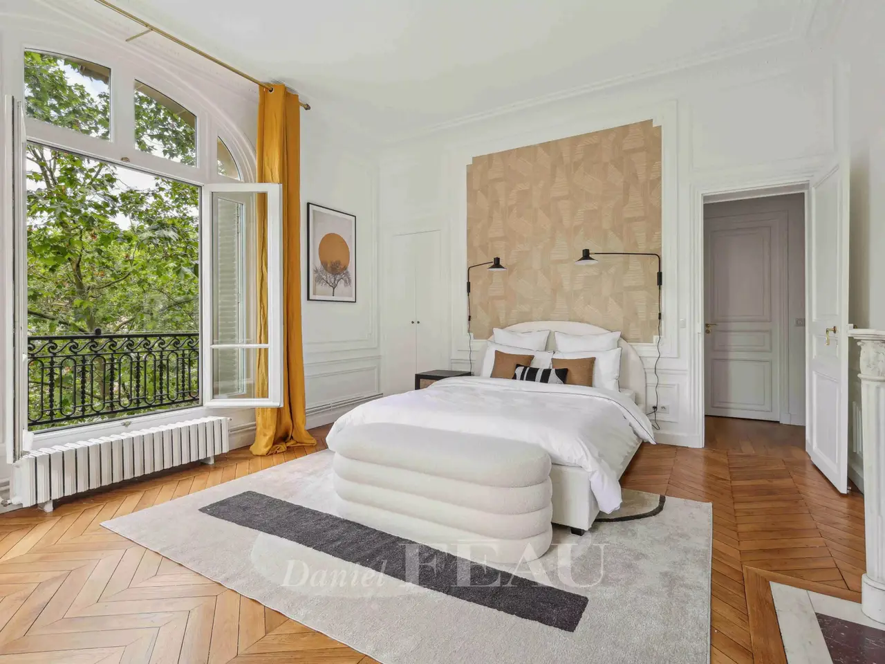 This exceptional family apartment commanding a superb view of the Eiffel Tower is on the 3rd floor of a magnificent Haussmannian corner building located in the immediate vicinity of the Champ-de-Mars in the heart of the capital’s prestigious Gros Caillou neighbourhood. Renovated throughout and bathed in sunshine, it includes an entrance hall, a triple living/reception room with a dining room and drawing room/library, a kitchen with dining facilities and a pantry, a master suite with a bathroom, four further bedrooms, a bathroom, two shower rooms and a utility room. Period features include parquet flooring, mouldings and fireplaces. With a cellar.