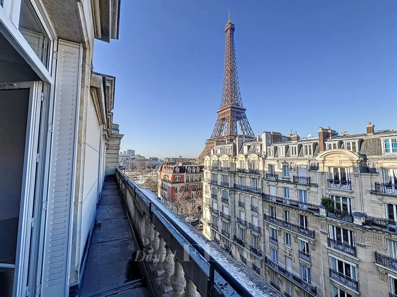 Prestigious Gros Caillou neighbourhood, in the immediate vicinity of the Champ de Mars. This 270 sqm apartment on the 6th floor of a magnificent 1920s corner building benefits from a wide 29 sqm continuous balcony commanding a superb view of the Eiffel Tower. Renovated throughout and bathed in sunshine, it includes an entrance hall, a dining room, a library/billiard room, a kitchen with dining facilities and a pantry, four bedrooms, a bathroom, a shower room and a utility room. Ample fitted storage space. Period features include parquet flooring, mouldings and fireplaces. With a cellar. A 211 sqm apartment on the floor above may also be acquired.