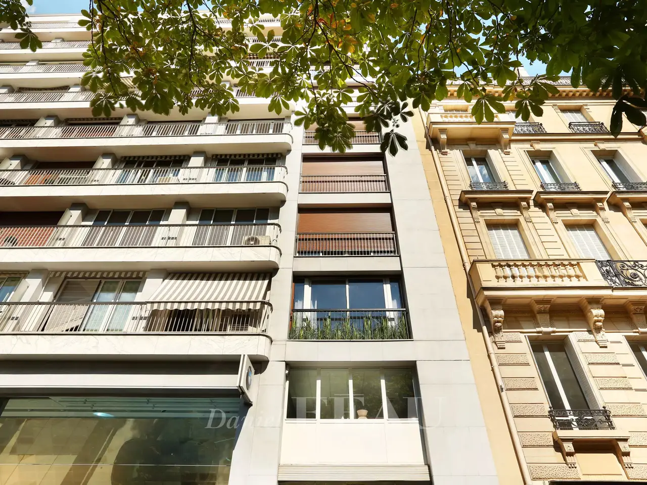 This bright three-room apartment is on the second floor of a luxurious mid 20th century building facing the iconic Four Seasons Hotel. Renovated throughout by an interior decorator, it offers 77 sqm of living space as defined by the Carrez Law including a spacious living/reception room, an equipped kitchen, a main bedroom with a shower room, a little second bedroom and a separate toilet. Beautifully appointed, and featuring Carrara marble and home automation. Cellar. The building has a 24/24 caretaker and is equipped with a lift. An ideal pied a terre enjoying views of the George V and Prince de Galles.