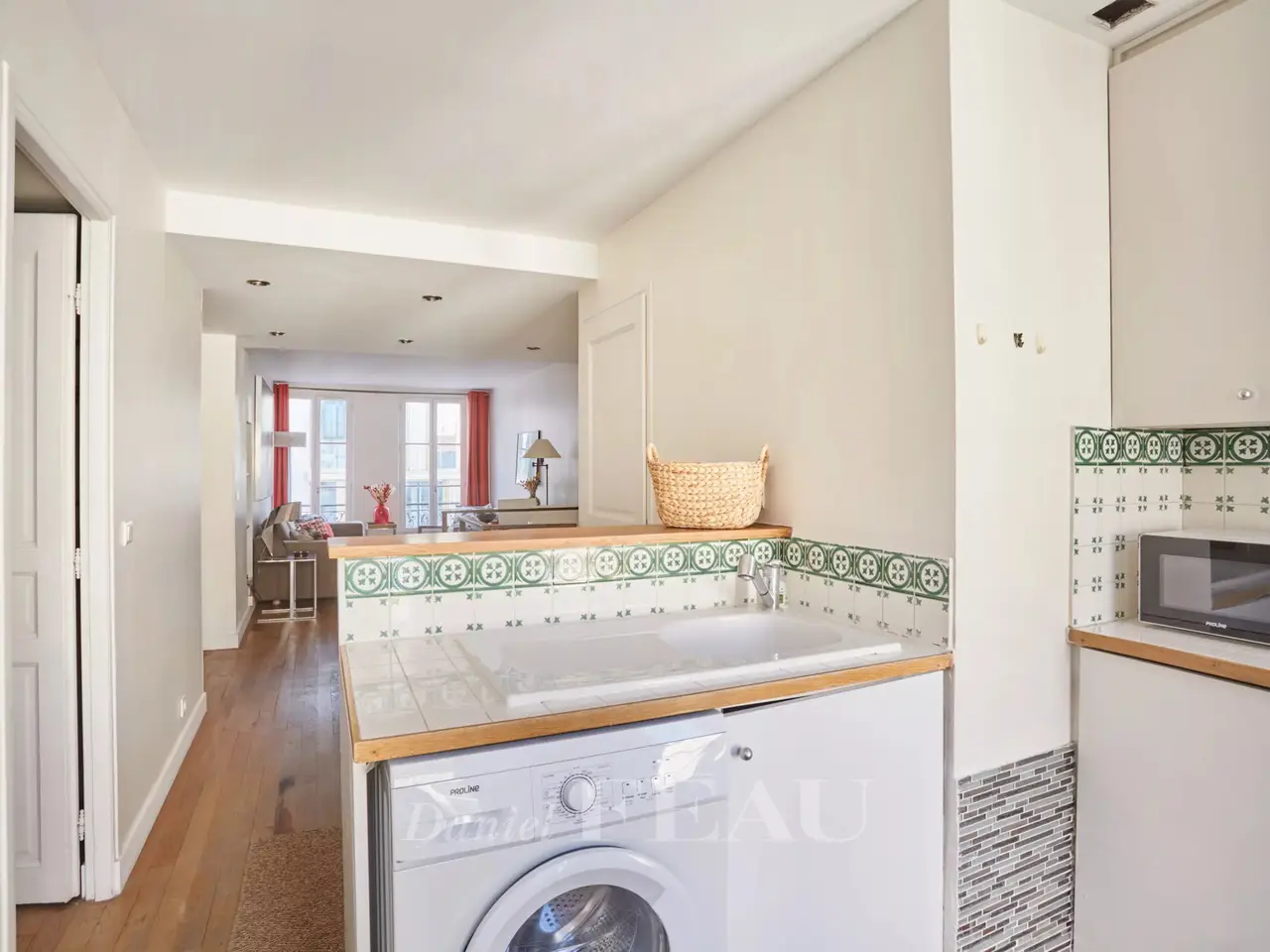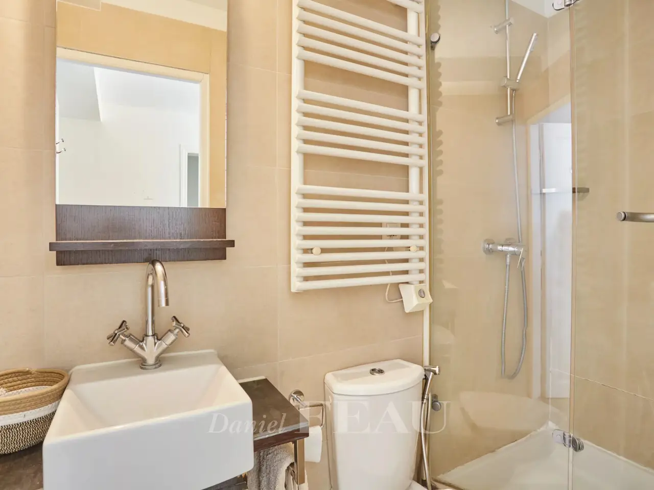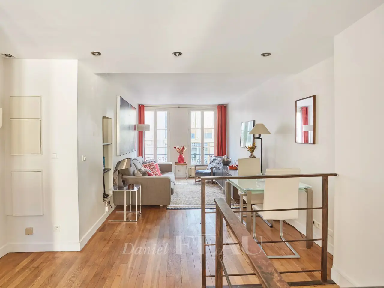 Rare for sale - Ideally located in the heart of the Golden Triangle, between Place François 1er and Avenue Montaigne, in a luxury building, charming duplex apartment of approximately 60 m² enjoying beautiful sunshine. It consists on the first level of a large living room opening onto a fitted kitchen, a bedroom, a shower room with WC, then on the second level a bedroom en suite complete with bathroom/WC and dressing room. Very good layout without wasting space. The whole is in good condition.