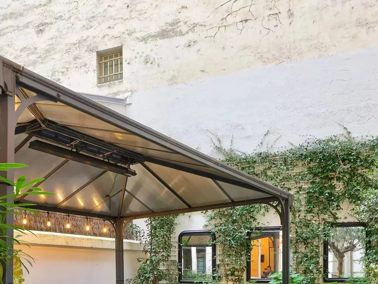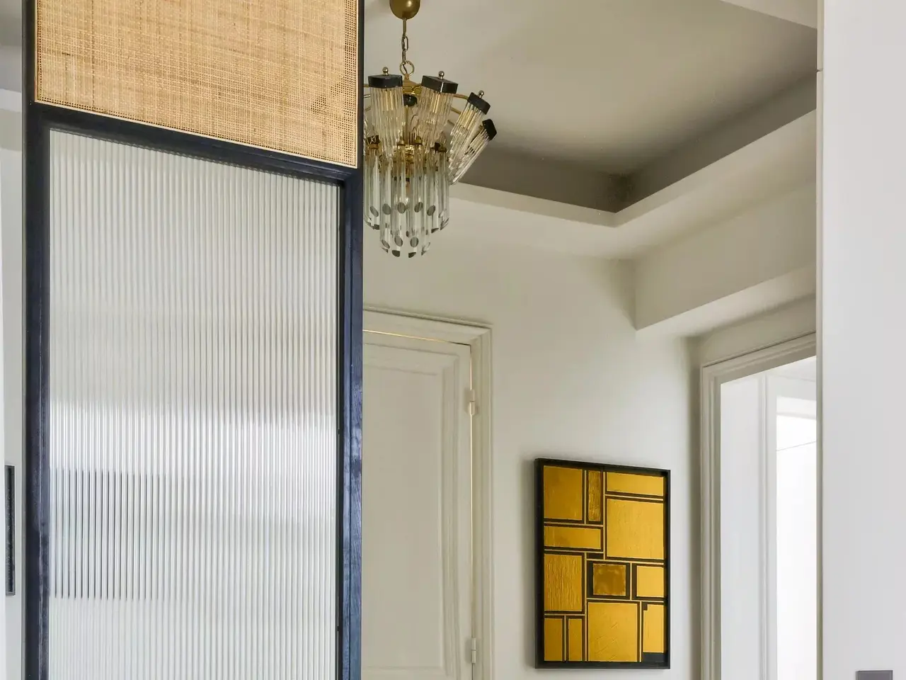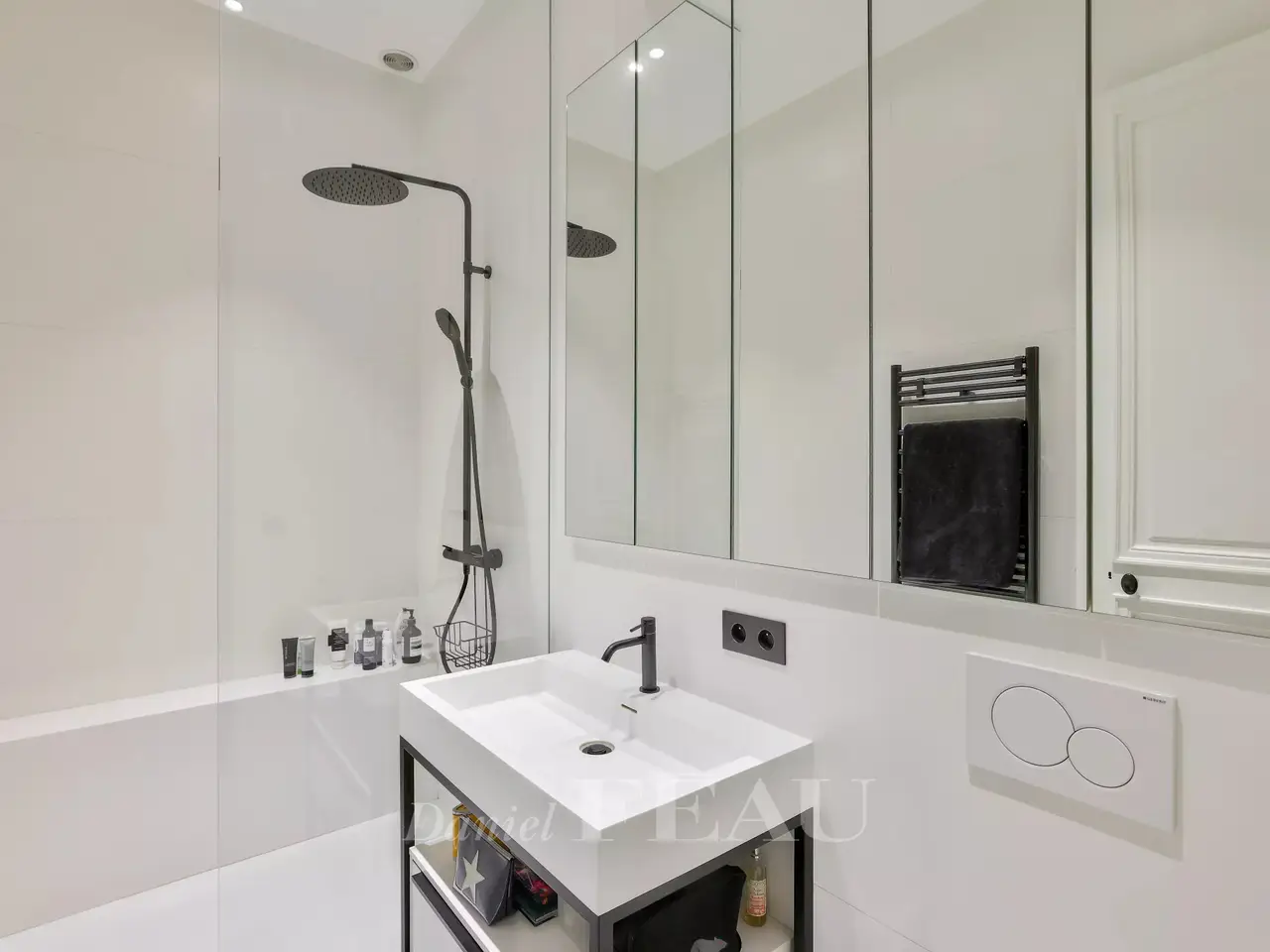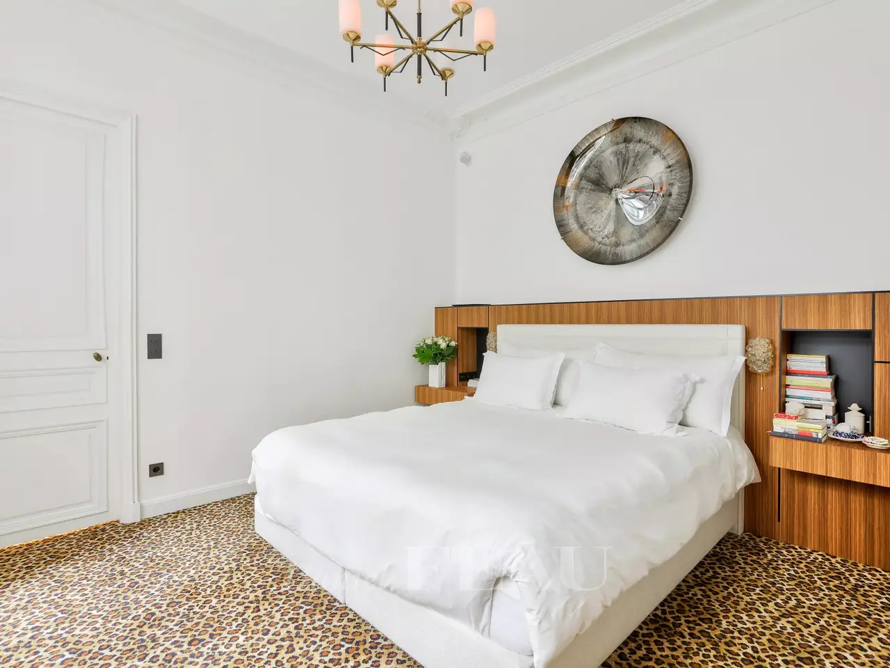 Europe neighbourhood. This refined 154 sqm apartment is on the garden level of a luxurious late 19th century freestone building located in a leafy pedestrian street. A star-shaped entrance hall leads to a magnificent rotunda living/reception room featuring 3.90 metre high ceilings and a fireplace, a luxuriously equipped kitchen with dining facilities, two spacious bedrooms each with a shower room and wc, a master suite with a study, two dressing rooms and a bathroom opening onto a little patio, a utility room and a guest wc. The apartment has been meticulously renovated and tastefully decorated by an interior decorator. In a peaceful location a short distance from the lively 9th District, the Batignolles neighbourhood, the shops and leafy Parc Monceau.