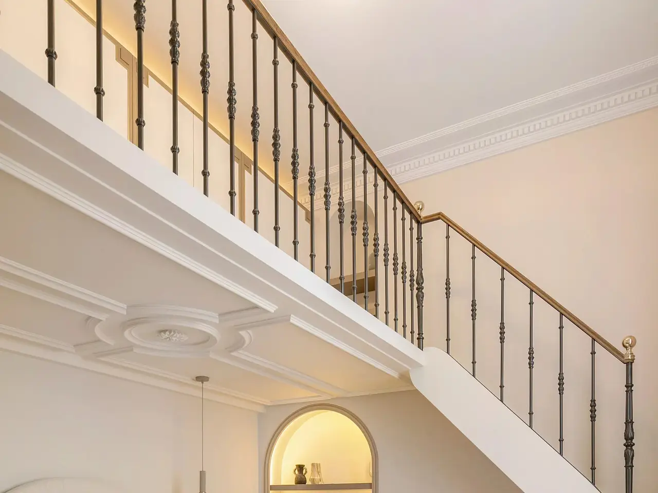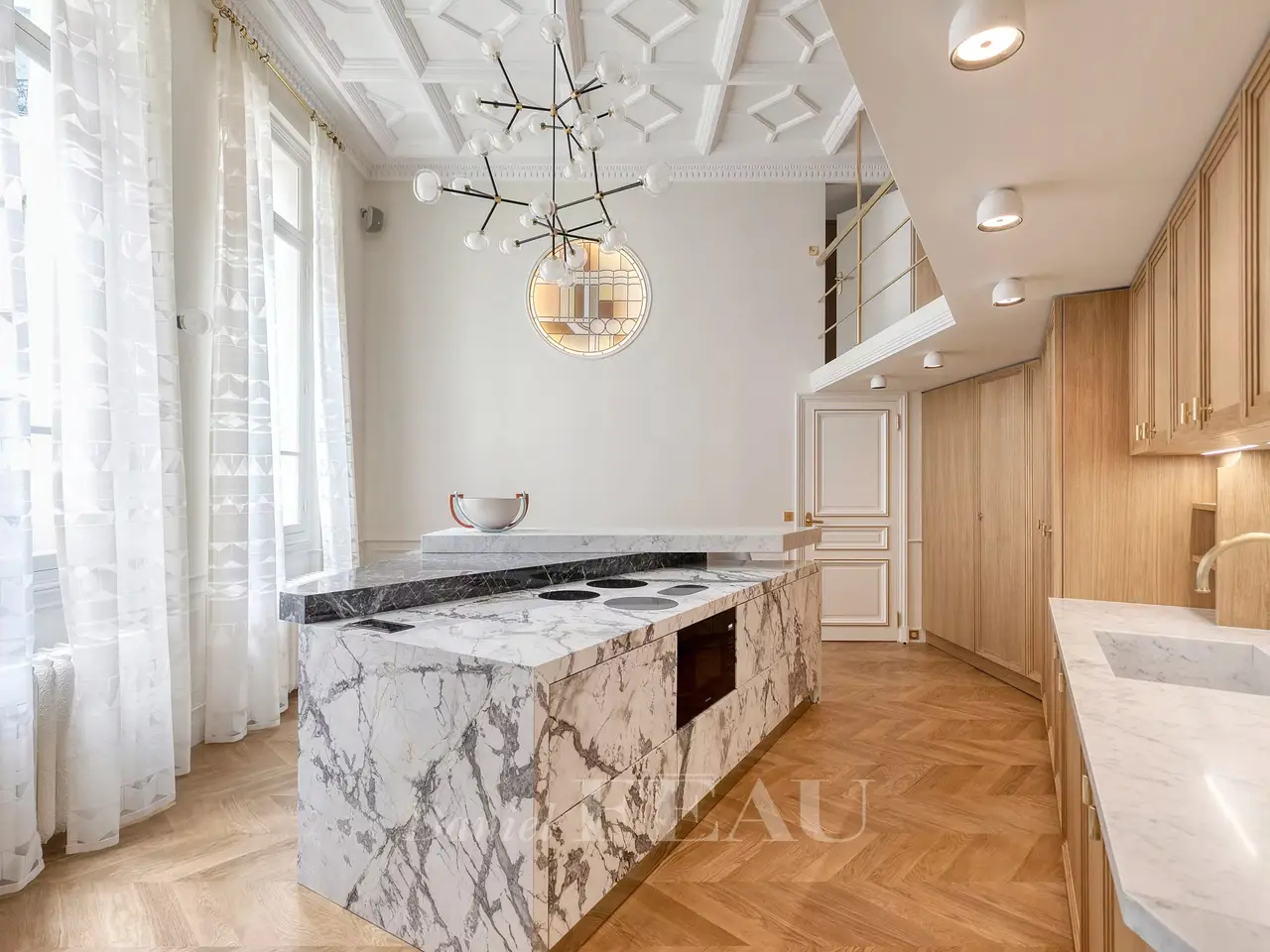 Unique. This magnificent apartment offering 350 sqm of floor space and 320 sqm of living space is on the 2nd floor of an elegant 18th century private mansion, the hôtel d'Orgemont, and overlooks Place Beauvau, the Elysee Palace, avenue de Marigny and Faubourg Saint Honoré. Renovated throughout by a renowned interior decorator and allying contemporary style and period elegance, it includes an entrance hall, a spacious living/reception room with a panelled study benefiting from wide floor-to-ceiling windows overlooking Place Beauvau, a dining room featuring a monumental fireplace and stained glass, a fully equipped kitchen with dining facilities, a second kitchen, a utility room, a storage room, a luxurious master suite with a mahogany dressing room and a complete marble-tiled bathroom, a second suite with a shower room and a dressing room, a spare bedroom with a shower room, and a guest wc. Air conditioning. With 5th floor staff studio apartment and study (20 sqm in total), and three cellars.