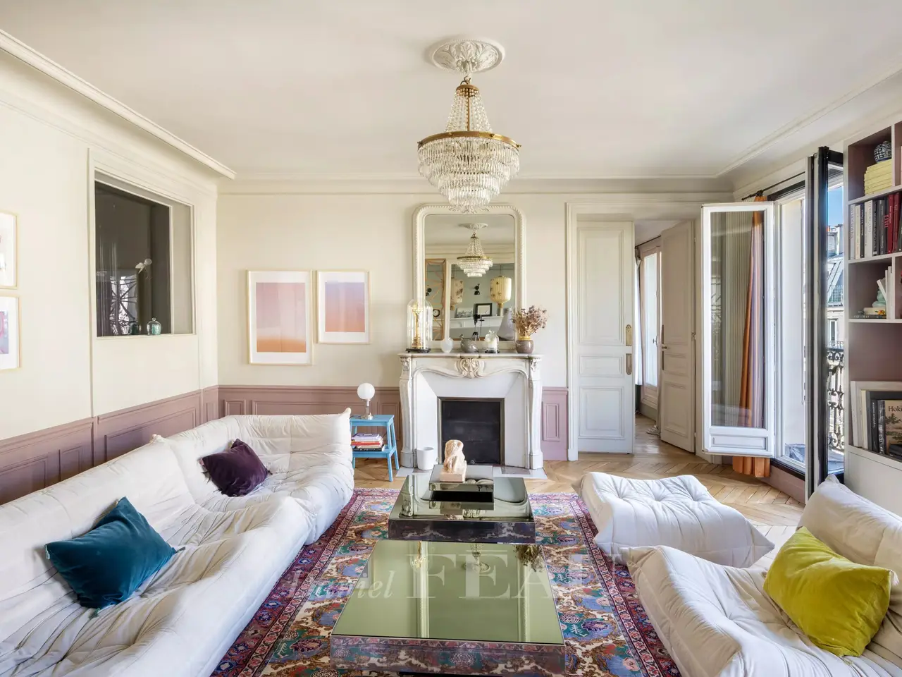 Place José Rizal. This bright family apartment benefiting from a continuous balcony enjoying an open view is on the 5th floor of a fine early 19th building with a lift. It includes a living/reception room, a dining room with an open-plan kitchen, a master suite with a shower room and dressing room, two further bedrooms and a bathroom. With a cellar.