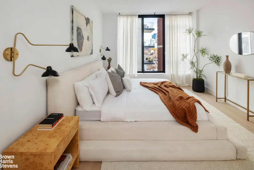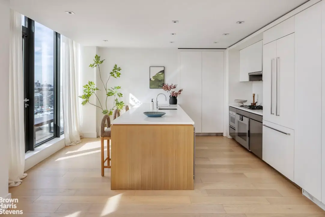 Welcome to PH8D at 251 1st Street, a breathtaking penthouse designed by ODA that blends contemporary design with unparalleled craftsmanship. This expansive three-bedroom, 2.5-bathroom residence features an impressive 1,669 SF interior floorplan, sophisticated finishes, two spacious terraces and panoramic south-facing views through floor-to-ceiling glass windows, allowing abundant natural light to fill the space. With 9'4" ceilings, every room feels open and airy, offering a perfect balance of style and function in one of Brooklyn's most sought-after neighborhoods. The sleek, chef-inspired kitchen is a true standout, showcasing custom-built satin lacquer cabinetry, stainless steel storage below, and top-of-the-line Gaggenau appliances. The striking kitchen island, crafted from Anegre wood and topped with Pure White Caesarstone, offers both form and function, making it the ideal space for cooking and entertaining. The primary bathroom exudes luxury with stunning White Sivec marble floors and walls, paired with Watermark fixtures for an elevated experience. Oversized mirrors with integrated lighting, a double-sink vanity with ample storage, and recessed medicine cabinets add to the bathroom's elegance and functionality. The secondary bathrooms are equally refined, featuring an artful mix of imported porcelain tiles that create a sophisticated, timeless look. The first floor of 251 1st Street offers a welcoming lobby lounge, library, and two comfortable seating areas designed for both relaxation and socializing. Residents enjoy the convenience of a part-time doorman (7am-11pm) and a virtual concierge available around the clock. Step outside and experience two beautifully landscaped courtyards, a rooftop retreat with sweeping views, lounge areas, and two dining spaces perfect for al fresco gatherings. The lower level boasts a fitness and yoga room, children's playroom, and a stylish lounge with a party room and kitchen. Additional features include a stroller valet, pet grooming station and a secured bike storage. Active 15 year tax abatement that expiring in 2032.
