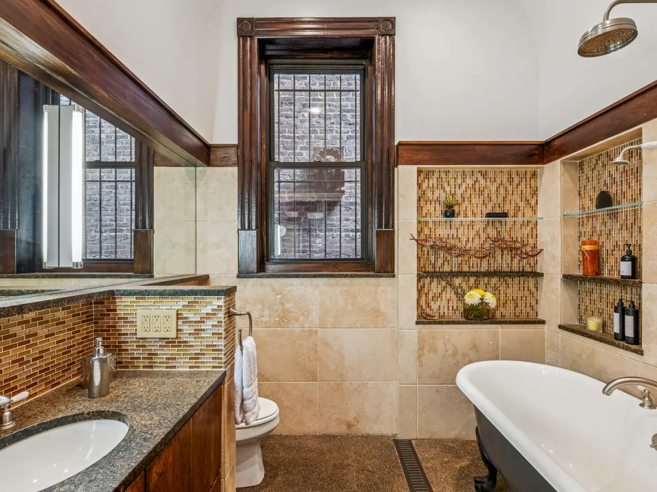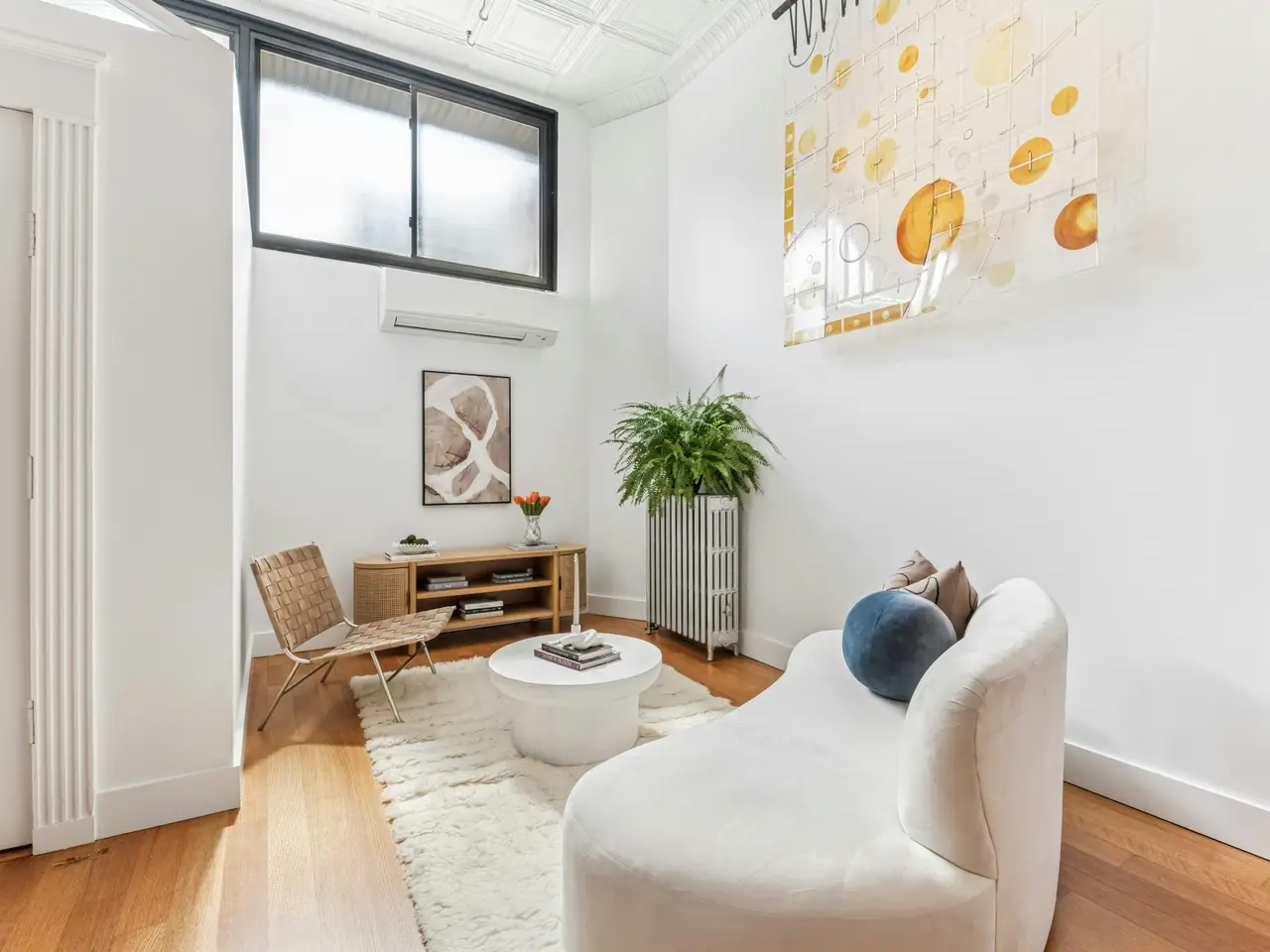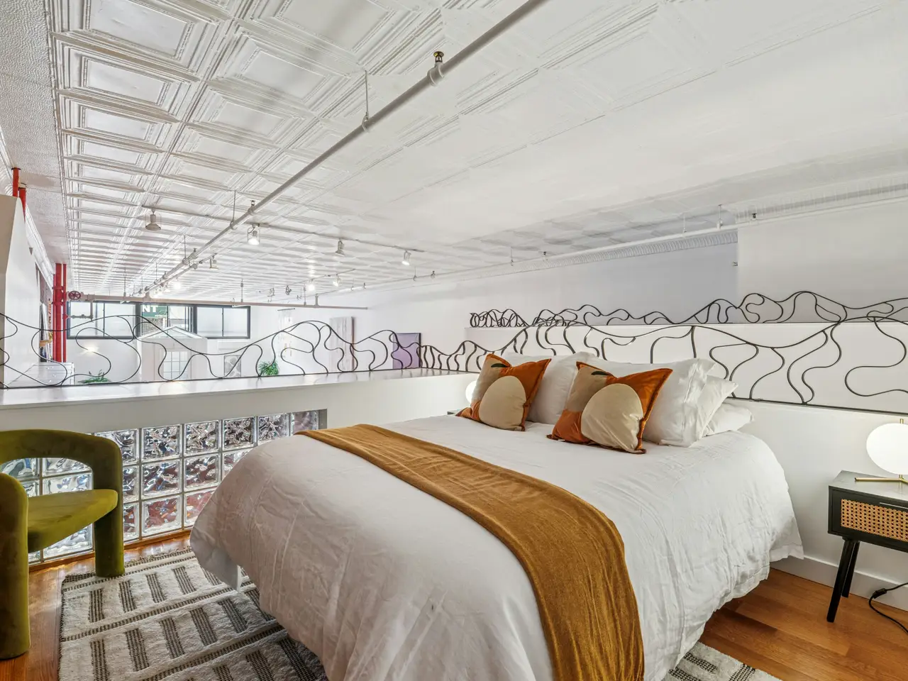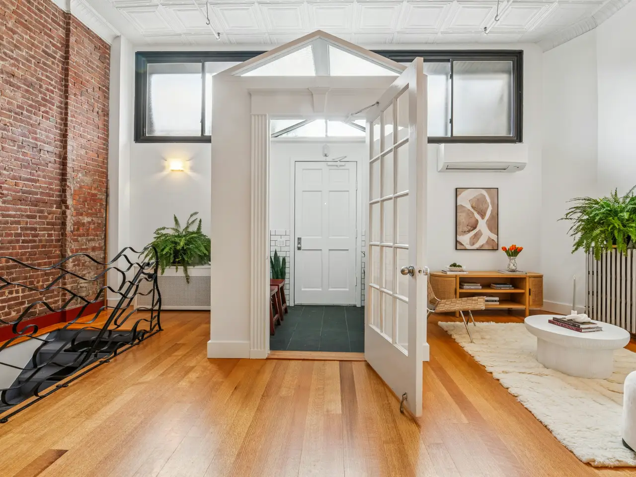 An extraordinary Park Slope residence that defies expectation.  With over 3,500 square feet, this loft condominium combines industrial charm, a beautifully crafted environment, and remarkably low monthly costs. Set beneath 12-foot ceilings, this duplex is configured with an upper level one-bedroom (easily convertible to two) and a lower level featuring a spacious dance studio, dedicated office, and guest room. Upon entering the loft, the grand scale and architectural artistry of the great room immediately impress. Exquisite red oak hardwood floors, exposed brick walls, tin ceilings, a wood-burning fireplace, and bespoke ironwork create a space that is both dramatic and inviting. The large chef's kitchen has rich cherry wood cabinetry, handcrafted tile-work, a convection oven and dishwasher. The bathroom is stunning. It's a spa-inspired space with marble & stone tiling, an open rainfall shower and a clawfoot soaking tub. A staircase, framed by built-in bookshelves, leads to the sleeping loft, a lovely room perched above the great room and bathed in soft light. There is also a dedicated laundry room, a large walk-in closet, and 3 additional storage closets. The lower level opens to a professional dance studio, but if dance isn't your passion, this flexible space can be reimagined as an entrepreneurial space, architect's office, wellness studio, recreation room, or guest retreat. This gas-free home is designed with sustainability in mind, featuring split-system HVAC on both levels and an energy-efficient on-demand hot water system. This exceptional property offers rare versatility - fully residential, or a sophisticated fusion of home, business, and pleasure. Opportunities of this scale and adaptability rarely appear in the Park Slope market. Claim your place here and shape its next chapter, surrounded by Brooklyn's fantastic cultural hubs, the beauty of Prospect Park, and the vibrant shops and eateries along 5th Avenue.
