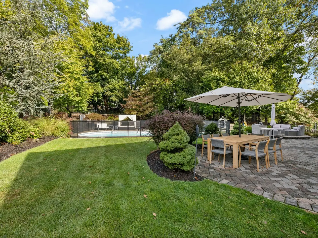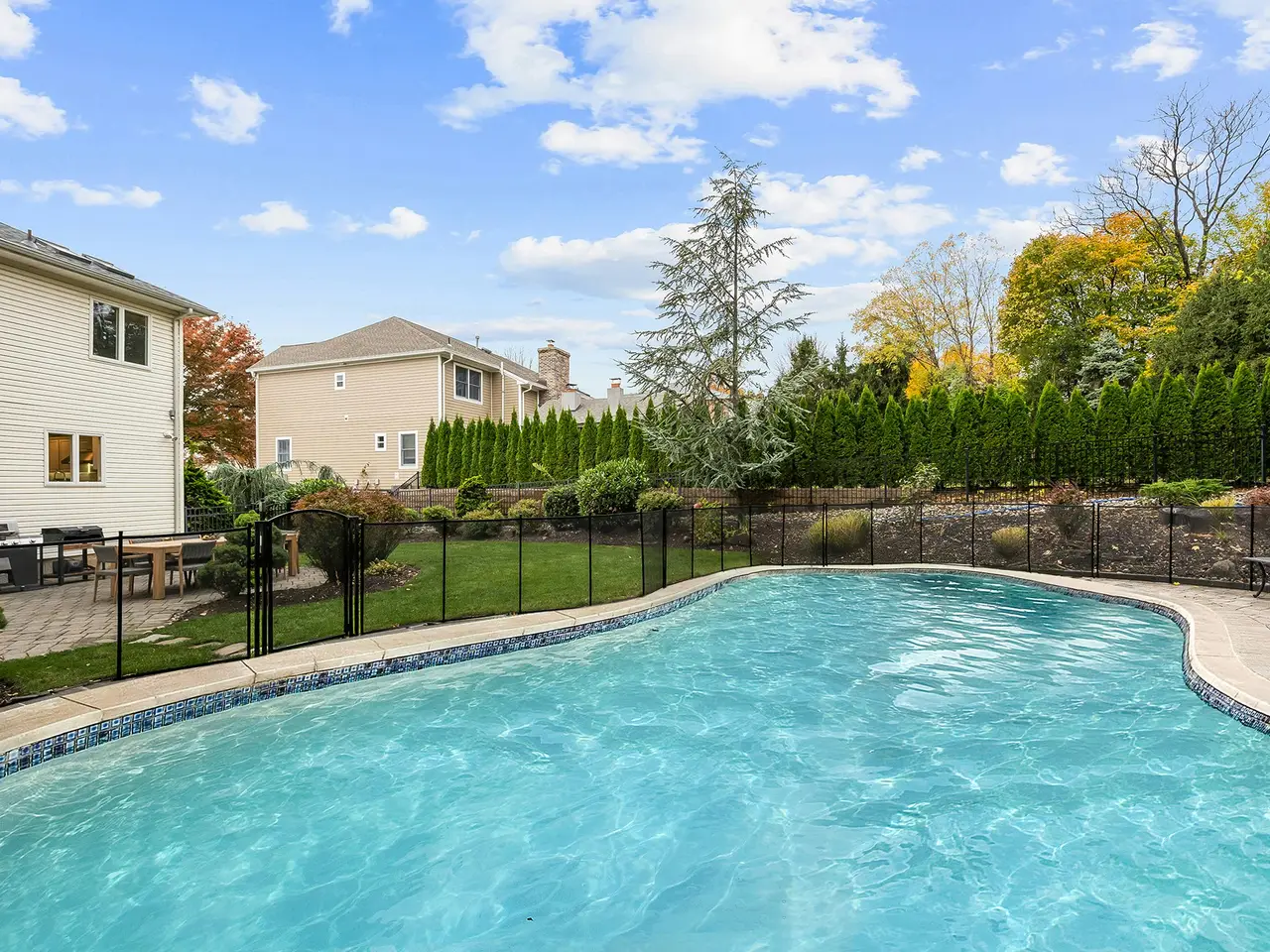 Welcome to 26 Stratton Drive, a well-maintained and thoughtfully updated 3,543 sq ft custom Colonial on a quiet cul-de-sac in the desirable Valley section of Wayne. The main level offers a sun-filled open layout with hardwood floors, an impressive two-story Great Room with floor-to-ceiling stone fireplace (wood), formal dining room, inviting living room, first-floor office, full bathroom, and a flexible playroom/bonus space. The gourmet eat-in kitchen features granite countertops, center island, SubZero refrigerator, and brand-new Thermador appliances (2025), including oven, microwave, cooktop, and hood, ideal for everyday cooking or entertaining. Upstairs, the Primary Suite offers dual walk-in closets, sitting area, and a spa-like bath with hot tub and skylights. Three additional bedrooms and a full bath complete the second floor. The finished basement adds versatile space for recreation, gym, or media use, plus a half bath and storage. Step outside to a resort-style backyard designed for relaxation and entertaining. The heated 9' pool has a new saltwater conversion system, liner and cover (2025), and is surrounded by a paver patio and multiple lounge areas. Additional upgrades include a new roof (2024), two AC units (2023), water heater (2023), EV charger, and smart home features such as security cameras, Ring sensors, Wi-Fi sprinkler controls, and smart thermostats. Close to parks, shopping, dining, top-rated schools, and NYC commuting. Truly move-in ready.