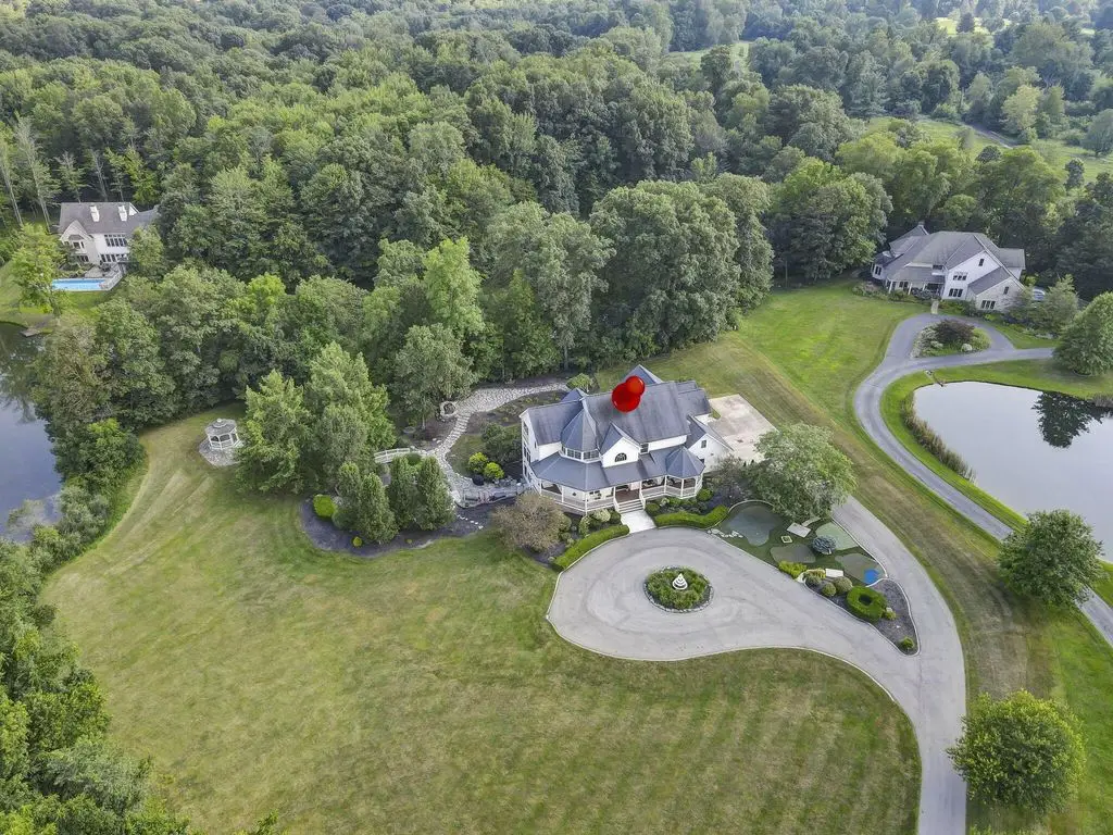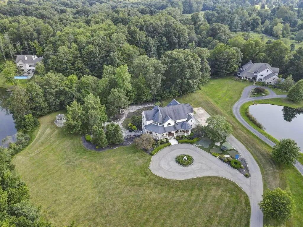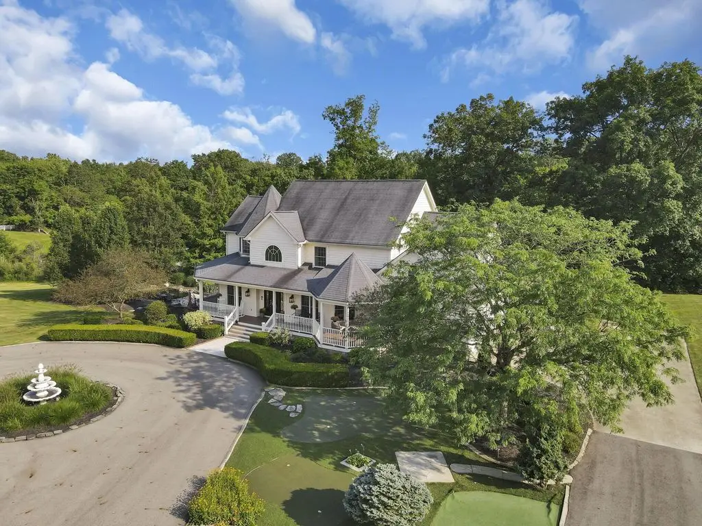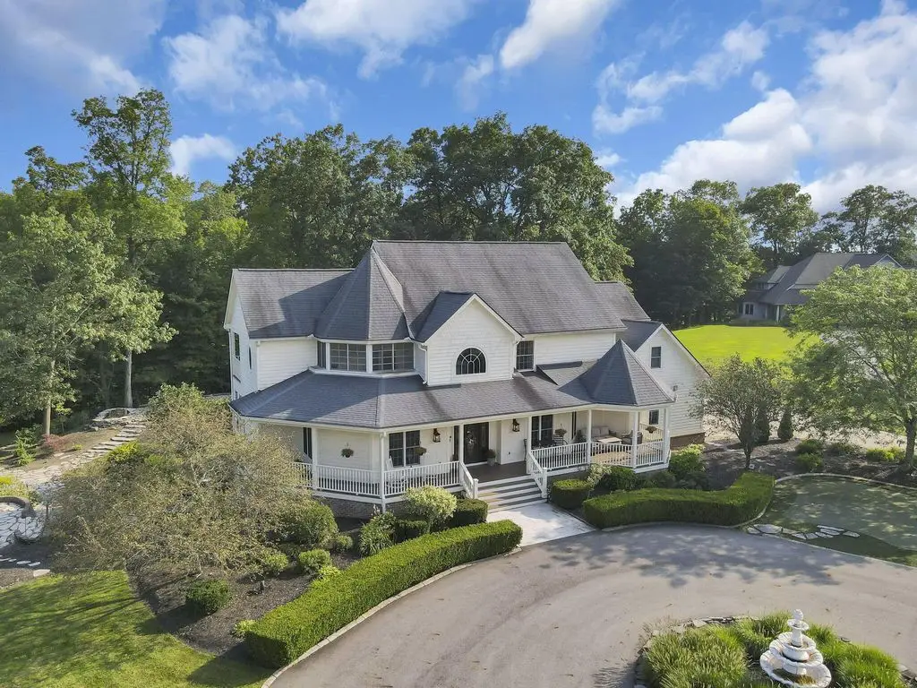 Live in luxurious executive estate meticulously maintained, located in desirable Highland Estates. Premium lot borders what was previously the Highlands Golf Course. Only 2 homes on cul-de-sac. Spacious rooms, finished walkout lower level, with a theater room .Putting green out front! Breathtaking views from all rooms. High end finishes-granite, crown molding, built-ins, walk-in closets, 3 gas log fireplaces, central vacuum, antique gas light converted fixtures, leaded glass, security & whole home sound system. Heated 3+ car garage, stately circular drive w/ fountain, wrap around front porch, 2 screened in porches. Separate entry guest suite. 25 mins to Easton, < 5 min to freeway access, 1/2 hr to downtown. Schedule your in person showing today!