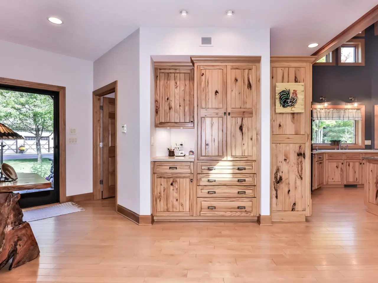This stunning 3-bedroom, 3.5-bath craftsman-style home and hobby farm estate sits on over 11 acres of rolling, wooded terrain just minutes from Rhinelander, offering a rare blend of privacy, functionality, and charm. The property features fenced pastures, outdoor arenas, multiple wells with irrigation, open meadows, wooded trails, and a classic barnperfect for equestrian or recreational use. Built by VanStrydonk, the home showcases Scan-Log siding & natural fieldstone, multiple porches, extensive landscaping, flower beds, a fire pit, and a blacktop driveway leading to a 2-car attached garage with a finished hobby room above. A custom 52' x 36' auxiliary building echoes the homes architecture, adding versatility and style. Inside, you'll find a gourmet kitchen with solid surface counters and high-end appliances, a dining area with a gas parlor stove, a main floor office, and a soaring two-story living room anchored by a massive fieldstone gas fireplace. The layout includes two primary suitesone on the main level and one upstairsplus a lofted office, main floor half bath, and laundry hookups on both the main and lower levels. The lower level offers a spacious family room with built-in theater, an exercise room with included gym equipment, a third bedroom, full bath, and utility room. With its thoughtful design and natural beauty, this property is a peaceful retreat with all the amenities of modern livingyour own little piece of heaven. Photos, aerial views, and a full inclusion list are available.