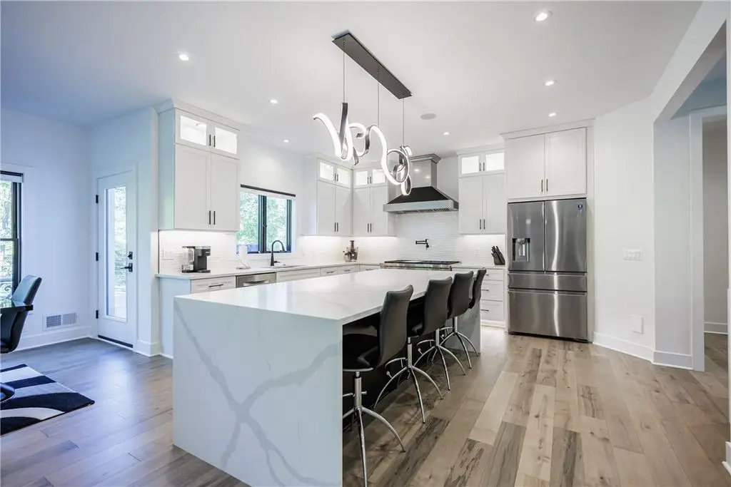 STUNNING 4Bd, 3.5 Ba Contemporary colonial with an expansive 3,330 sq ft on OVER AN ACRE lot. MODERN & ELEGANT Kitchen includes under-counter microwave drawer, WOLF gas range and stainless appliances. Spacious Island breakfast bar features waterfall-edge quartz countertops, a modern lighting fixture and ample space for meal prep and intimate dinners. Sleek black and white cabinetry to 9ft ceiling with glass doors and in and under cabinet lighting. Temperature controlled wine room to die for! Great Room with recessed lighting and gas fireplace with gorgeous tile surround. Dining Rm features Wet Bar with black cabinetry, sink and beverage fridge for easy entertaining. Primary Suite features coffee/dry bar area with built-in beverage fridge, stunning step ceilings and recessed lighting and huge walk-in closet. Bath includes heated tile flooring, defogging mirrors, dual sinks with plenty of quartz countertops, digitally controlled steam shower & soaking tub. Spacious 2nd Bedroom ensuite with walk-in shower perfect for teen or guest suite. 3rd & 4th Bedroom share Jack & Jill bath with separate vanity and sink area. 1st Floor Office space with step ceiling, recessed lighting and beautiful French doors. 3.5 Car heated garage with epoxy floors. Engineered hardwood throughout 1st Floor. Black framed thermal pane Anderson windows give clean lines and energy efficiency. 1st Floor laundry room with cabinets, countertop work area and pantry. Sleek black railings on stairs, second floor and on the composite deck. 13 Course Basement with 2 full egress windows. Sonos Sound System! Central Vac! Tankless HW Heater. Transfer switch for a generator. Where else will you find such beauty and excellence on OVER AN ACRE in such a prestigious neighborhood Don't miss out!