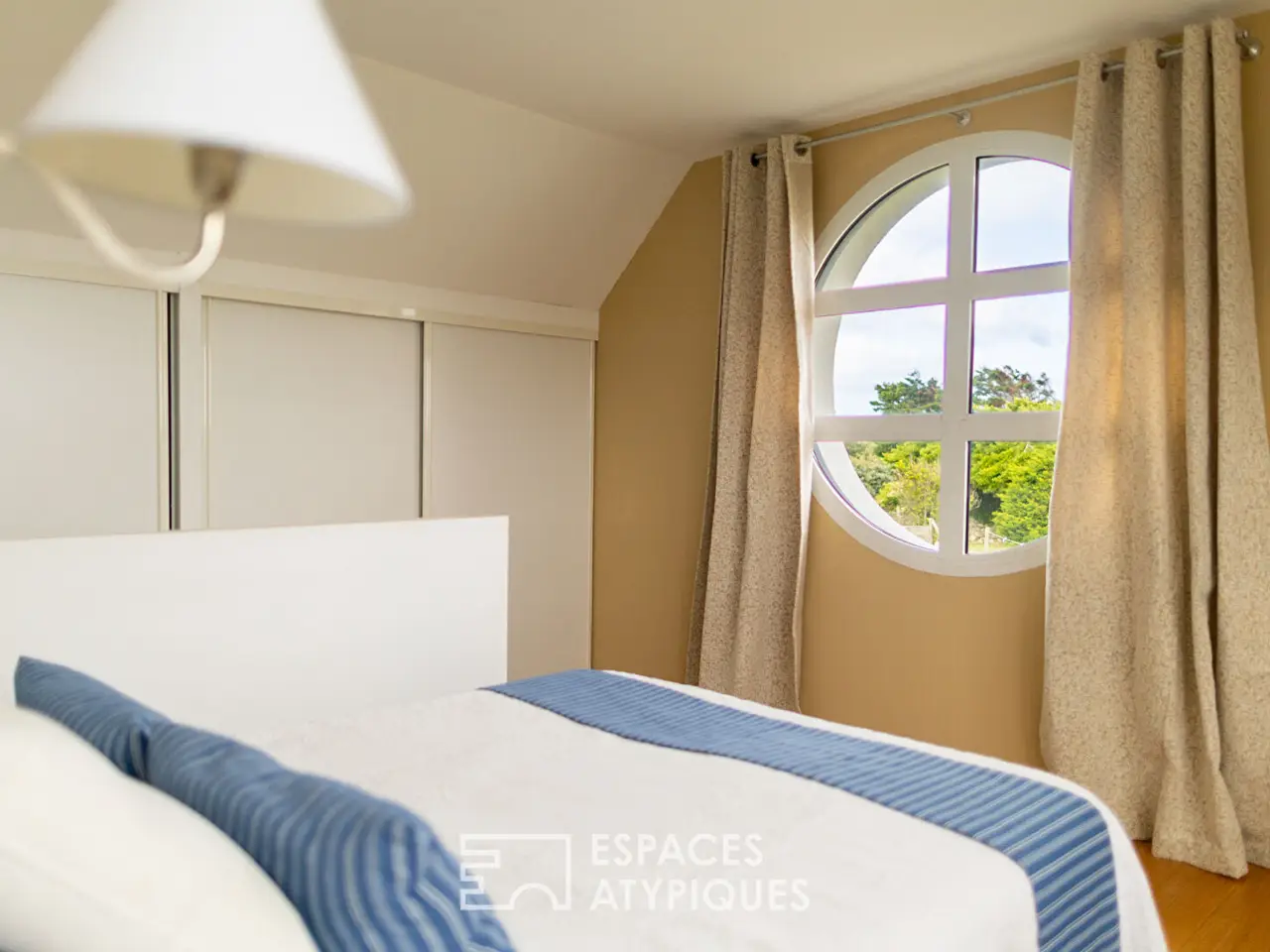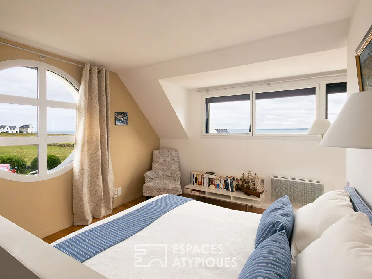 In Saint-Guenole, in the commune of Penmarch, near La Torche, along the sea and the coastal path, stands this large and elegant architect-designed house with Californian inspiration, built in 2011. Located opposite the Viben cove, just a few meters from the shoreline, it offers views of the Atlantic Ocean and the Bay of Audierne. Designed by an architect, this house captivates with its contemporary architecture, spaciousness, natural light, and layout in two wings connected by a vast, open-plan living area that flows seamlessly into the garden and south-facing terrace. Built on a 1400sqm plot facing the sea, the 200sqm house offers an exceptional living environment, close to Pors Carn beach in La Torche, one of the most beautiful in southern Finistere, and near surf schools, bars, restaurants, coastal paths, the port of Saint-Guenole, and shops. It comprises seven rooms, including two open-plan living areas, one of which is a very large living room with triple exposure and access to the rooftop terrace overlooking the ocean. With five bedrooms, three shower rooms, a bathroom, and ample storage, it boasts a bright and functional interior offering sea and garden views. The ground-floor entrance opens onto the open-plan living area with sea and garden views, the heart of the house. This area includes a dining space adjacent to the fitted and equipped kitchen on one side, which extends into a pantry; on the other, a spacious hallway with elegant storage leads to the ground-floor sleeping area with access to the upper floor. This level includes four bedrooms, three of which have sea views. Two bedrooms have en-suite shower rooms, while a separate bathroom and a separate toilet complete this level. The upper floor, accessible via a beautiful custom-made wood and stainless steel staircase crafted by a local artisan, houses a stunning living room with triple exposure and panoramic sea views. This exceptional space opens onto a rooftop terrace, which also provides access to the second part of the house, where the master suite overlooks Audierne Bay. Also accessible via a private staircase from the ground floor, the master suite offers peace, privacy, and comfort. Equipped with storage, a shower room with toilet, and direct access to the terrace, it benefits from triple exposure and views of Audierne Bay, the garden, and the rocky path. Additional amenities on the garden side of the property include a terrace, an outdoor shower for rinsing off after the beach, and a 45 sq m outbuilding (suitable for storage) for bicycles, a lawnmower, windsurfing boards, paddleboards, etc. With its contemporary lines, generous proportions, high-quality features, and exceptional setting, this property combines all the advantages of a high-end primary or secondary residence in the heart of southern Finistere. A rare find in a privileged location within a residential hamlet, offering complete privacy by the sea. Points of interest: Port of St Guenole, Pointe de la Torche, beaches within walking distance & beach restaurants, surf school, hiking trails (PR & GR34), coastal paths. Port of Guilvinec 15 min, Plomeur 10 min, Pont Labbe 15 min, Quimper 30 min, Paris-Quimper TGV 3.40h. Energy rating C, climate rating A - estimated annual energy costs for standard use: between EUR2,340 and EUR3,220. For information on the risks to which this property is exposed, please consult the Georisques website: https://www.georisques.gouv.fr Contact: Catherine 06 87 06 91 87 catherine.dupre@espaces-atypiques.com Sales agent - RSAC n°518 237 672 Quimper Agency fees: 5% including VAT payable by the seller for properties over EUR200,000 Flat fee of EUR10,000 including VAT payable by the seller for properties under EUR200,000.REF. 1615EAFAdditional information* 7 rooms* 5 bedrooms* 1 bathroom* 3 shower rooms* 1 floor in the building* Outdoor space : 1400 SQM* Parking : 4 parking spaces* Property tax