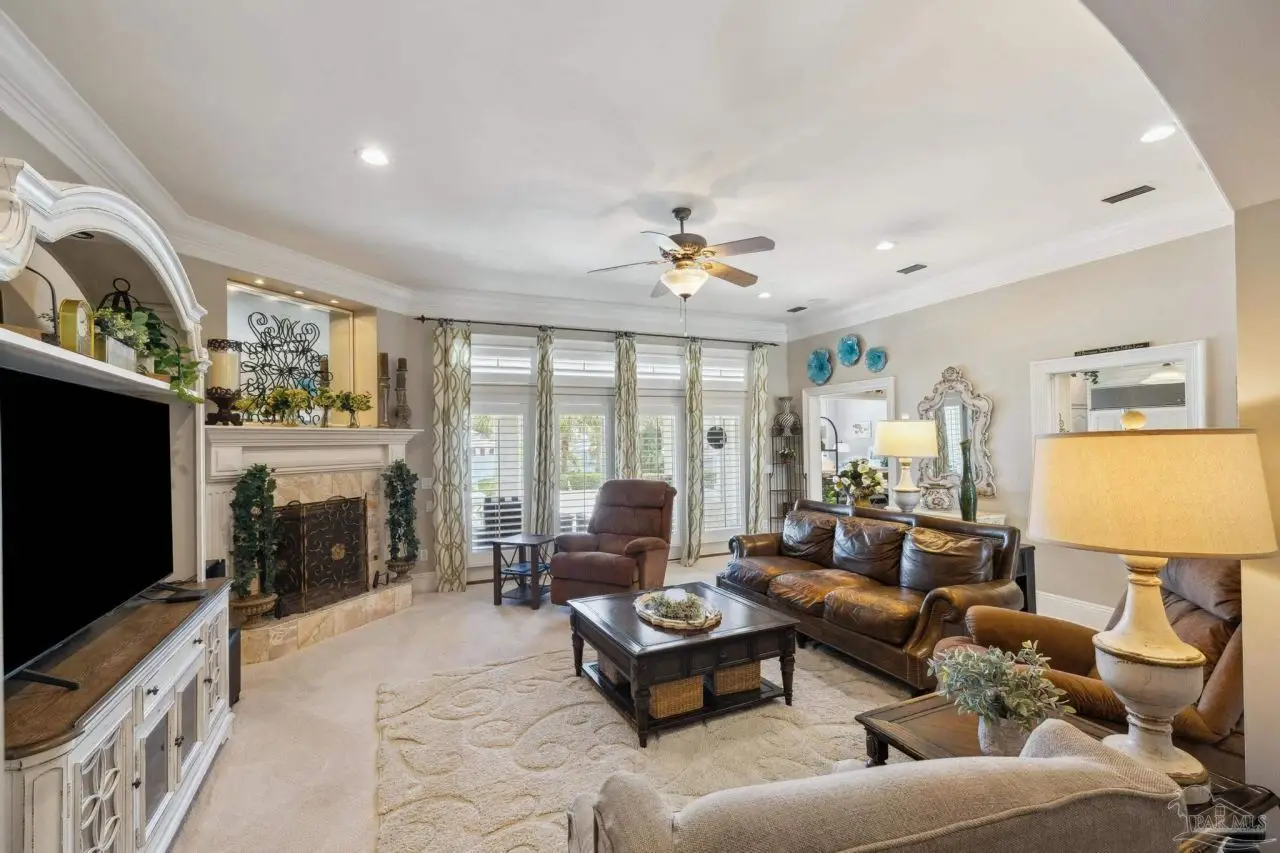 Discover coastal elegance at this stunning 5-bedroom waterfront estate perfectly positioned on a pristine stretch of shoreline overlooking pristine Johnson's Beach. This extraordinary residence offers the ultimate blend of privacy, comfort, and breathtaking views-complete with its own sandy white beach and gunite pool. Step inside to find a thoughtfully designed floor plan featuring a formal dining room ideal for hosting gatherings, a dedicated home office for remote work or study, a spacious waterfront living room with panoramic water views, a chef's kitchen ready for everyday meals or upscale entertaining a sunroom, a luxurious primary suite and a guest bedroom all on the main level. A spacious family room with built in cabinetry upstairs opens to three generous bedrooms and a game room perfect for entertaining. The 2-car garage adds convenience and storage, while the expansive covered outdoor area creates your own personal retreat with a private pool just steps from the water's edge. Enjoy sunrise strolls on your own beach, sunset views over the bay, and quick access to the natural beauty of Johnson's Beach and the Gulf Islands National Seashore-just minutes from your back door. This rare waterfront gem combines luxury living with laid-back coastal charm. Whether you're looking for a full-time residence or a private escape, this is where your dream lifestyle begins. Schedule your private tour today and experience waterfront living at its finest.