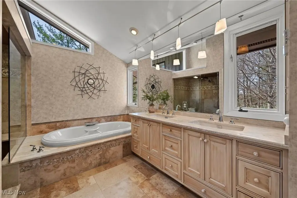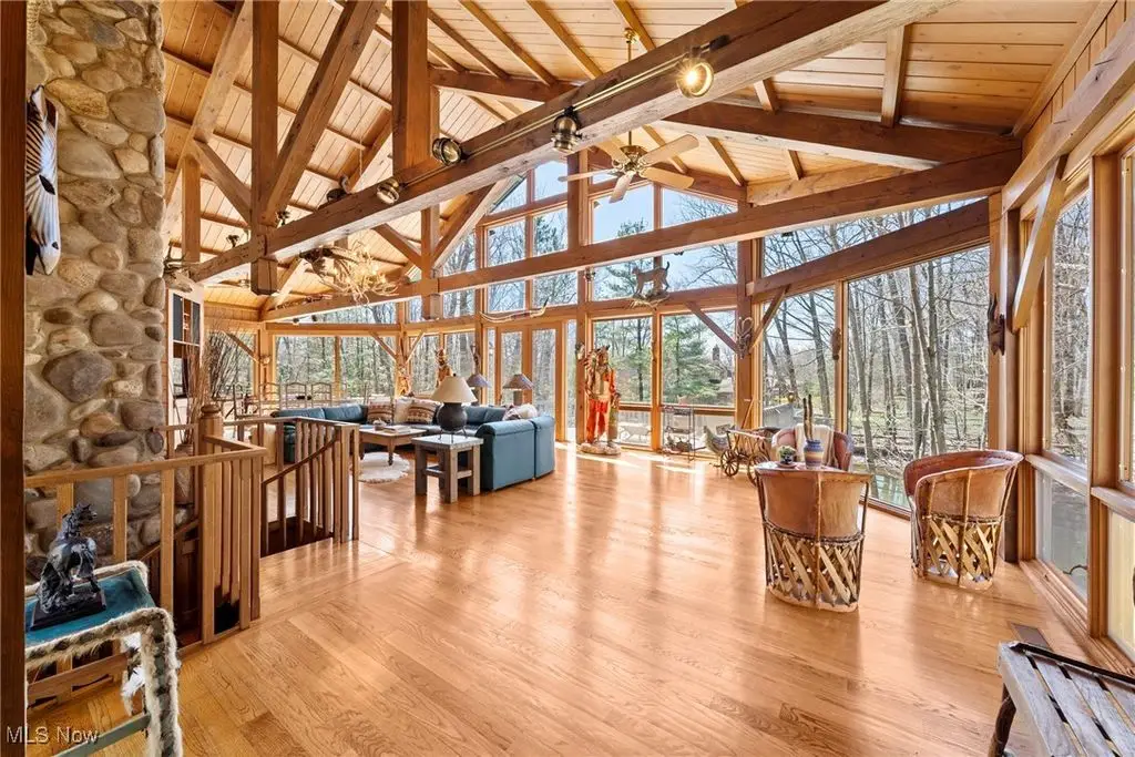 Welcome to this stunning one-owner, custom-built, country estate, nestled on nine lush, private acres in the prestigious community of Pepper Pike. Meticulously designed and lovingly maintained by the original owners, this residence offers a rare blend of elegance, comfort, and luxury living. Featuring 4+ bedrooms with a newly updated expensive primary suite on the second level, this home is filled with natural light from soaring ceilings and dramatic walls of glass that frame breathtaking views of the surrounding landscape. Every space has been thoughtfully enhanced offering a perfect balance of modern amenities and timeless design. Step outside to experience a true resort style oasis - with beautifully landscaped walking trails, ponds and waterfalls complete with one of the most impressive pool house pavilions in the area featuring more soaring ceilings, walls of glass, and a spectacular pool with a slide and water tunnel. It is truly the ultimate place to relax and entertain. Additional pool house amenities include a full kitchen, his and her dressing rooms with a sauna and 2 full baths on the walk-out lower level, extensive exterior decks complete with roof top balcony. The property also includes a three stall barn, and a separate utility garage, ideal for the equestrian, enthusiast, or hobbies. This is a rare opportunity to own a private estate conveniently located to all East side locations.
