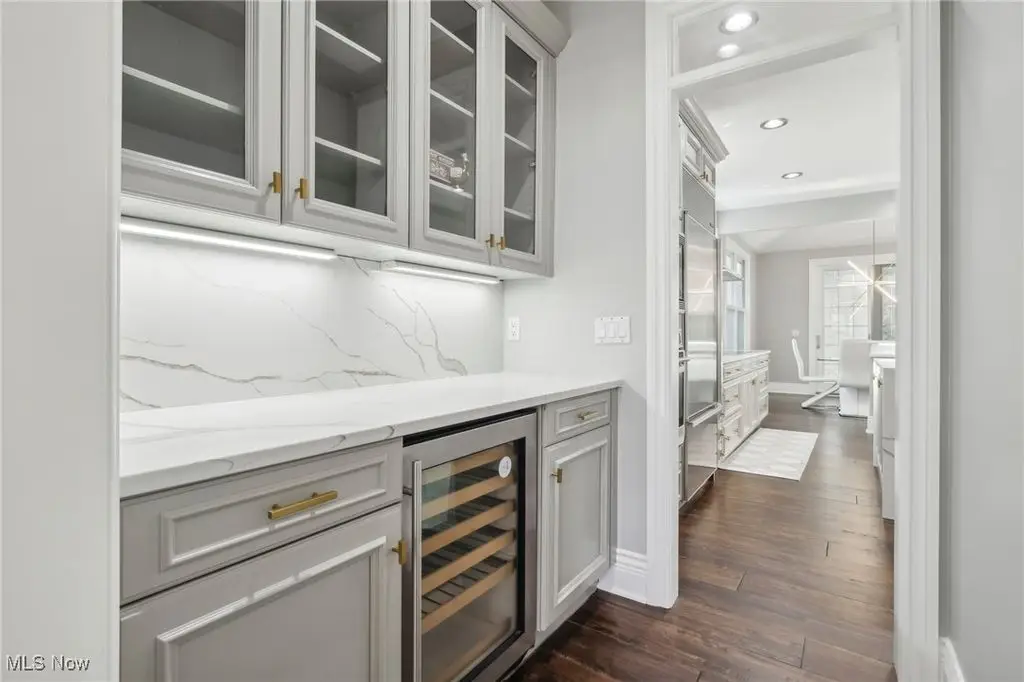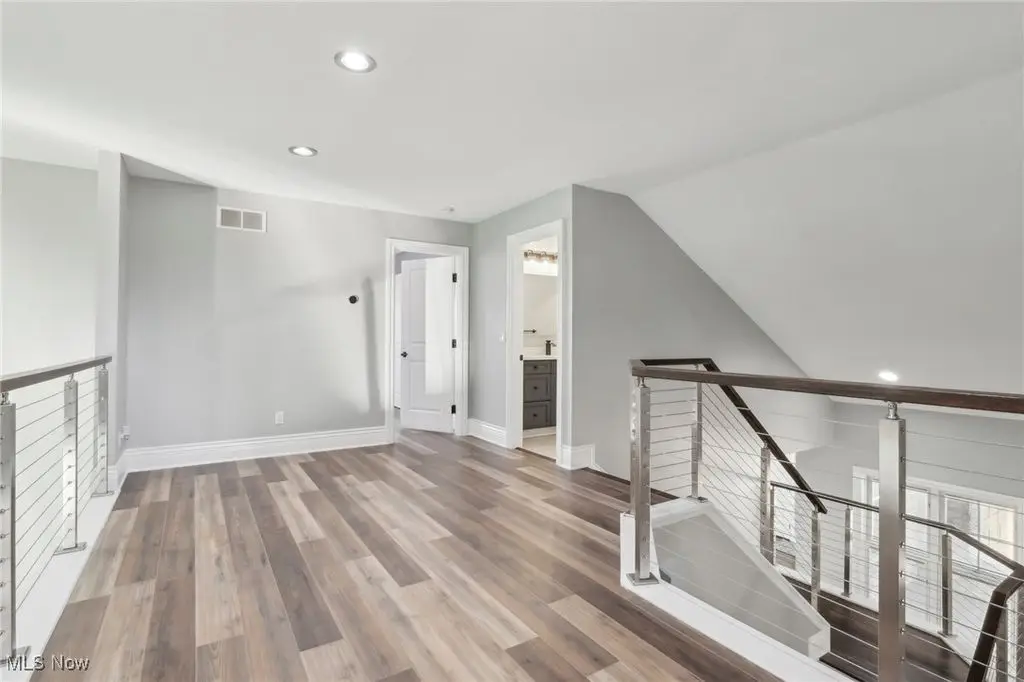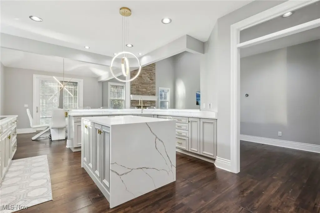 Striking modern colonial home in Sterling Lakes of Pepper Pike. Exceptionally maintained grounds makes this low-maintenance GATED community of prestigious homes stand out like no other in the area. Beautifully set among other fine homes, this property offers tasteful upgrades & updates throughout. The first floor layout keeps ease of living in mind, w/a spacious & vaulted 1st floor owners suite boasting remodeled glamor bath with fully tiled walk-in shower, soaking tub & his/her closets, among other fine details. The renovated modern eat-in kitchen boasts a waterfall quartz top center isle, stunning counter top lighting, exceptional walk-in pantry, plus butler's pantry pass-through to the formal dining room. A floor to ceiling gas fireplace warms the space w/stone veneer. The private first floor den/sitting room is smartly set away from the hustle and bustle, offering it's own private patio to steel away w/your thoughts. The stairs & loft area have been fully transformed with a sleek cable railing system, adding to the dramatic modern appeal. Two addl spacious bedrooms w/2 full baths, plus large loft area provide private quarters for family & guests. The recently finished basement adds tremendous flex space (approx 1500 sqft), including recreation, storage, and bedroom suite, offering a large closet & full bath. This property has been transformed from traditional to stunningly modern, including but not limited to: new solid surface flooring throughout (no carpet), lighting, paint, baseboards, fully remodeled kitchen and baths, two full bath added, basement finished, & so much more! 1st floor laundry room. 3 car garage w/8' doors and built in cabs. Low maintenance living includes lawn care, landscaping, snow removal & general grounds care. Enjoy the meandering walking paths overlooking multiple water views around the community. Excellent location. Close to I-271, fine shopping, and some of the best hospitals and schools in Greater Cleveland! Quick possession if needed.