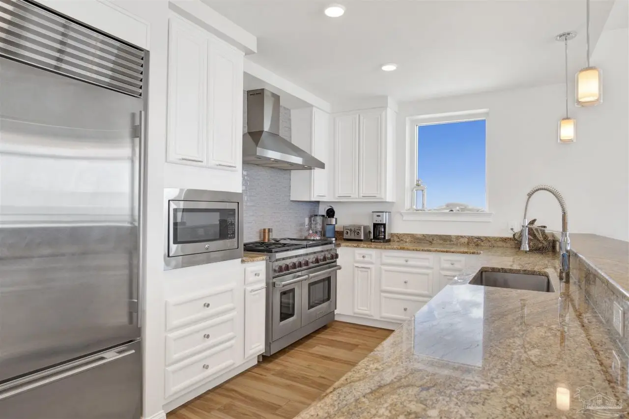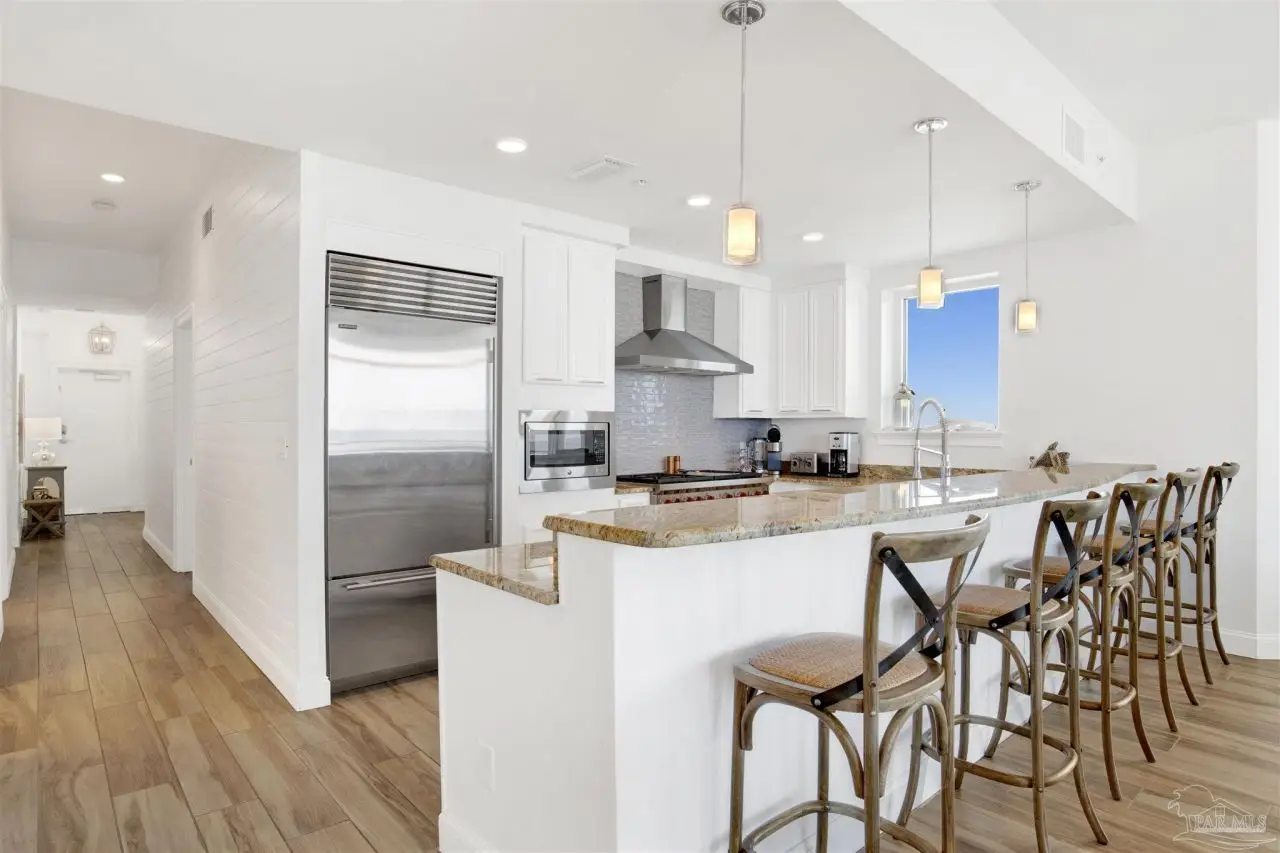 THIS RARE 5-BEDROOM, 6TH FLOOR CORNER RESIDENCE HAS BREATHTAKING, PANORAMIC VIEWS OVERLOOKING MILES OF PROTECTED COASTLINE AND THE GULF! ENJOY EXCEPTIONAL AMENITIES IN A TRANQUIL, LOW-DENSITY BEACHFRONT SETTING FAR AWAY FROM THE CROWDS. Vista del Mar has an irreplaceable location at the east end of the island of Perdido Key and borders over 5 miles of protected Gulf Islands National Seashore offering nature trails, bike paths, and unspoiled beaches for your enjoyment. This luxurious residence has been specially customized to a 5 BEDROOM/4.5 BATHROOM floor plan and comes fully furnished with assigned garage parking. This gem showcases impressive floor-to-ceiling windows, a generous balcony complete with gas grill, and stunning white ship lap accents throughout. The exquisite kitchen boasts granite countertops, high-end cabinetry, a Chef's kitchen featuring a Wolf® range and chimney hood, a Sub-Zero® refrigerator, and a wet bar equipped with ice maker and wine refrigerator. Luxurious guest suites are designed with spa-like bathrooms and ample walk-in closets. At Vista Del Mar, enjoy a secure, gated community entrance, designated garage parking, and climate-controlled owner storage at the amenity level. The grand lobby entrance offers various seating areas, custom artwork, and awe-inspiring views. High-speed elevators lead to climate-controlled lobbies. Indulge in the lavish outdoor pool area with a vast beachfront deck, hot tub, and covered outdoor seating. Experience the heated indoor pool with stunning water views. The owner's health club provides a fully-equipped fitness room, yoga studio, and massage treatment rooms. Residents can unwind in the club room with fireplace, bar, pool tables, and TVs. Surround yourself with lush landscaping, coastal breezes and WELCOME HOME TO LUXURY BEACHFRONT LIVING AT ITS FINEST!
