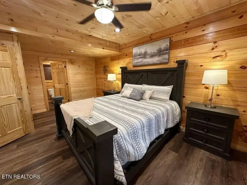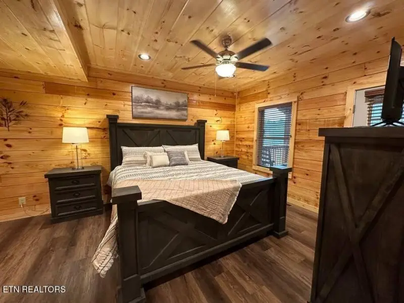 Located less than 1.5 miles to the heart of the Parkway in Pigeon Forge, this 5 bedroom, 5 bathroom cabin comes fully decorated & furnished with everything you could need for use as a short-term-rental or vacation home. Positioned along the ridge, this cabin boasts mountain views from any of the multiple covered back decks, plenty of gathering spaces including a game room with pool table, and a media room! Other features include:stainless steel appliances, washer & dryer, granite counter tops throughout, 4K Roku TV's in every room, tongue-in-groove knotty pine and log walls, durable luxury vinyl plank flooring, and hot tub with privacy screening.There are 4 King suites and a bunk room, each with it's own private bathroom, in addition to 2 sleeper sofas, bringing the capacity to accommodate 16 guests! This new cabin development is very unique with it's superb location, easily accessible and in close proximity to all of Pigeon Forge and Gatlinburg's many attractions and dining experiences. ---Call today for additional information. All information deemed reliable but not guaranteed, buyer/buyers agent to verify all information.