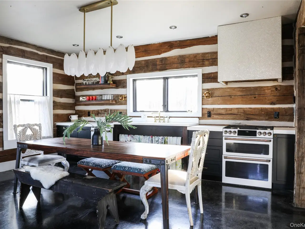 Welcome to Bruyn Estate, an exceptional Hudson Valley compound that brings together historic character and modern comfort across two remarkable homes: a lovingly restored 1835 Greek Revival farmhouse on the National Register of Historic Places, and a reimagined log home reconstructed from 1850s barn beams. The property is steeped in history: in the 1800s, it was a sheep farm that supplied wool garment materials to Brooks Brothers, and in the 1980s, it was owned by the great-grandson of the founder of Singer Sewing Machines. Set on 8.5 private acres with pastoral views and open lawns, this established short-term rental and event venue offers beauty, income potential, and timeless charm. The farmhouse captures the timeless appeal of early American architecture, with wide-plank floors and original details carefully preserved. Modern updates include a designer kitchen and primary bath with radiant heat, and stylish wallpaper and fixtures throughout. Two Rumford fireplaces and a pellet stove add warmth and ambiance, and recent improvements include a new furnace and AC unit, plumbing updates, fresh exterior paint, and structural repairs. Steps away, the Dog-Trotstyle log home offers a completely different atmosphere: rustic yet refined, with soaring ceilings, reclaimed timber beams, and an open-concept kitchen, dining, and living area at its heart. The main-floor primary suite has a private entrance, while upstairs, four en suite bedrooms each have their own modern personality. A new hot tub enhances the homes outdoor living spaces, ideal for year-round enjoyment.The grounds offer generous space for events, gatherings, and future possibilities. Over the years, Bruyn Estate has hosted countless weddings, retreats, and guests, drawing acclaim in features on HGTV, the Magnolia Network, and beyond. Move-in ready and exceptionally maintained, a furnished option is also available allowing for a seamless transition into a full-time residence, weekend retreat, or turnkey rental operation. Just 90 minutes from New York City and down the road from scenic Mohonk Preserve, Minnewaska State Park, and some of the regions best dining, like One with Land, and Wildflower Farms, this modern estate offers endless possibilities for living, hosting, and creating in the Hudson Valley.