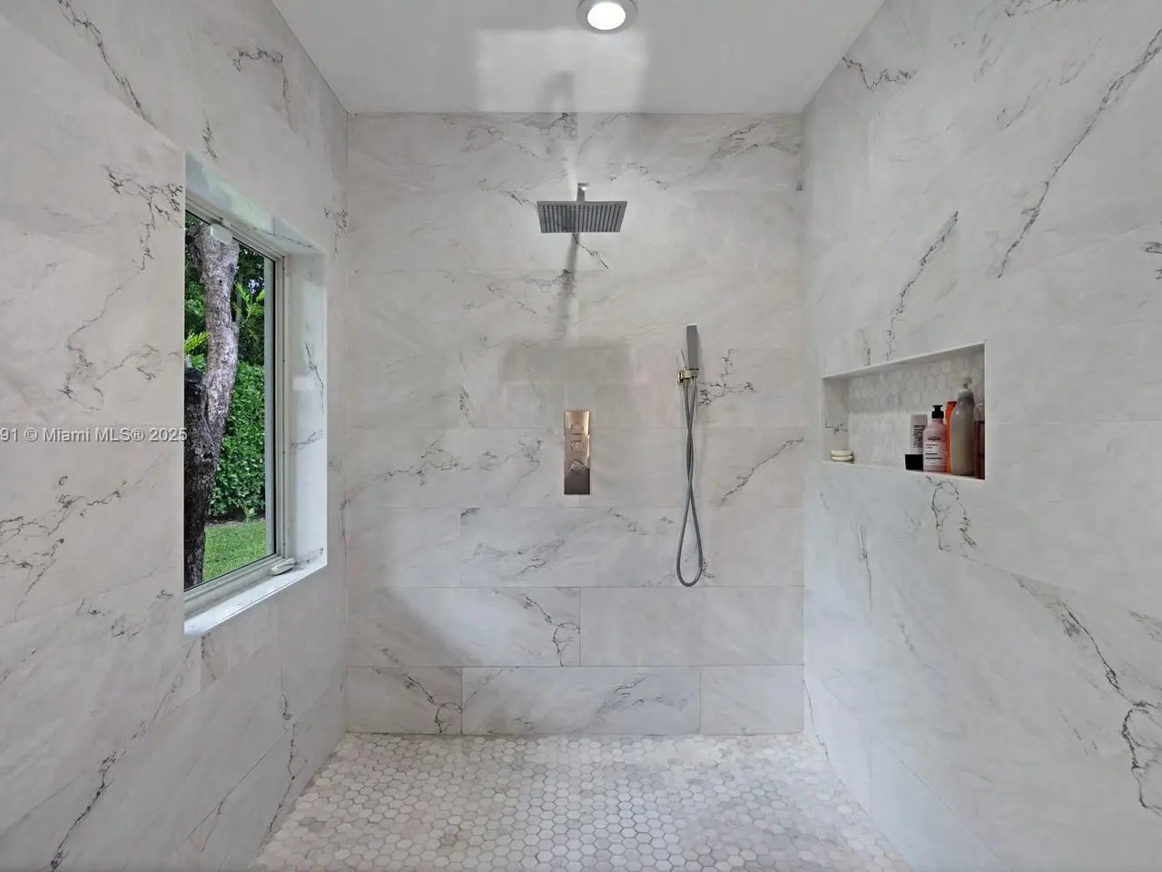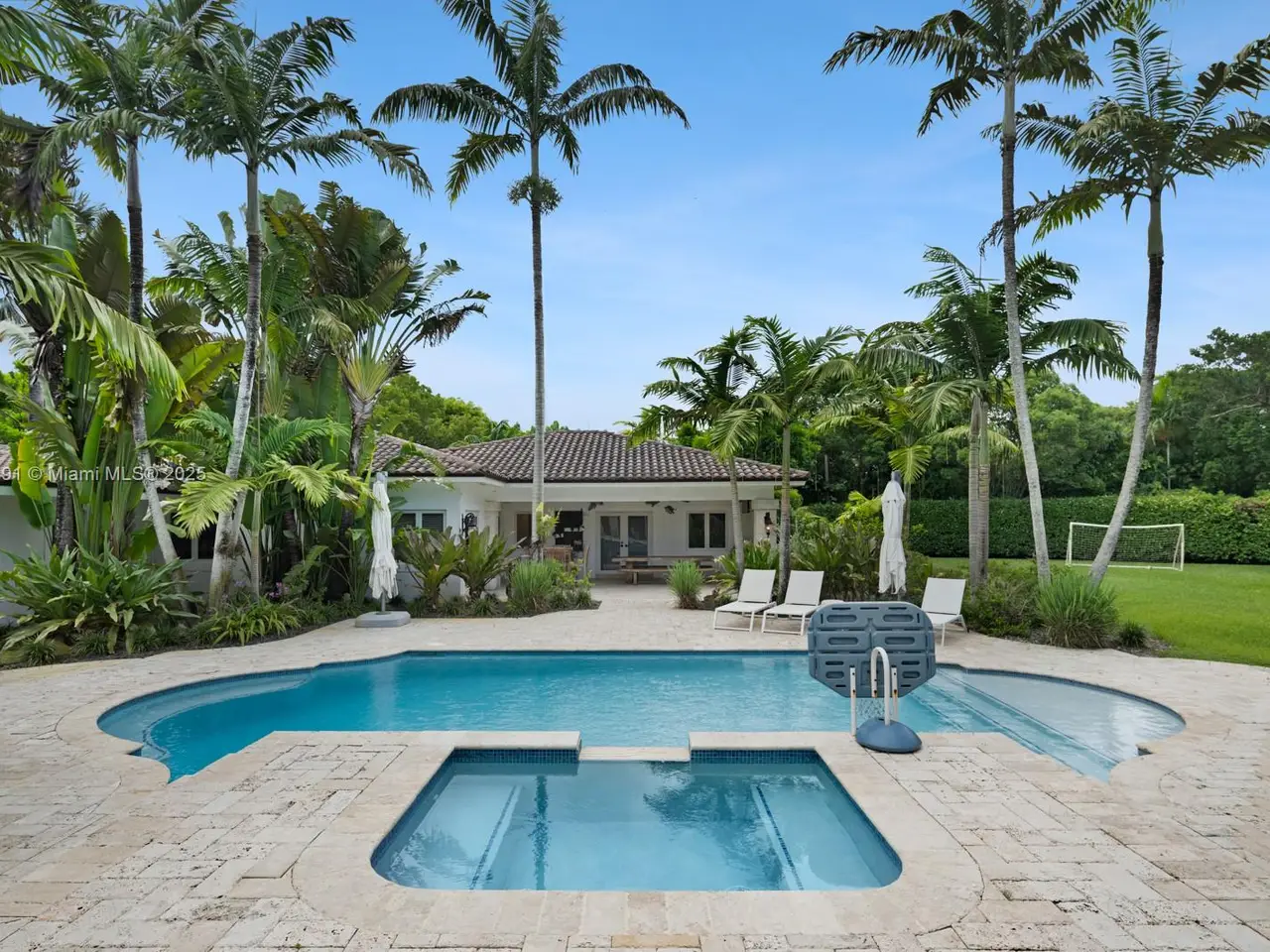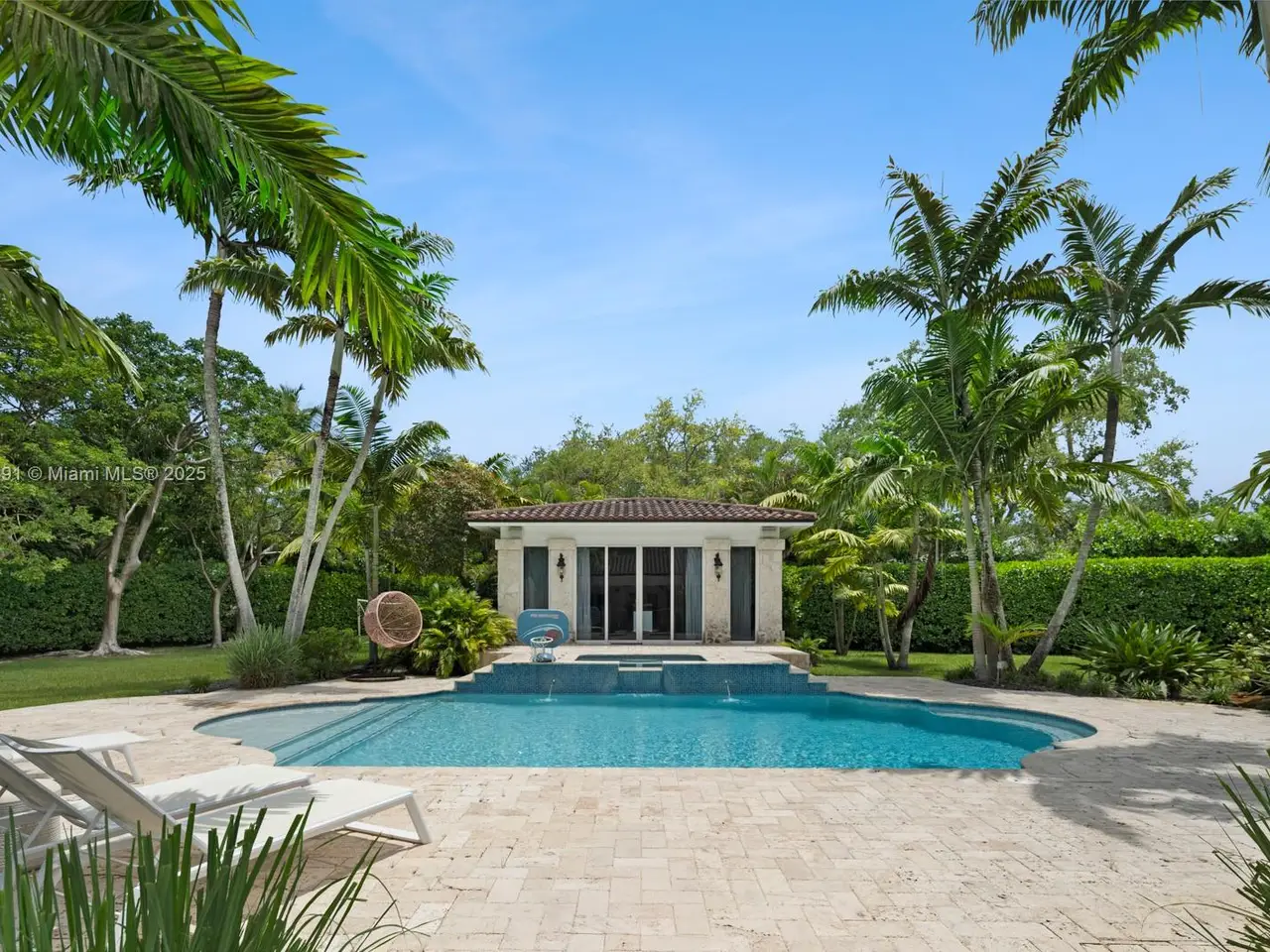 Experience elevated living in this gated one-acre Pinecrest estate. 4235 SF Living Area. Fully updated plumbing and electrical, tropical retreat boasts resort-style pool with jacuzzi, guest house with cabana bath, and lushly landscaped grounds. Inside, discover magazine-worthy interiors with refined millwork, soaring ceilings, 24x48 marble floors, and solid wood in all bedrooms. Impact windows and doors bathe the home in natural light. The 5-star gourmet kitchen features top-tier appliances, dual Wolf gas ranges, and a grand center island beside a sleek bar—ideal for stylish entertaining. Luxe primary suite offers dual closets and a spa-like bath with steam shower. 3 place carport, circular driveway, and generator all on one of the best streets in Pinecrest complete this perfect package.